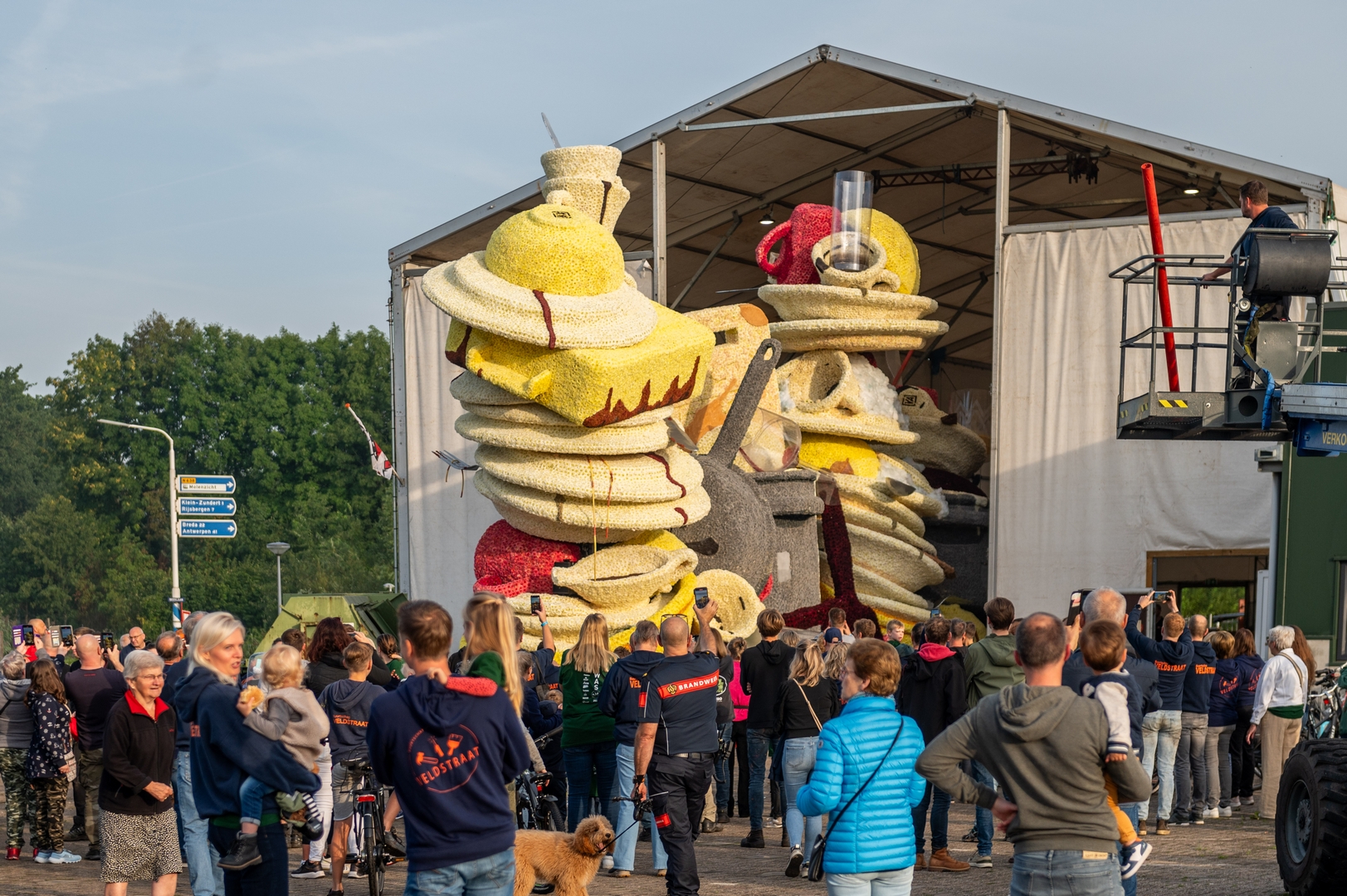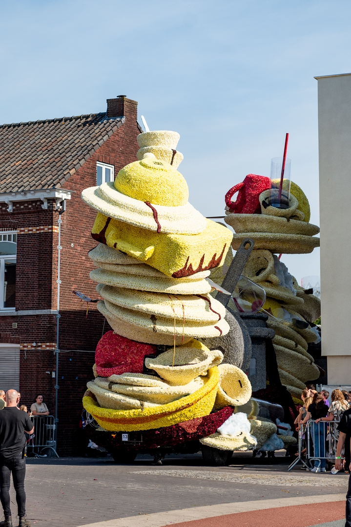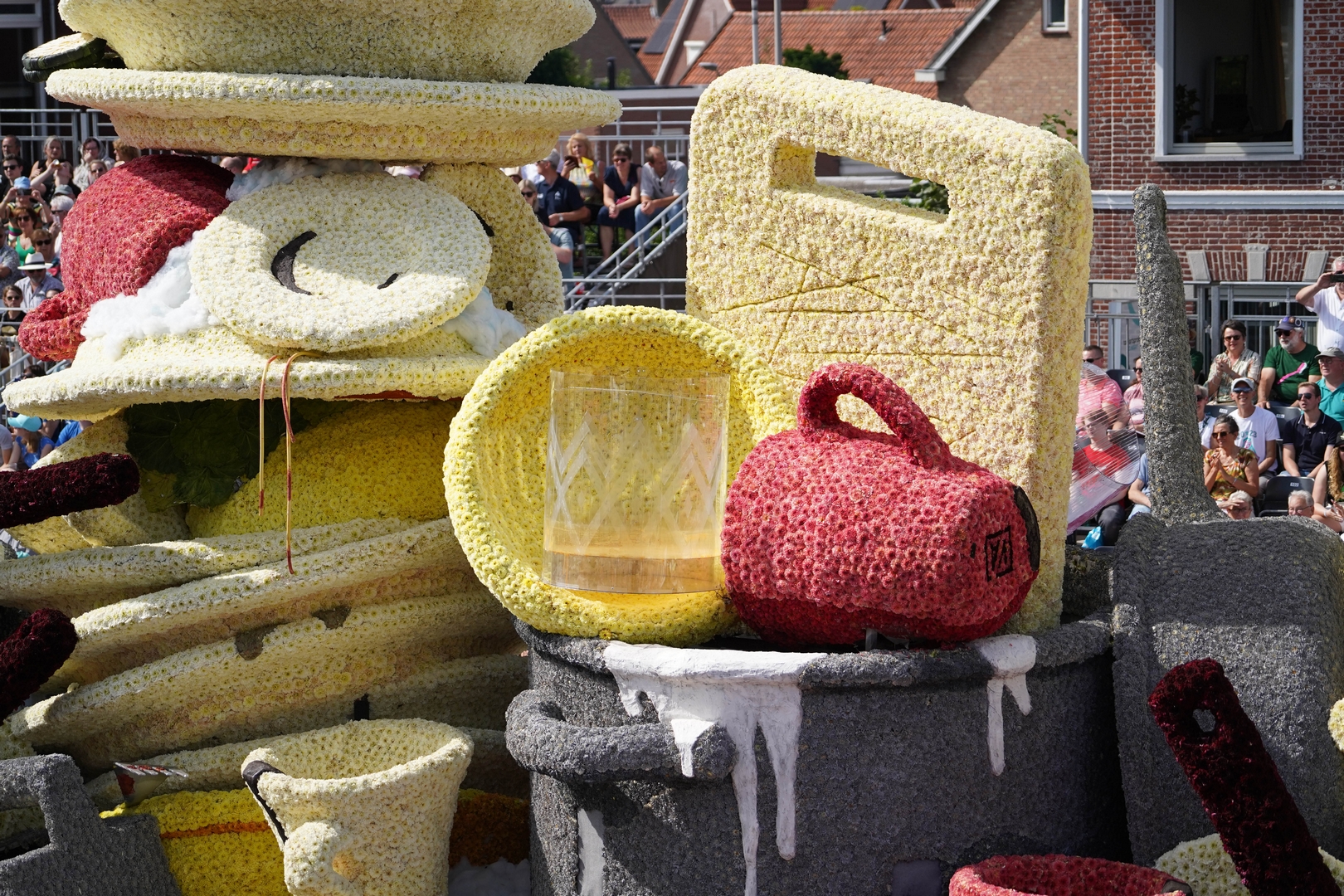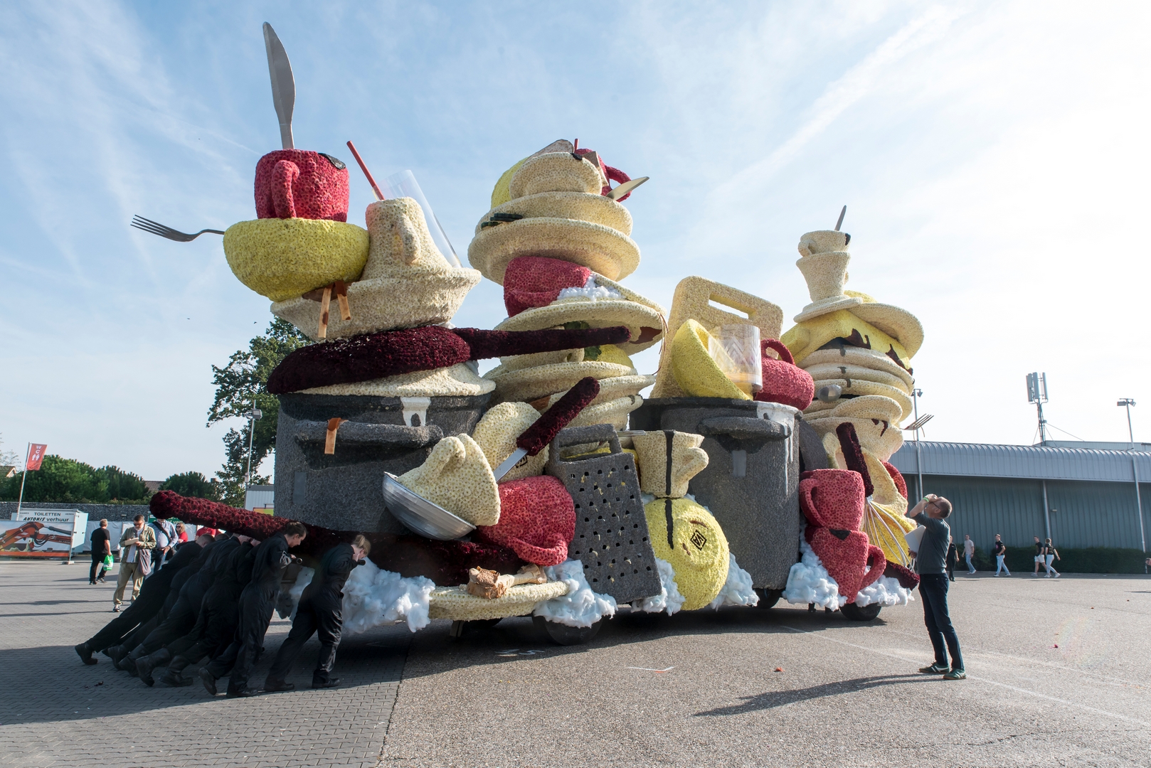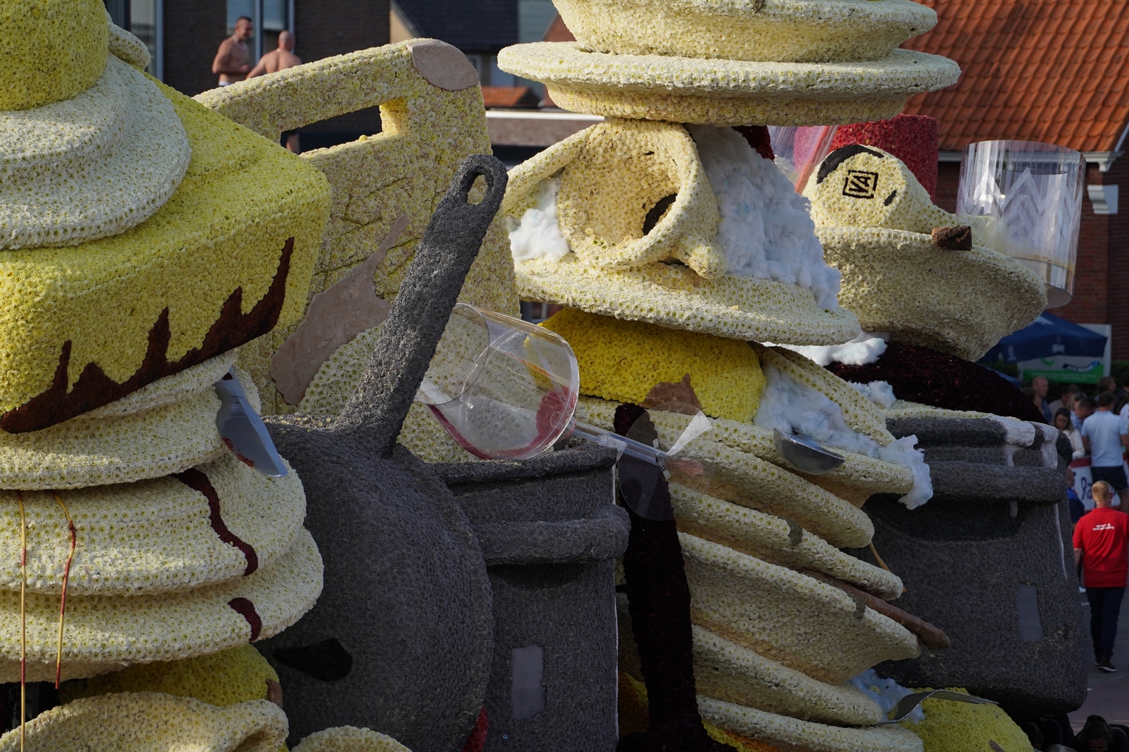 De onhandige opstapeling van borden, pannen, enzovoort is vooral qua compositie en