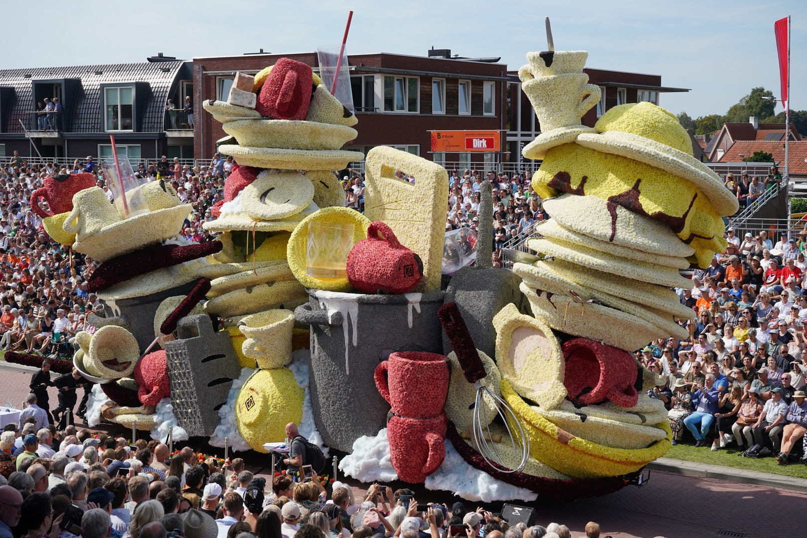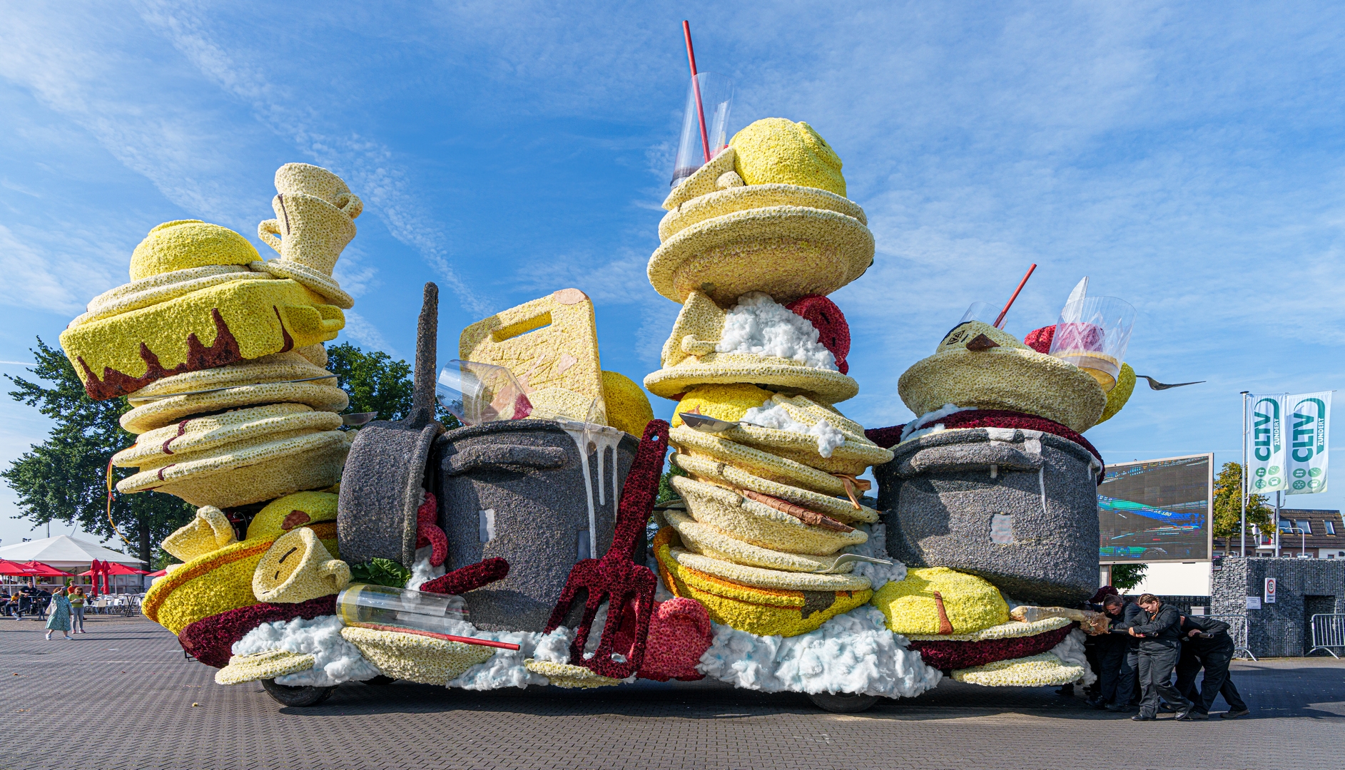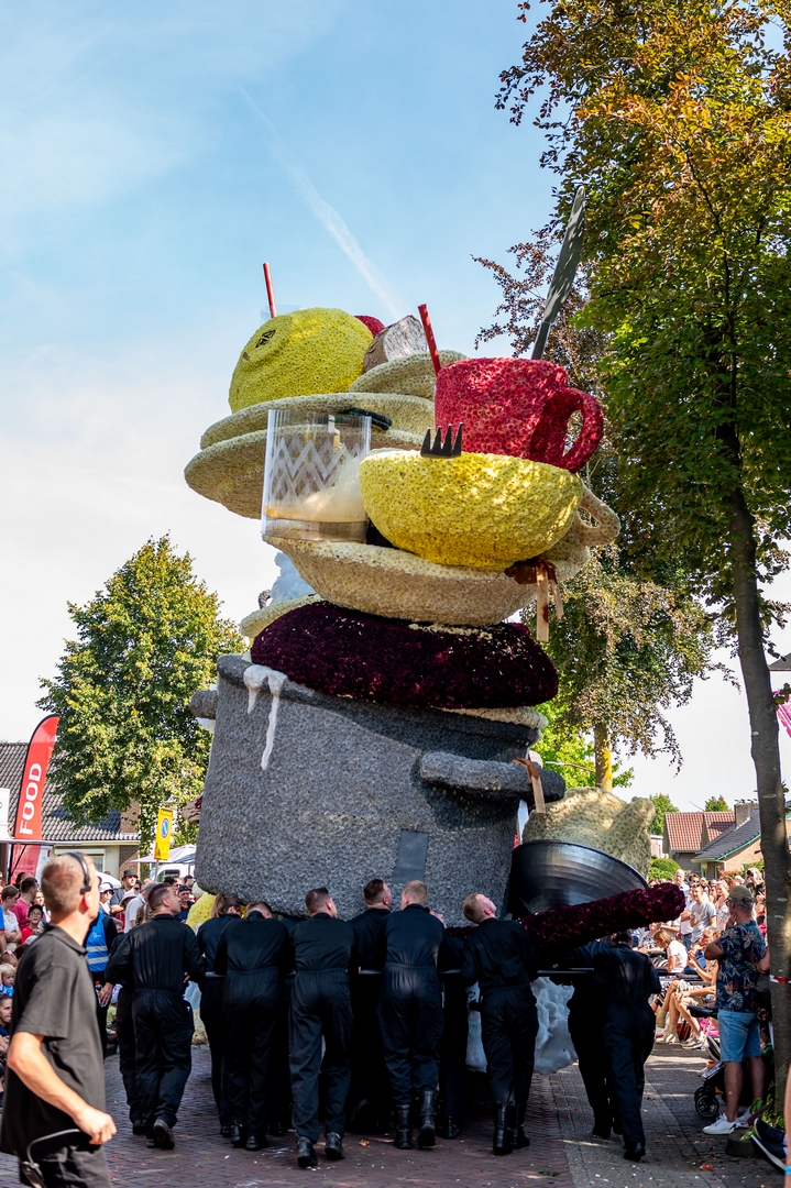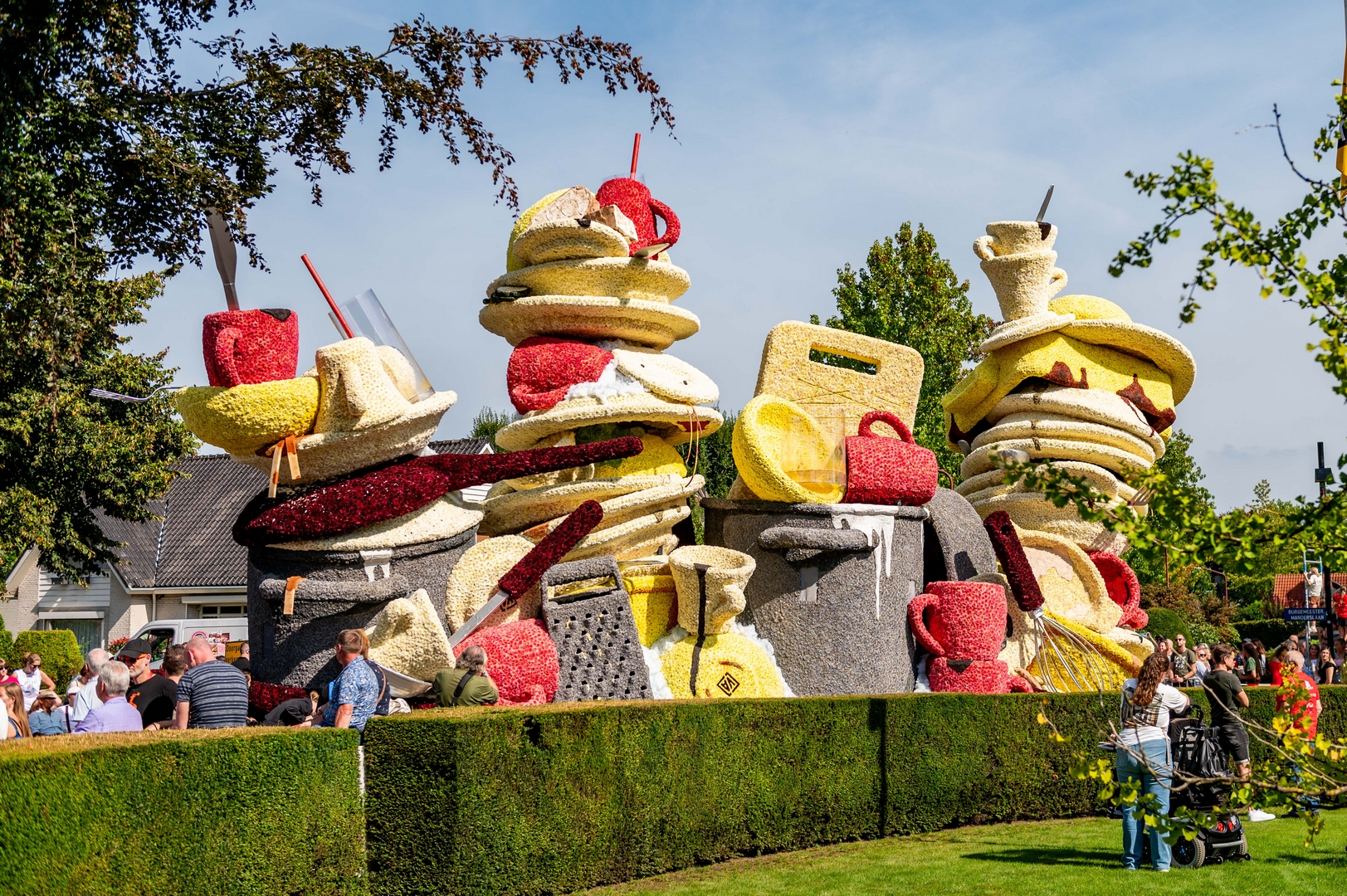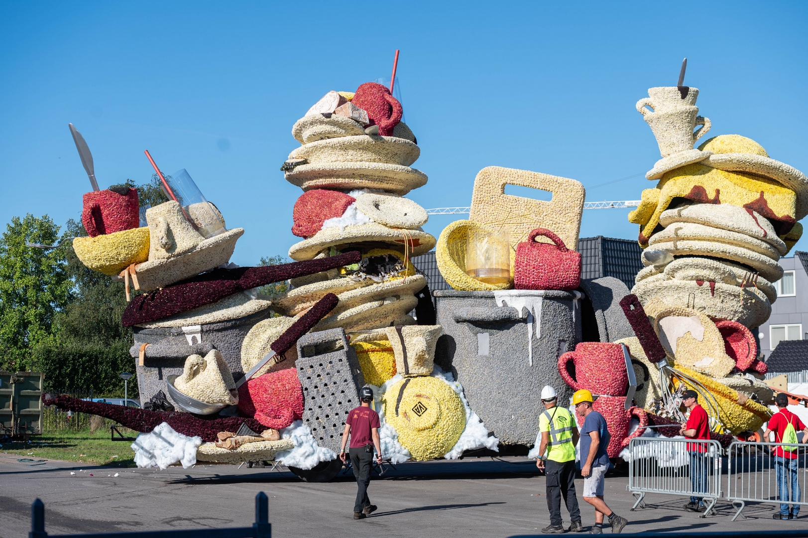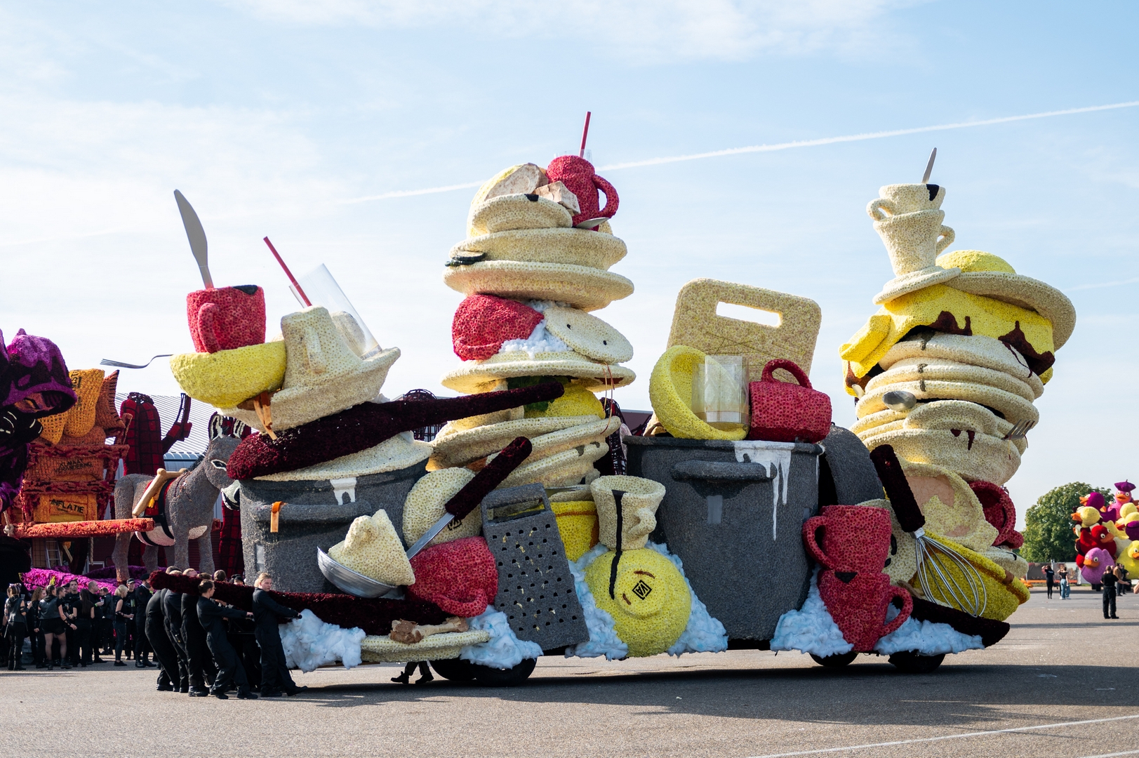 De onhandige opstapeling van borden, pannen, enzovoort is vooral qua compositie en