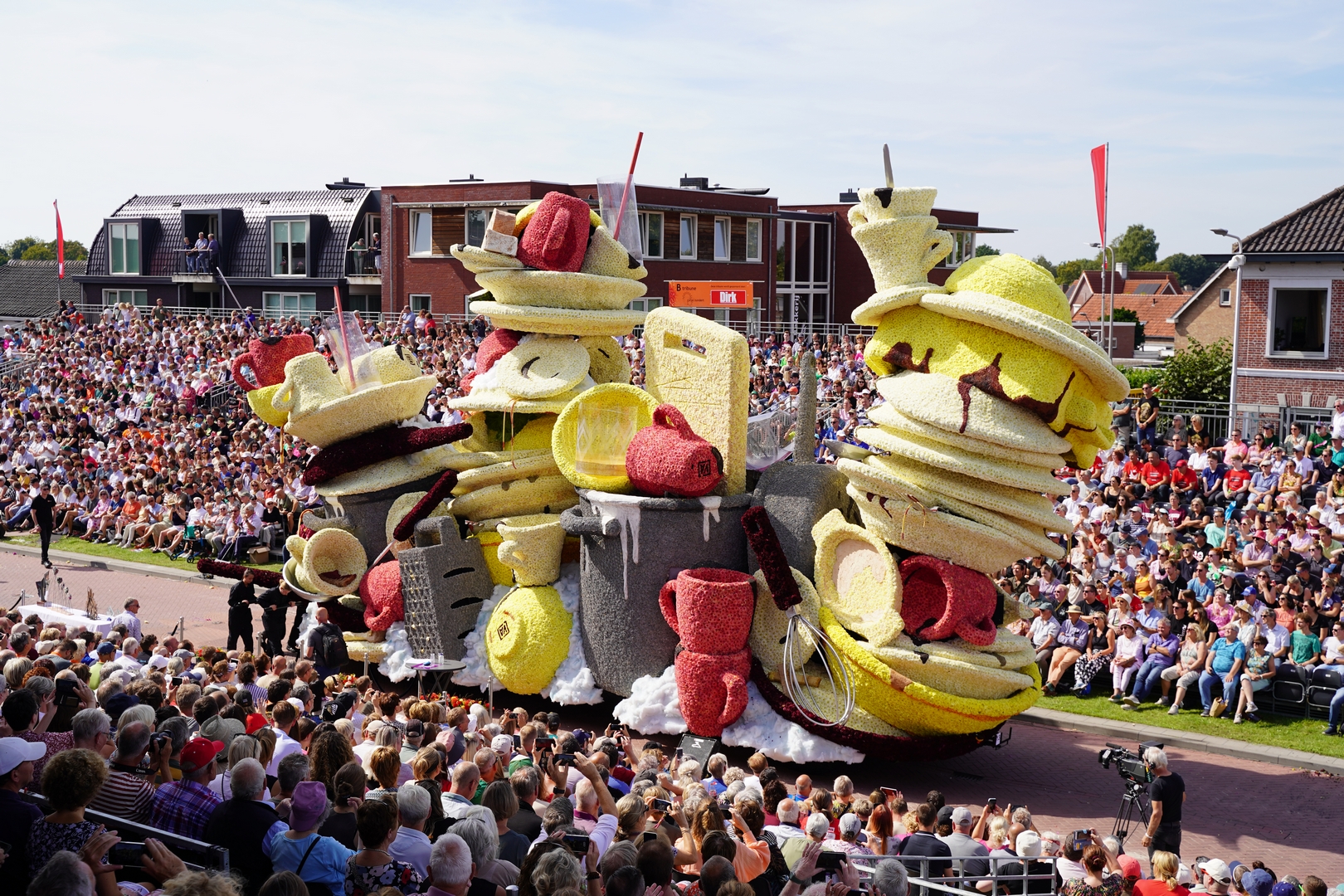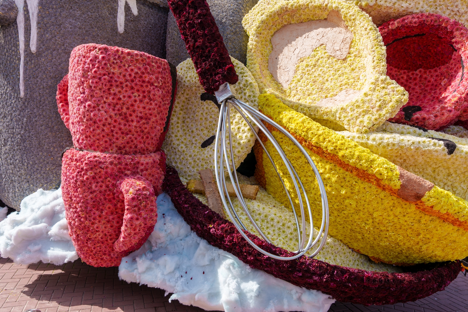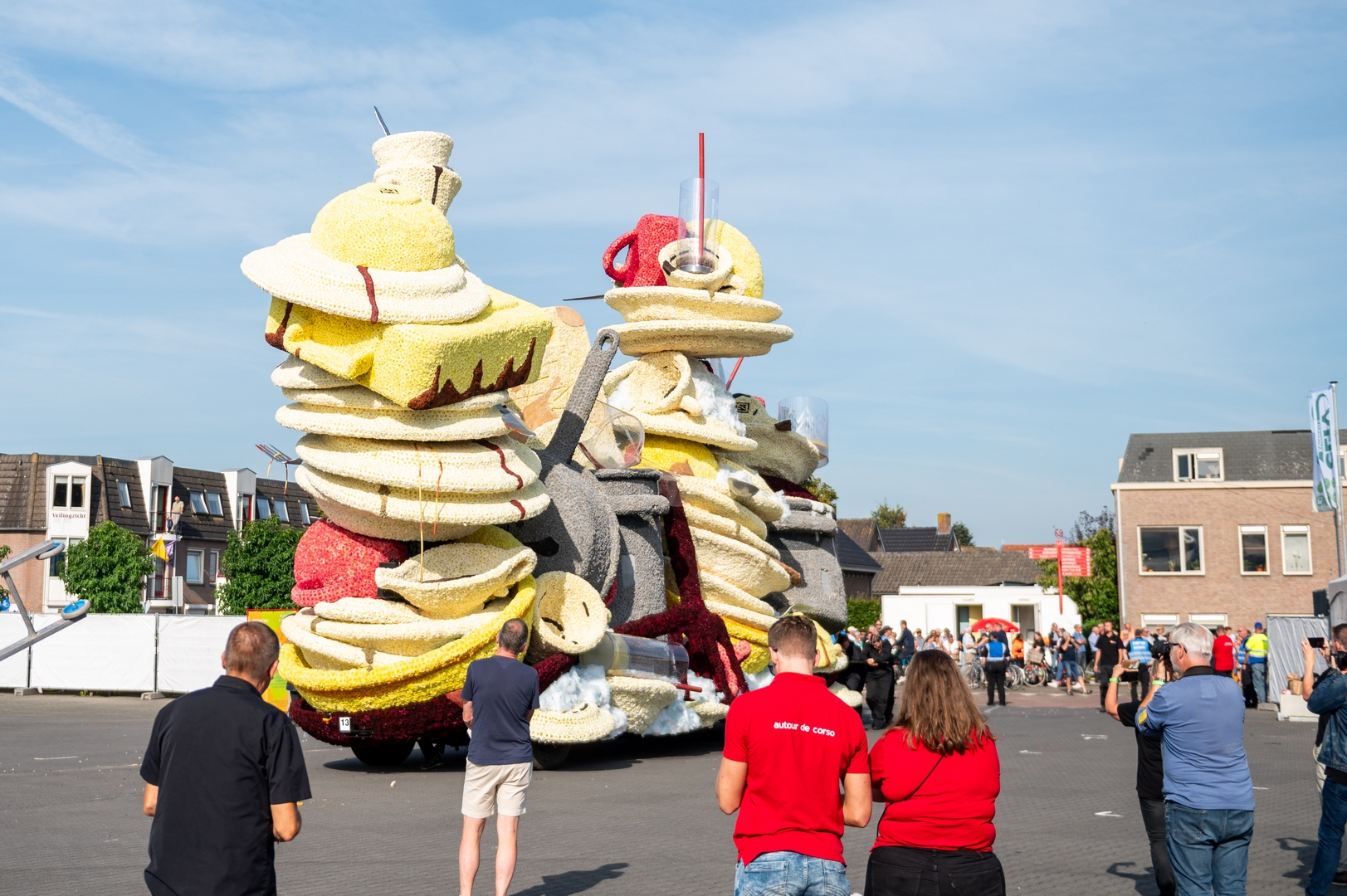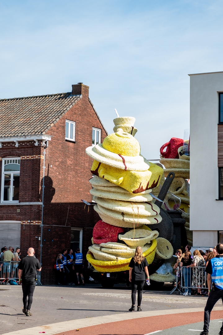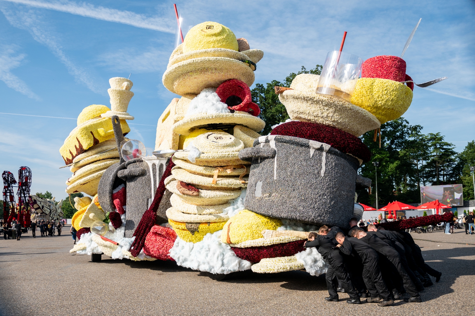De onhandige opstapeling van borden, pannen, enzovoort is vooral qua compositie en