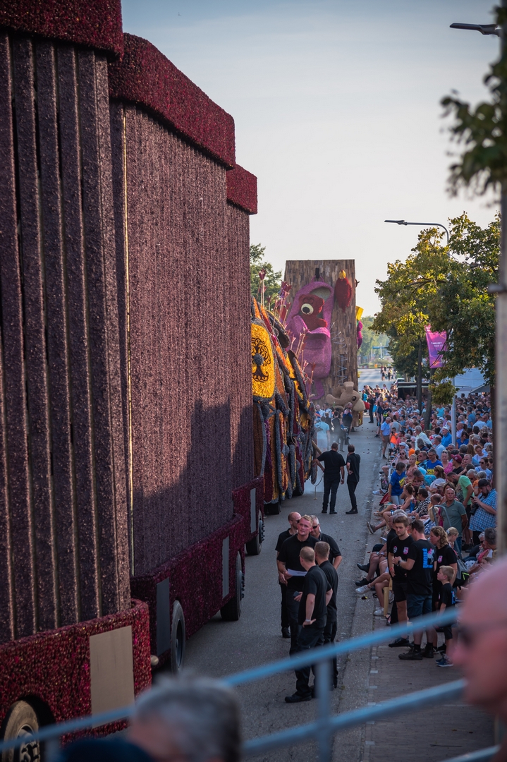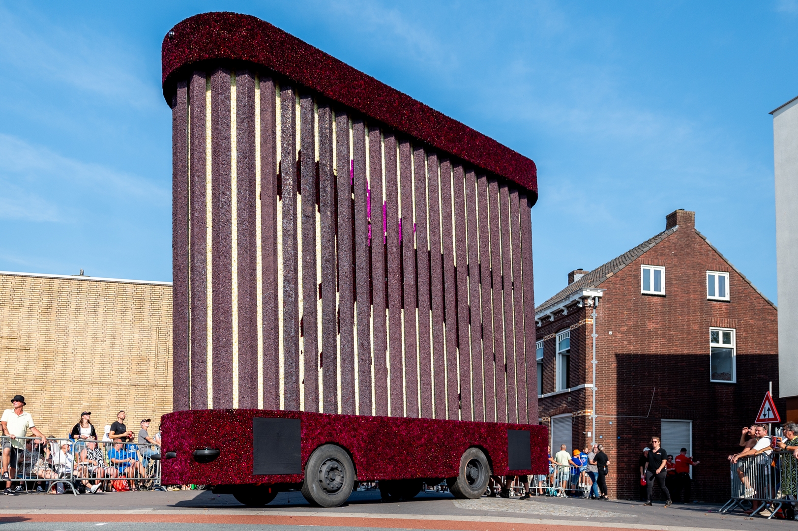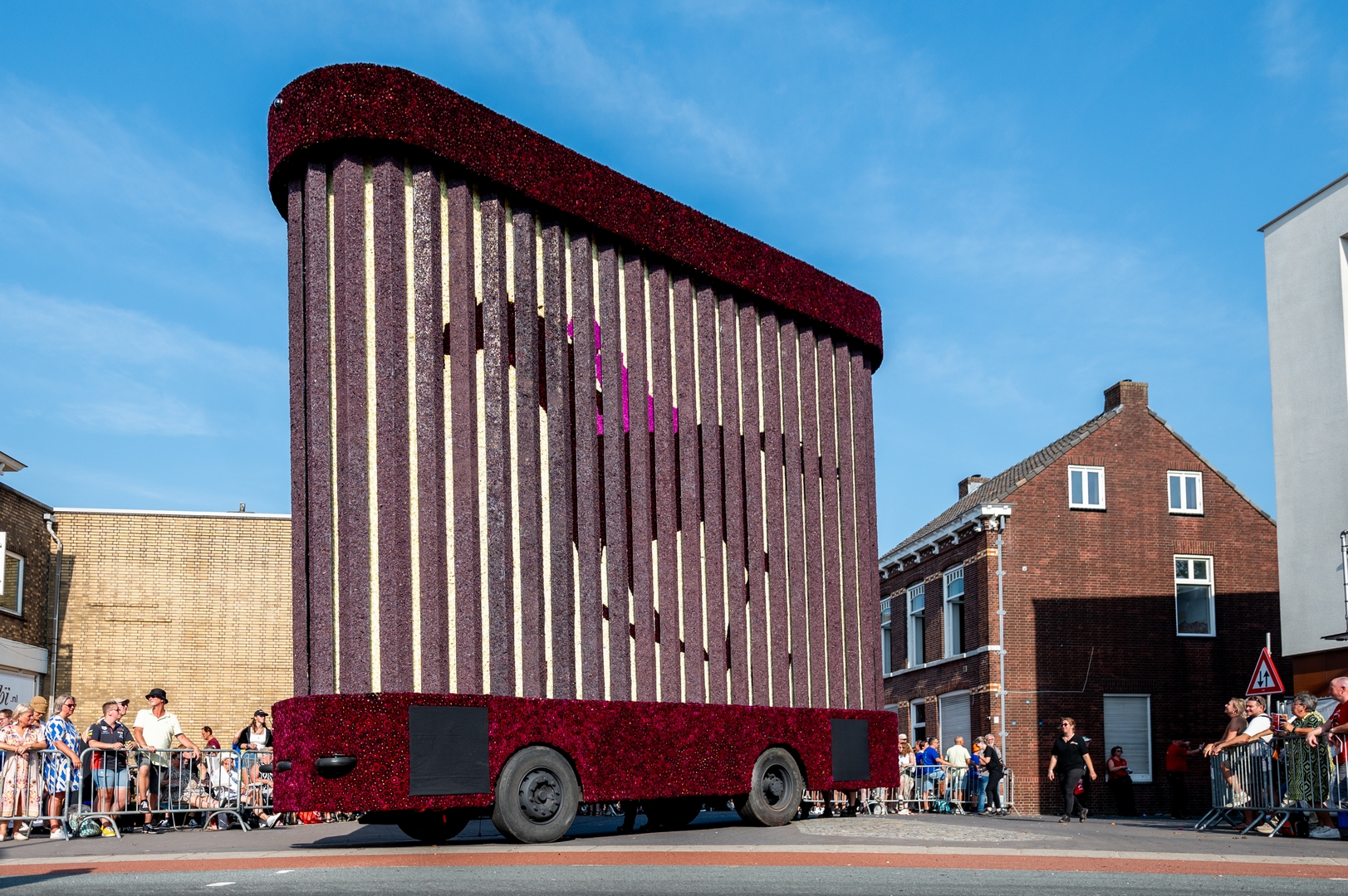 Dit is een compleet ander concept binnen het corso en dat verdient een compliment. Het publiek krijgt een treintje van vier wagens te zien en viermaal een voorstelling op die wagens. De wagens zelf zijn niet super interessant als objecten. Als het geheel komt aanrijden, denk je naar iets sciencefictionachtigste kijken, een enorm hoge smalle vorm met rasters. Alsof er een boodschap van doem wordt uitgesproken. De nieuwsgierigheid is in ieder geval gewekt.