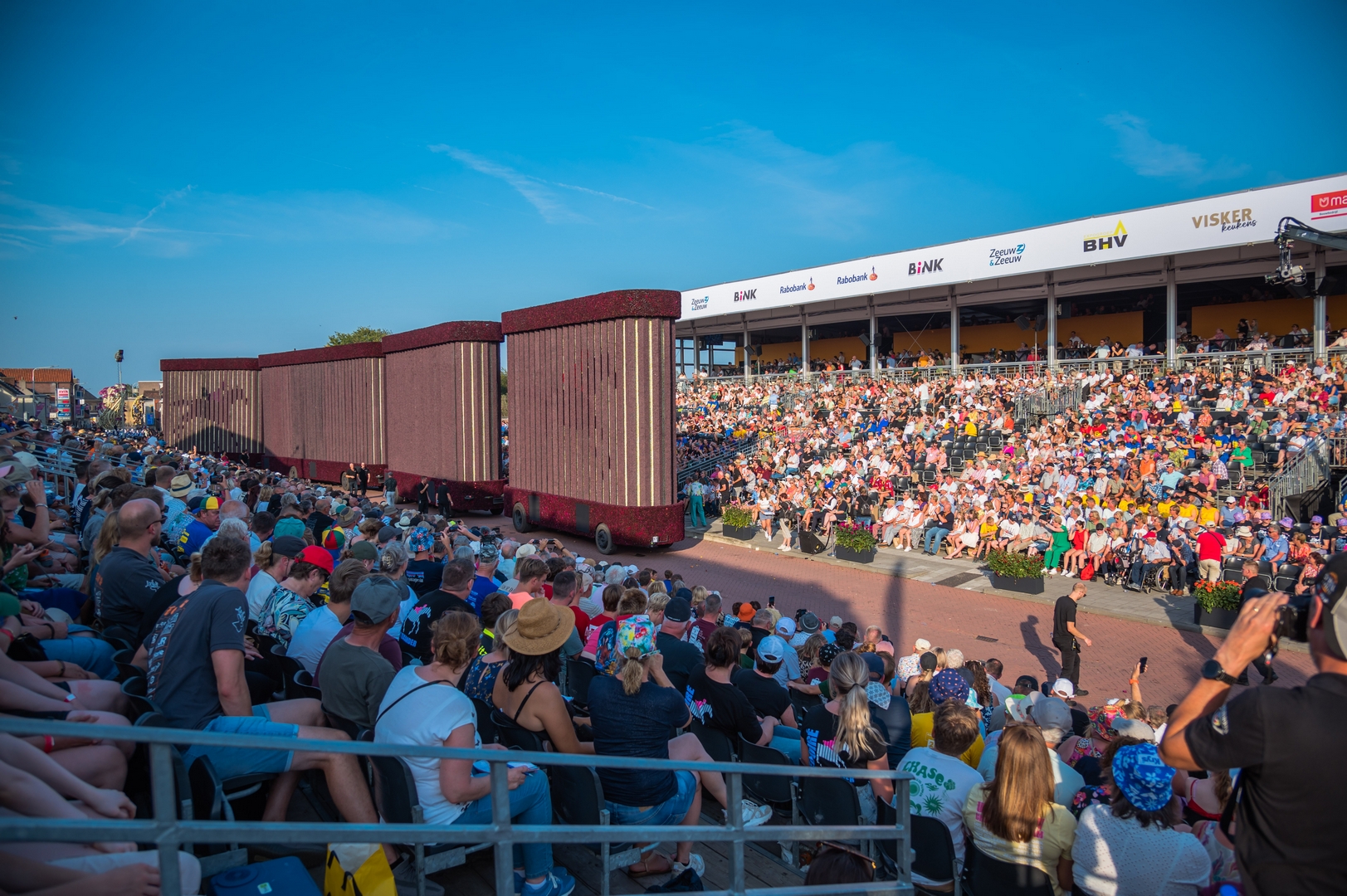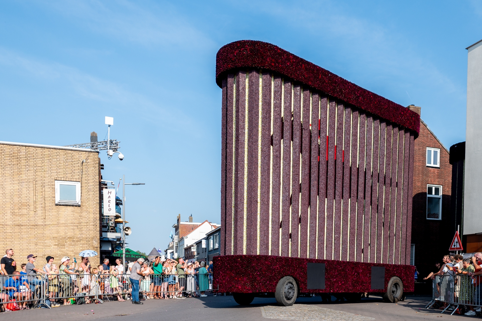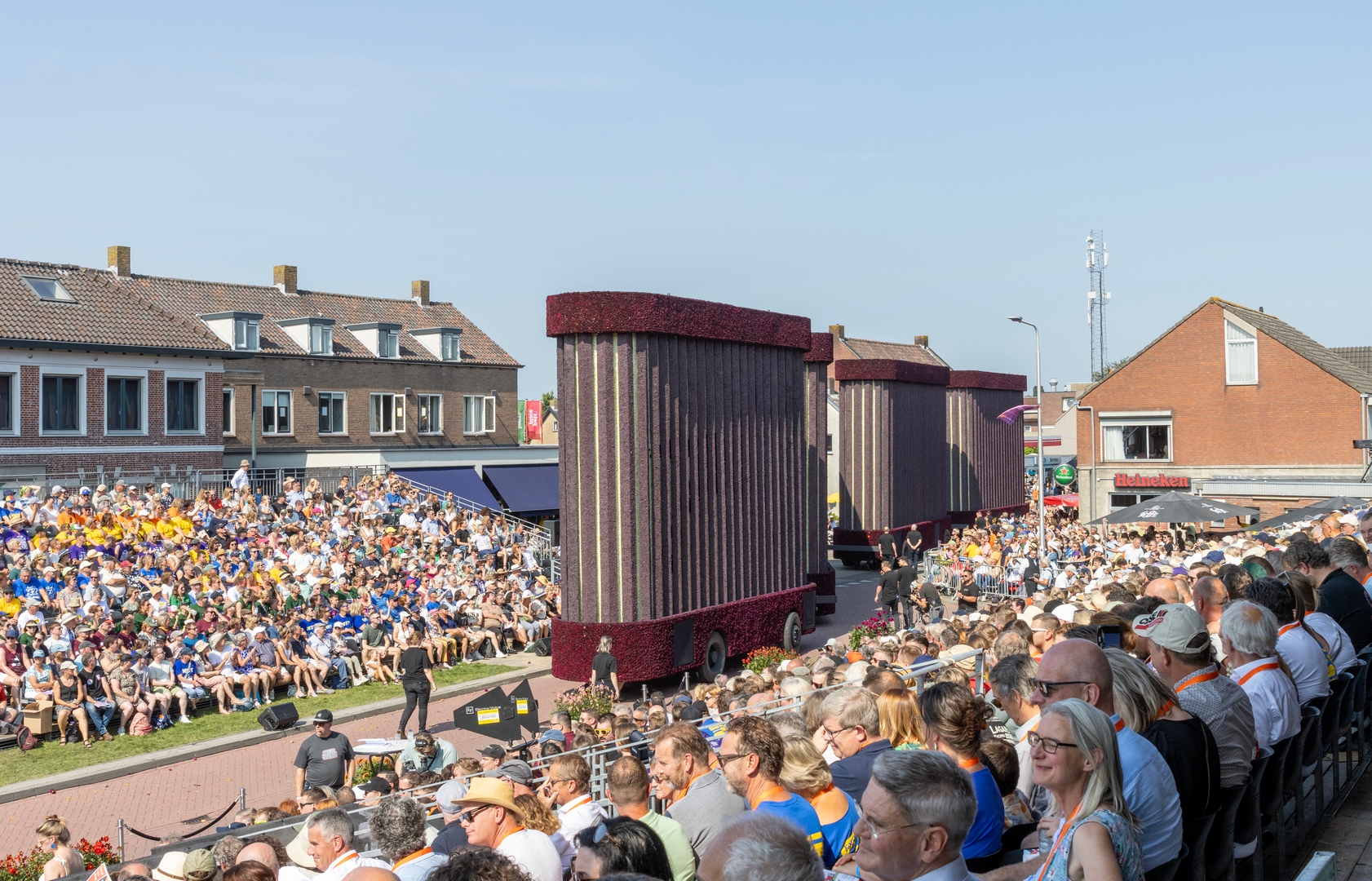 Dit is een compleet ander concept binnen het corso en dat verdient een compliment. Het publiek krijgt een treintje van vier wagens te zien en viermaal een voorstelling op die wagens. De wagens zelf zijn niet super interessant als objecten. Als het geheel komt aanrijden, denk je naar iets sciencefictionachtigste kijken, een enorm hoge smalle vorm met rasters. Alsof er een boodschap van doem wordt uitgesproken. De nieuwsgierigheid is in ieder geval gewekt.