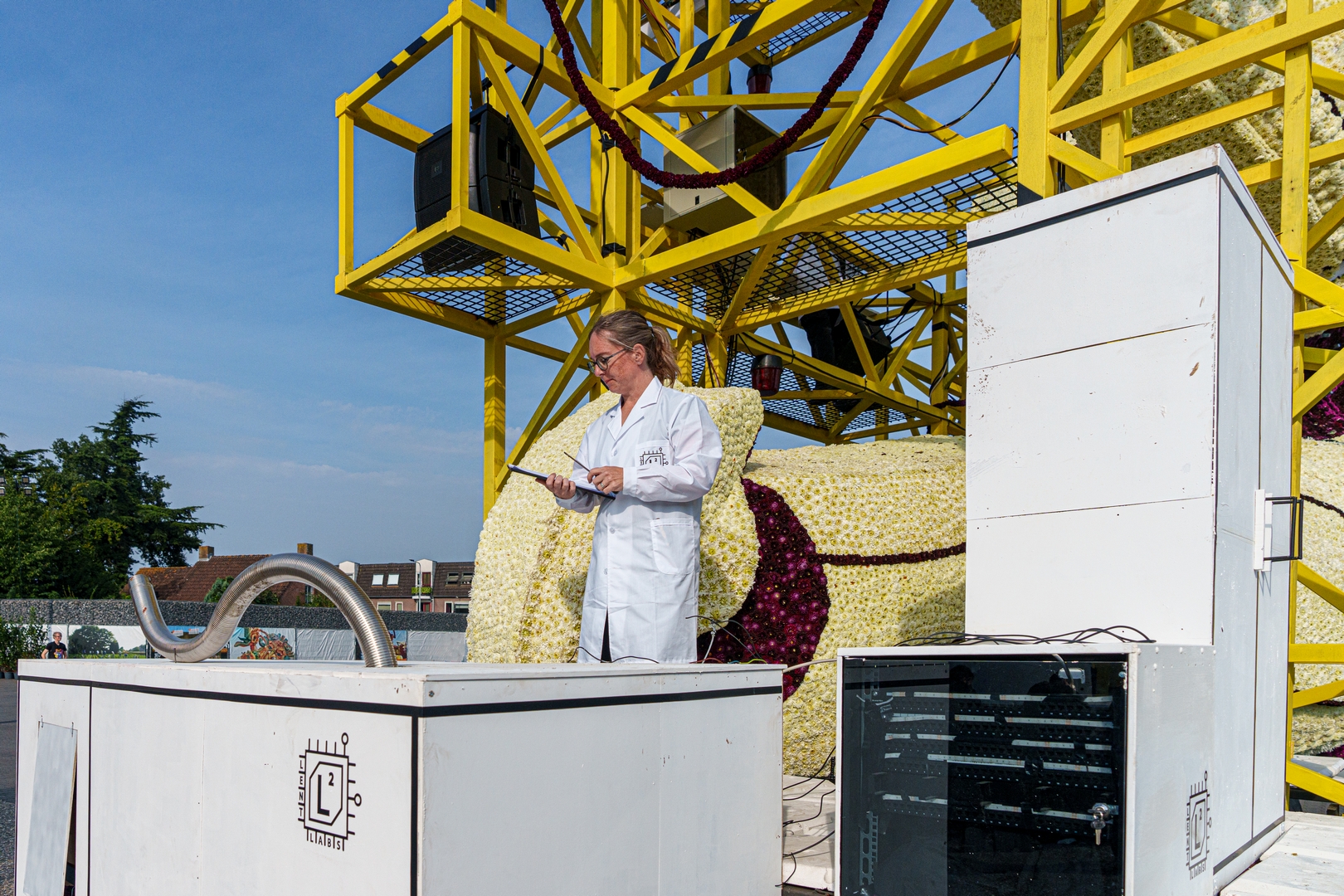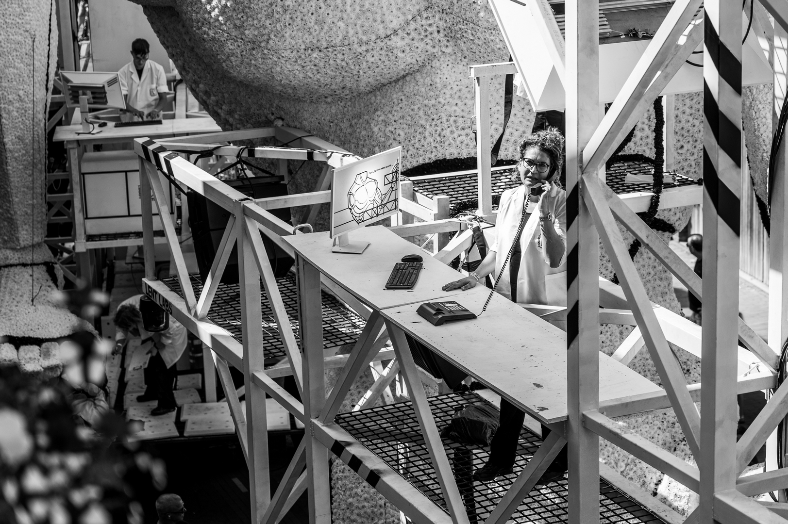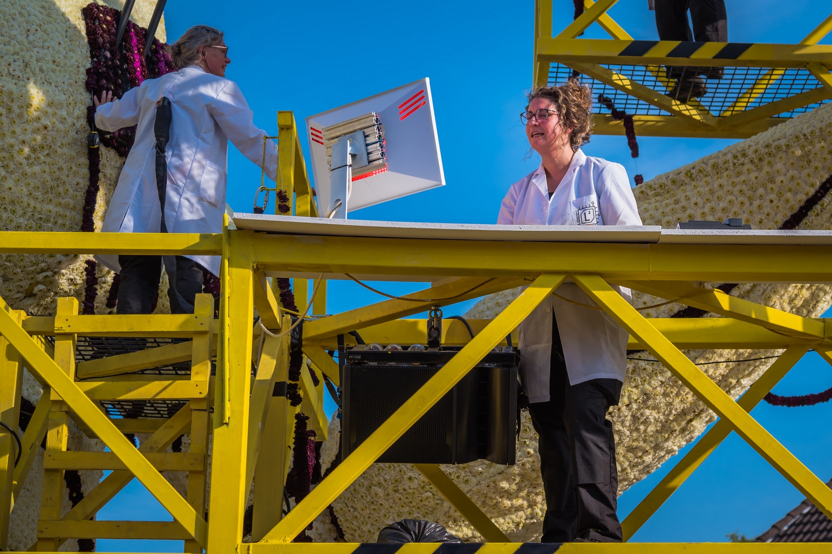 Er zijn heldere keuzes gemaakt in de vorm en kleur van het lab. De gele kleuren met donkere details in de steiger geven de juiste sfeer. Hier gaat iets gebeuren wat niet de bedoeling is. Dat moment wordt versterkt door de figuratie die door te schreeuwen en gebaren paniek suggereert, versterkt door de alarmlichten-en geluiden. Frankenstein neemt het lab over, maar hij blijft vriendelijk ogen. Niemand wordt bang van dit ‘monster’. We zien verschillen in het spel van de figuranten. Sommige personen doen het goed, anderen zitten ‘te gespeeld’ in hun rol. Een goede regie kan de figuranten wellicht beter op hun plek zetten.