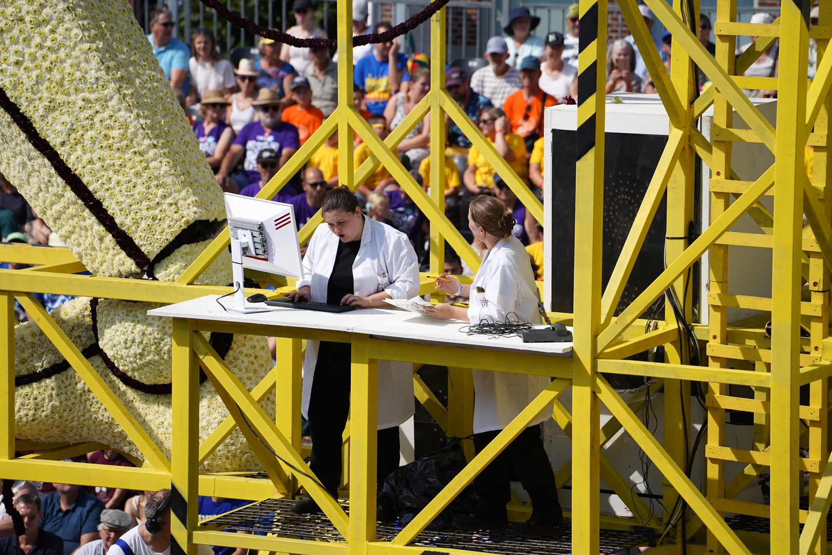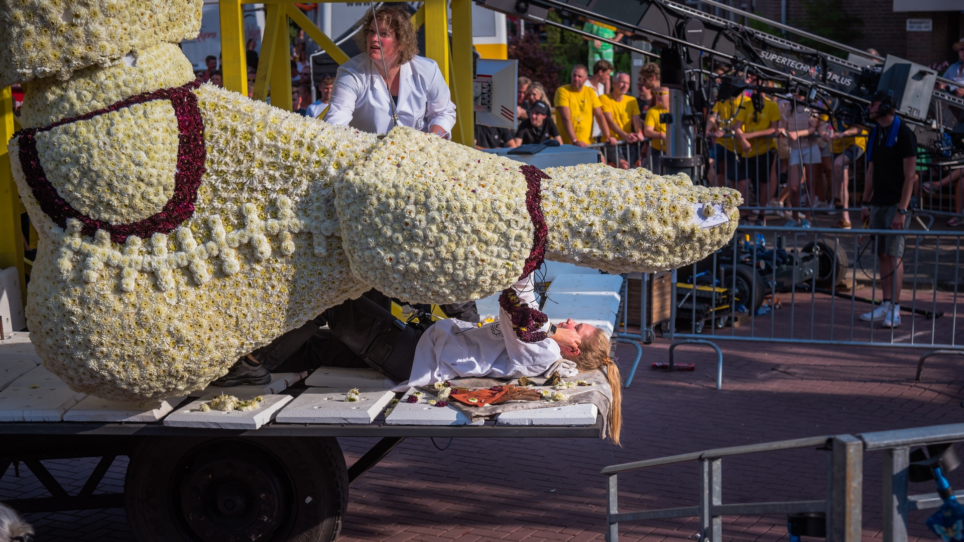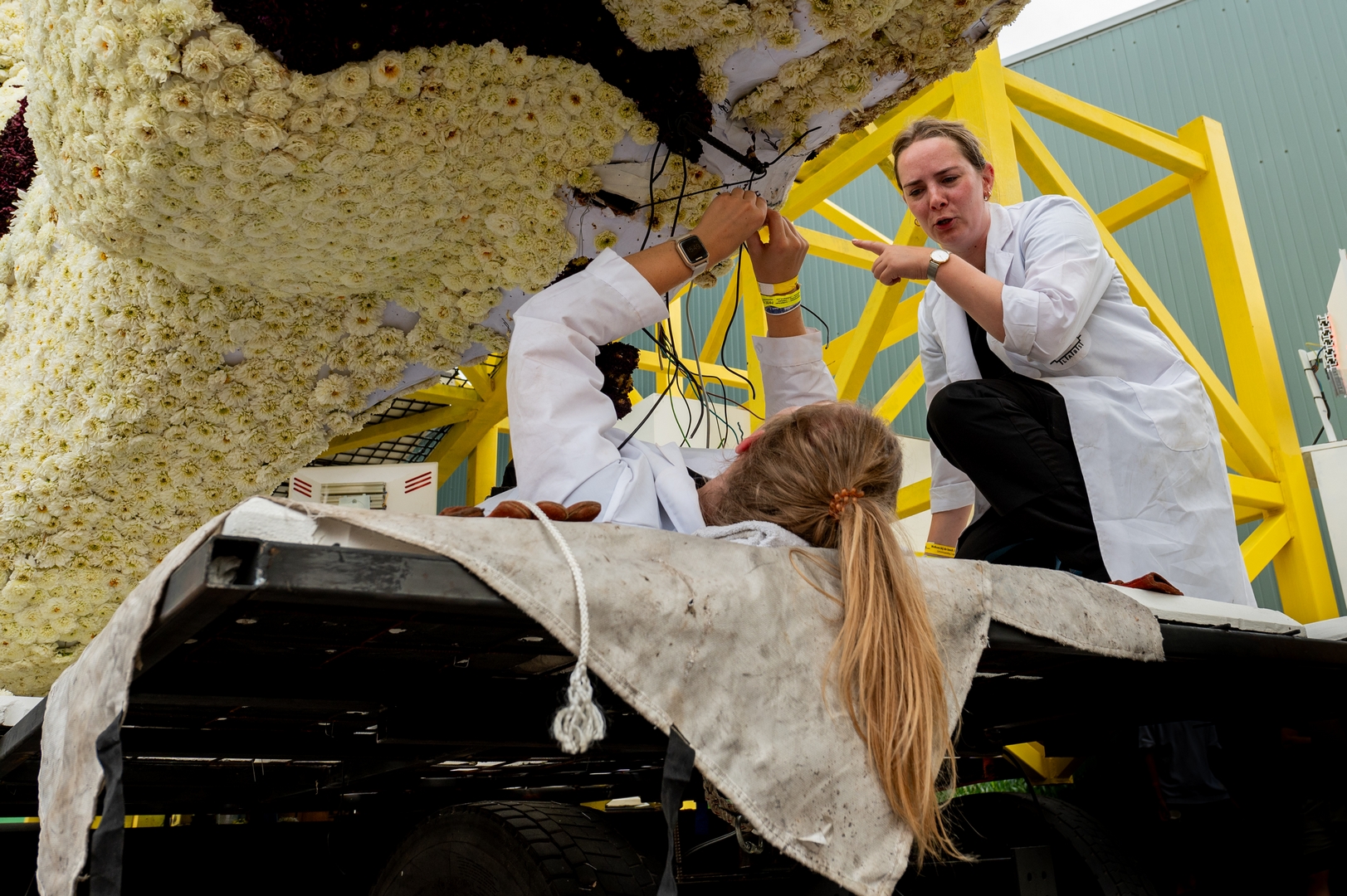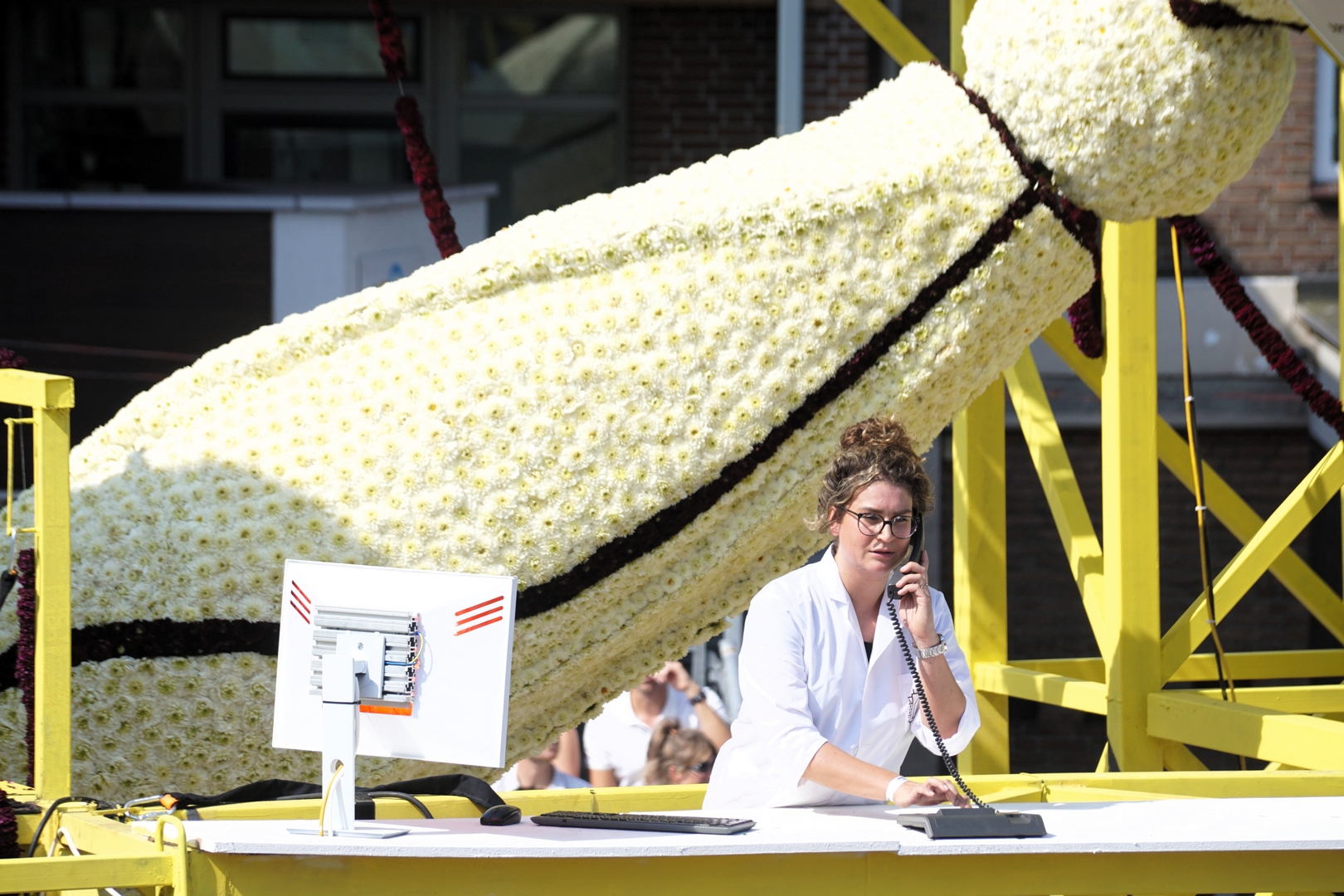 Er zijn heldere keuzes gemaakt in de vorm en kleur van het lab. De gele kleuren met donkere details in de steiger geven de juiste sfeer. Hier gaat iets gebeuren wat niet de bedoeling is. Dat moment wordt versterkt door de figuratie die door te schreeuwen en gebaren paniek suggereert, versterkt door de alarmlichten-en geluiden. Frankenstein neemt het lab over, maar hij blijft vriendelijk ogen. Niemand wordt bang van dit ‘monster’. We zien verschillen in het spel van de figuranten. Sommige personen doen het goed, anderen zitten ‘te gespeeld’ in hun rol. Een goede regie kan de figuranten wellicht beter op hun plek zetten.