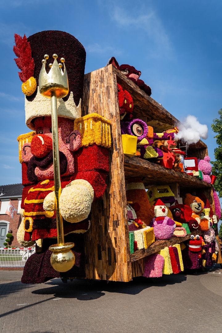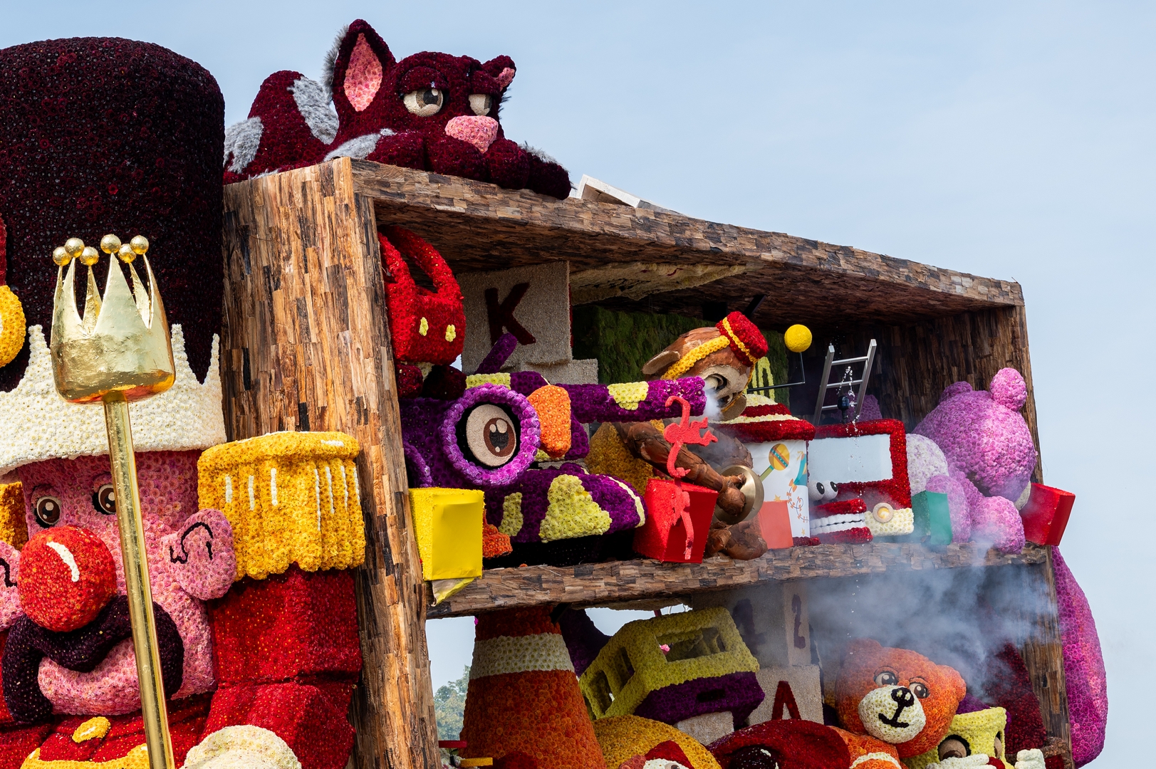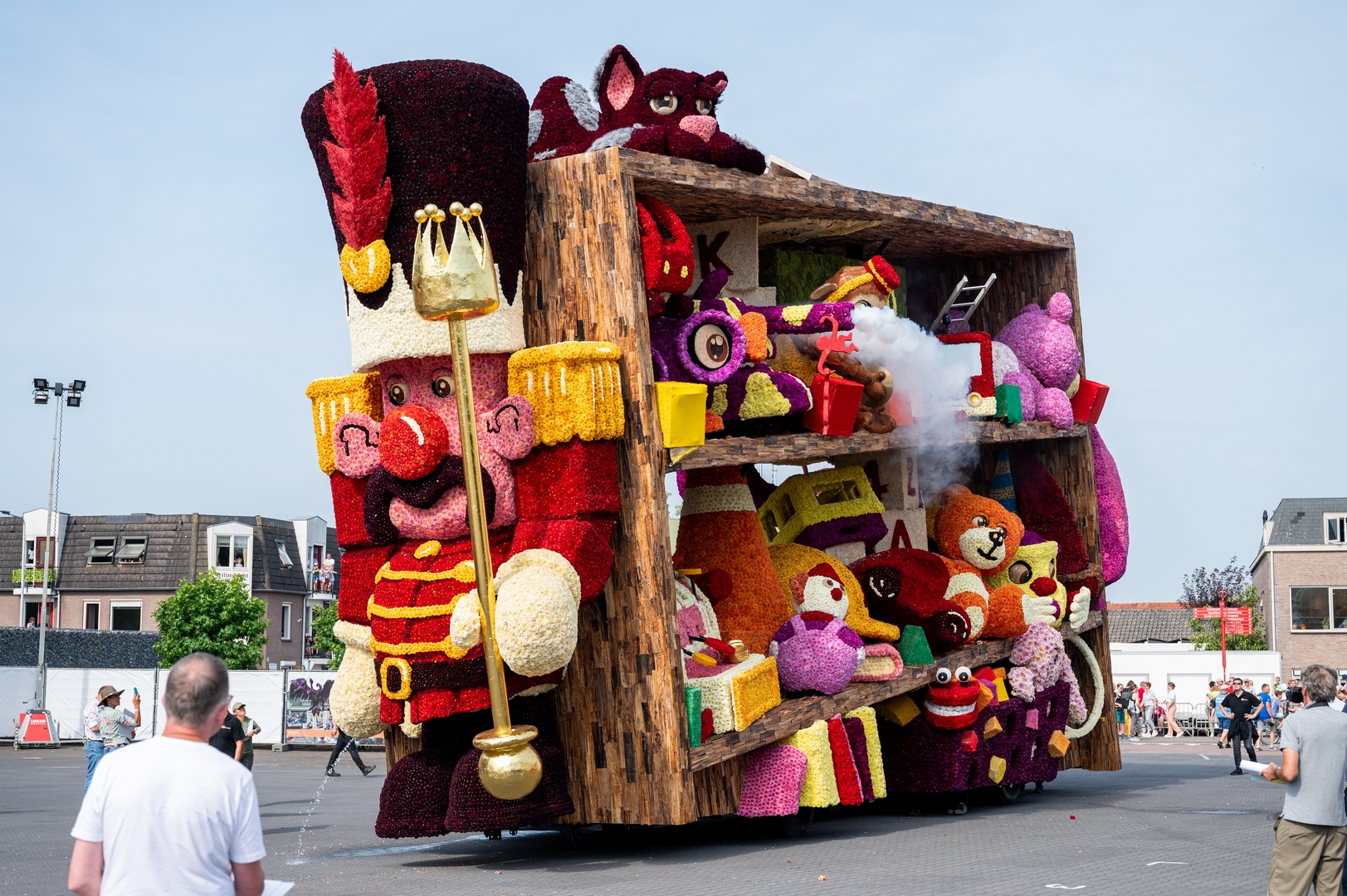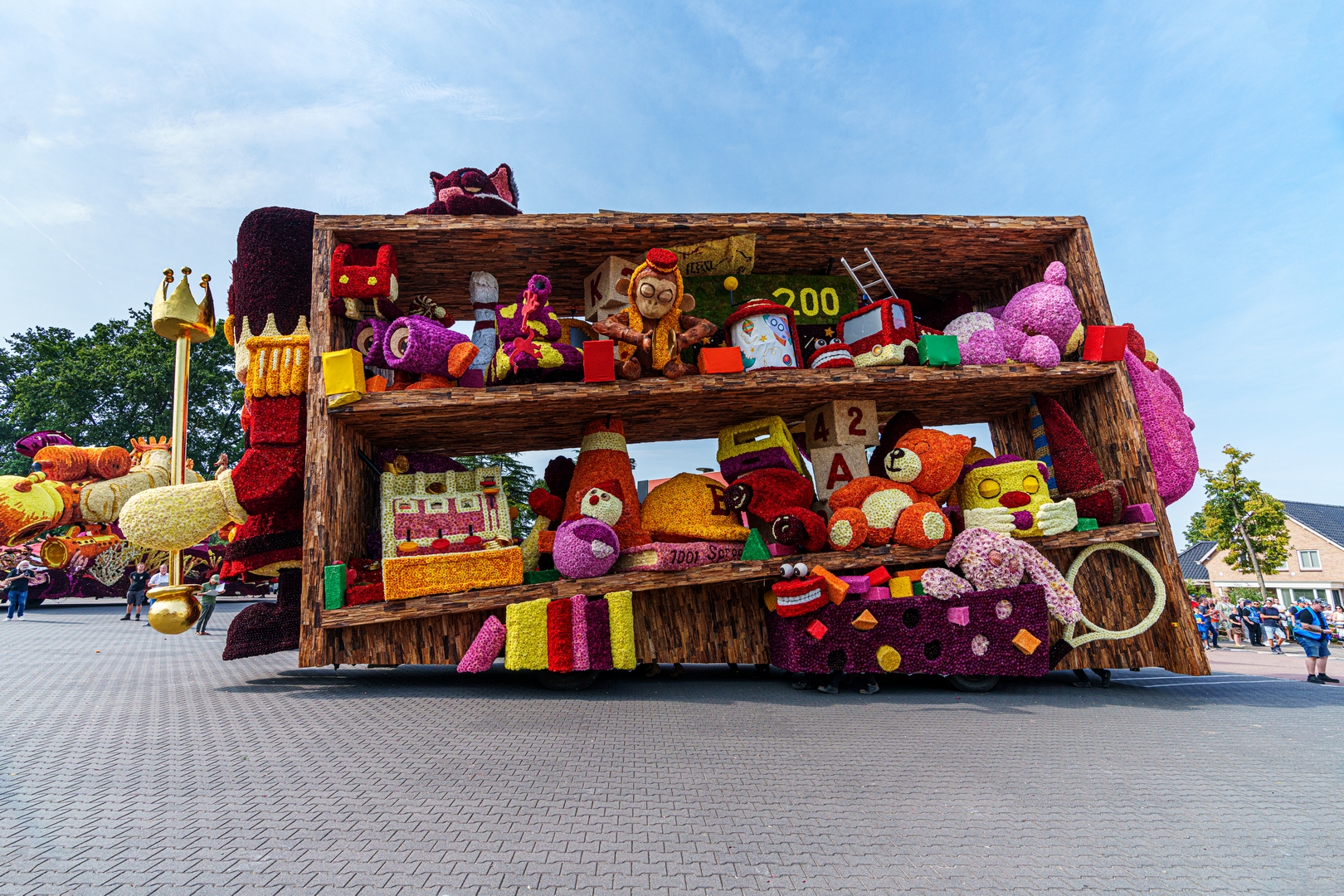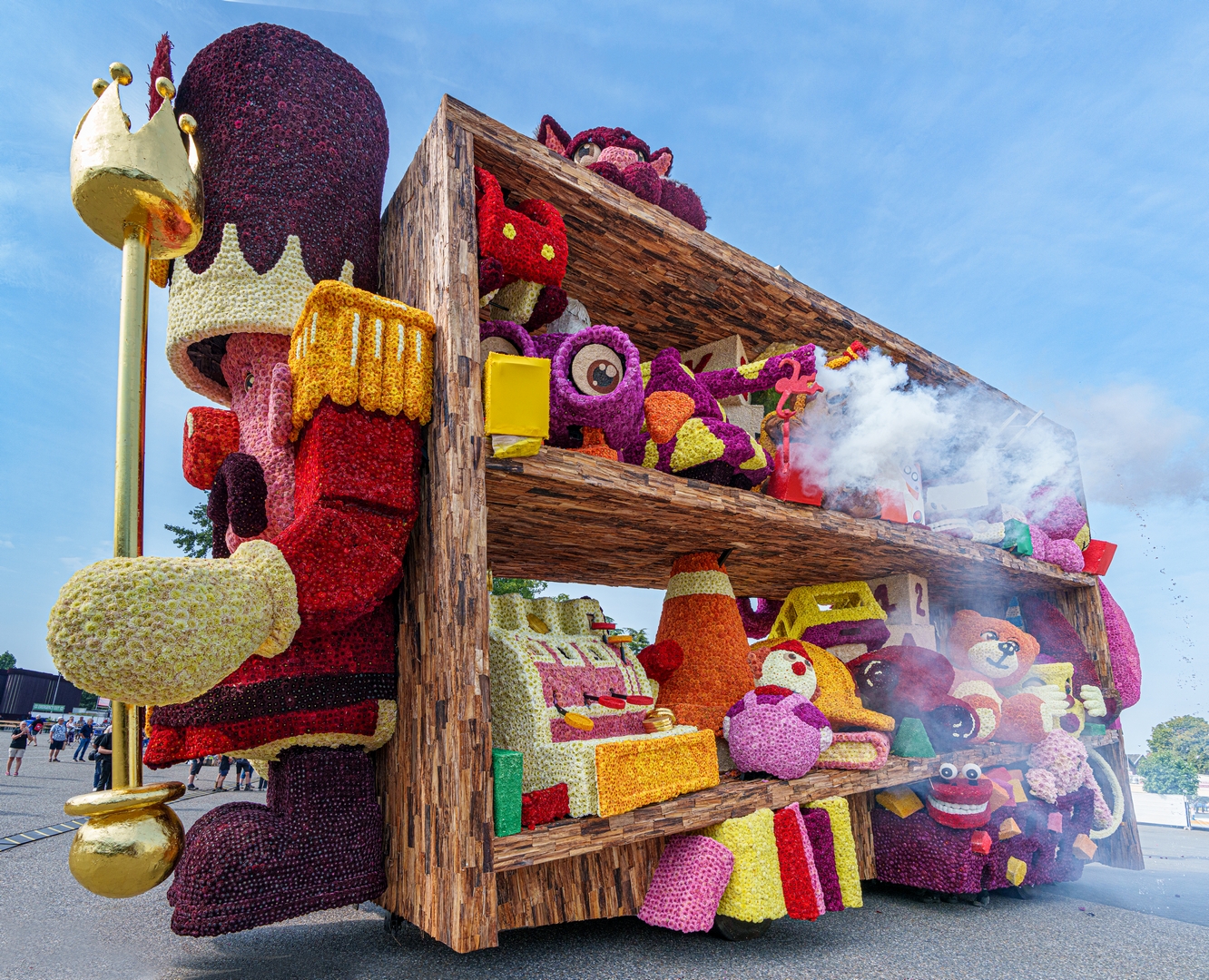 De kast is volledig volgepropt met mooie en grappig uitgewerkte stukken speelgoed. Alles is erg herkenbaar. De hoed van de paleiswacht, de passagiers van de bus, de waterkraan bij de brandweerauto, het waterpistool (met waterstraal), het klappergebit, de kassa. Ieder stuk speelgoed is leuk om te zien en alles beweegt.