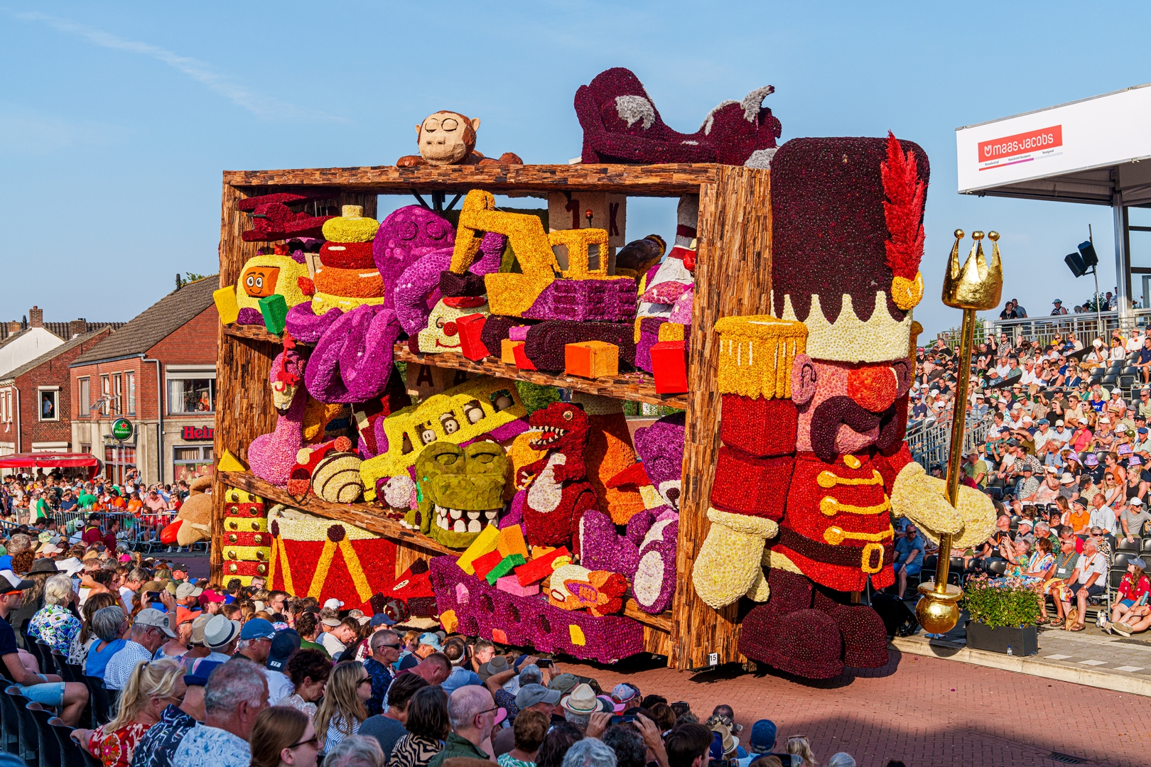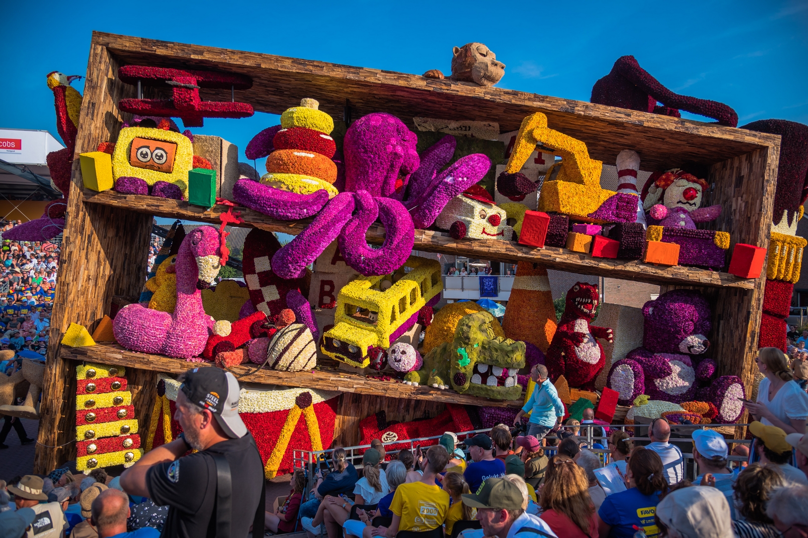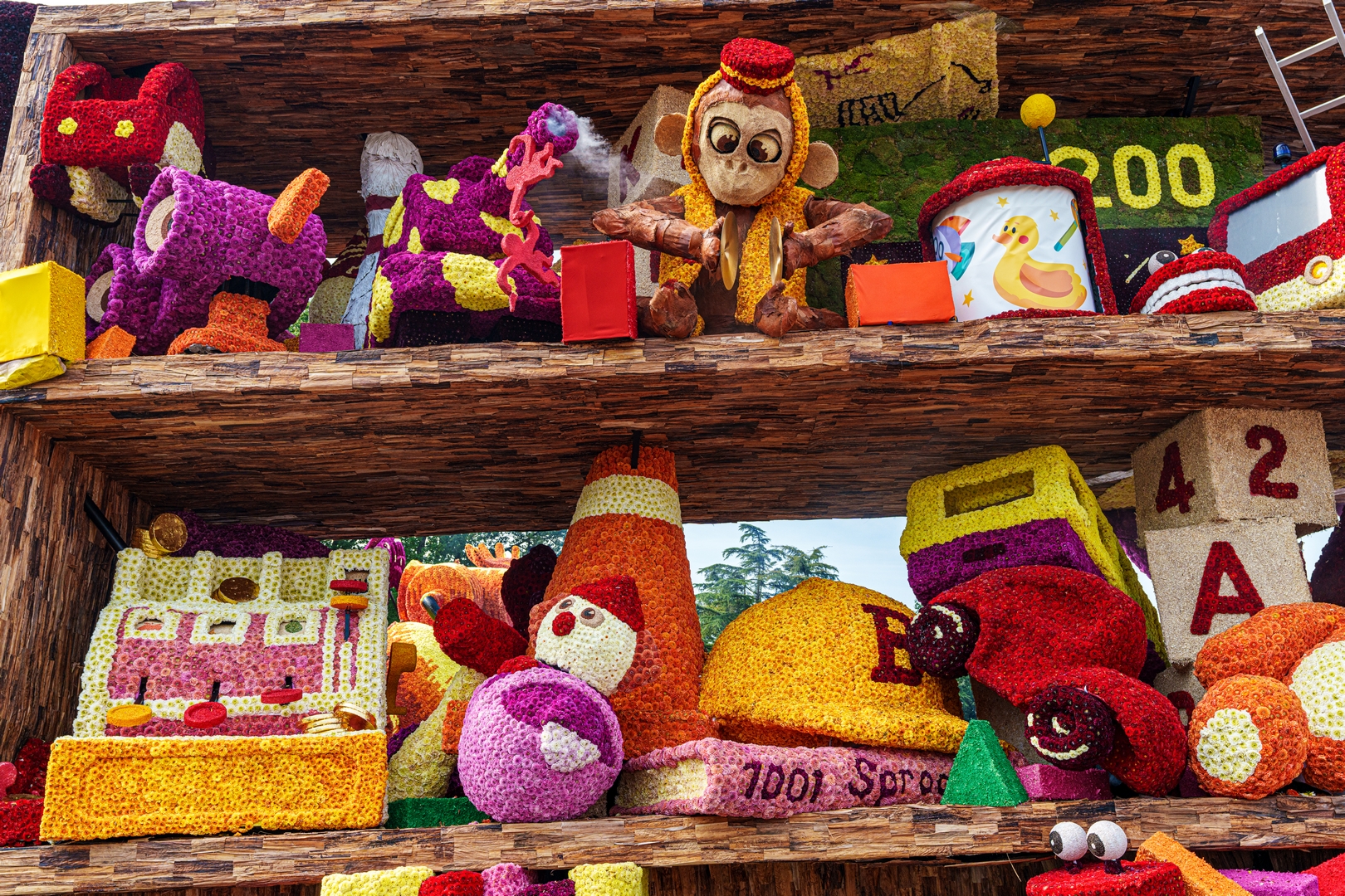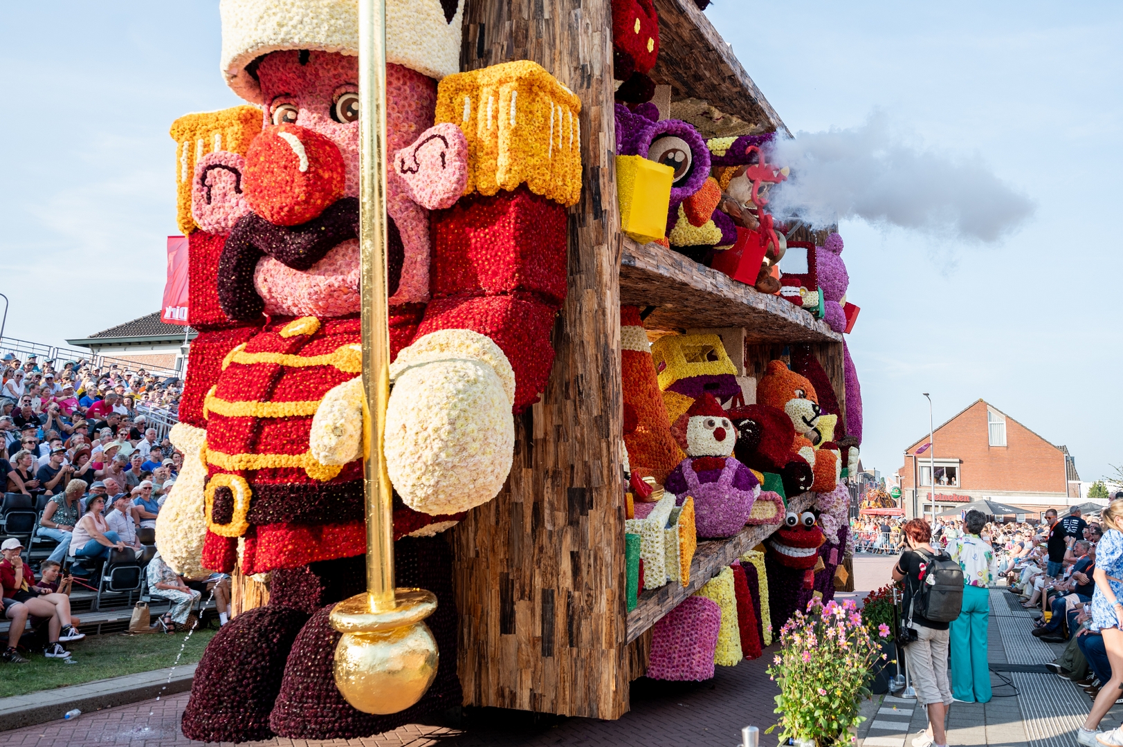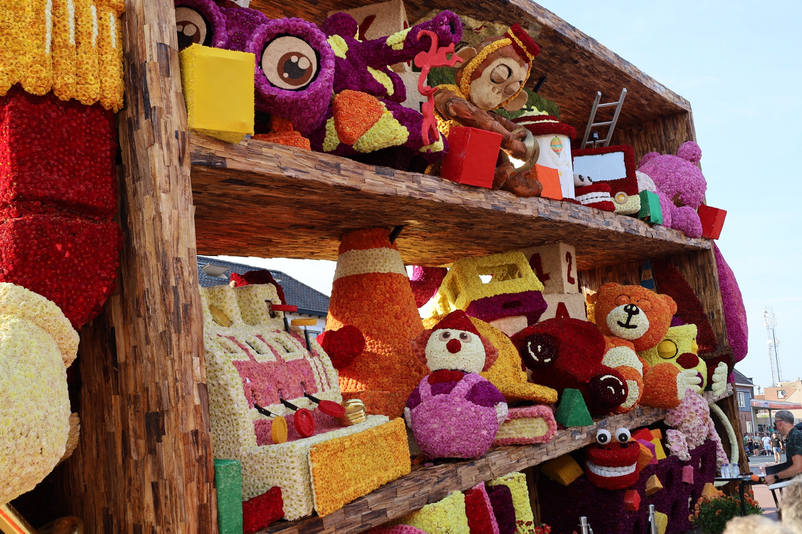 De kast is volledig volgepropt met mooie en grappig uitgewerkte stukken speelgoed. Alles is erg herkenbaar. De hoed van de paleiswacht, de passagiers van de bus, de waterkraan bij de brandweerauto, het waterpistool (met waterstraal), het klappergebit, de kassa. Ieder stuk speelgoed is leuk om te zien en alles beweegt.