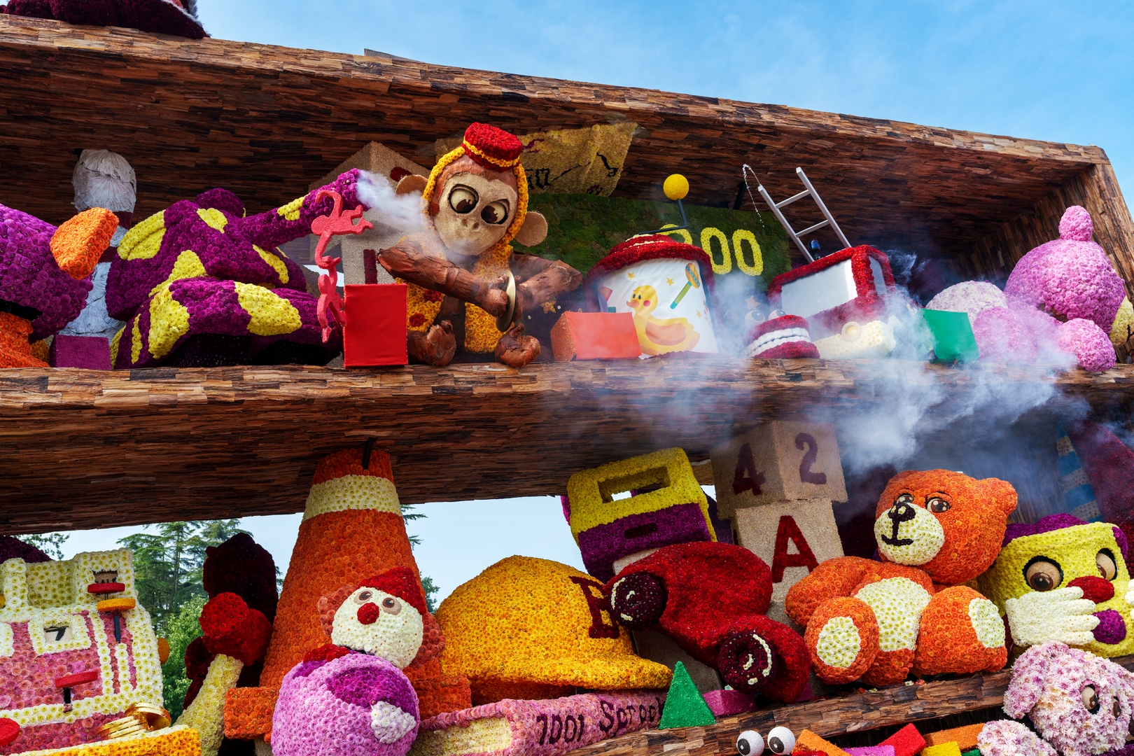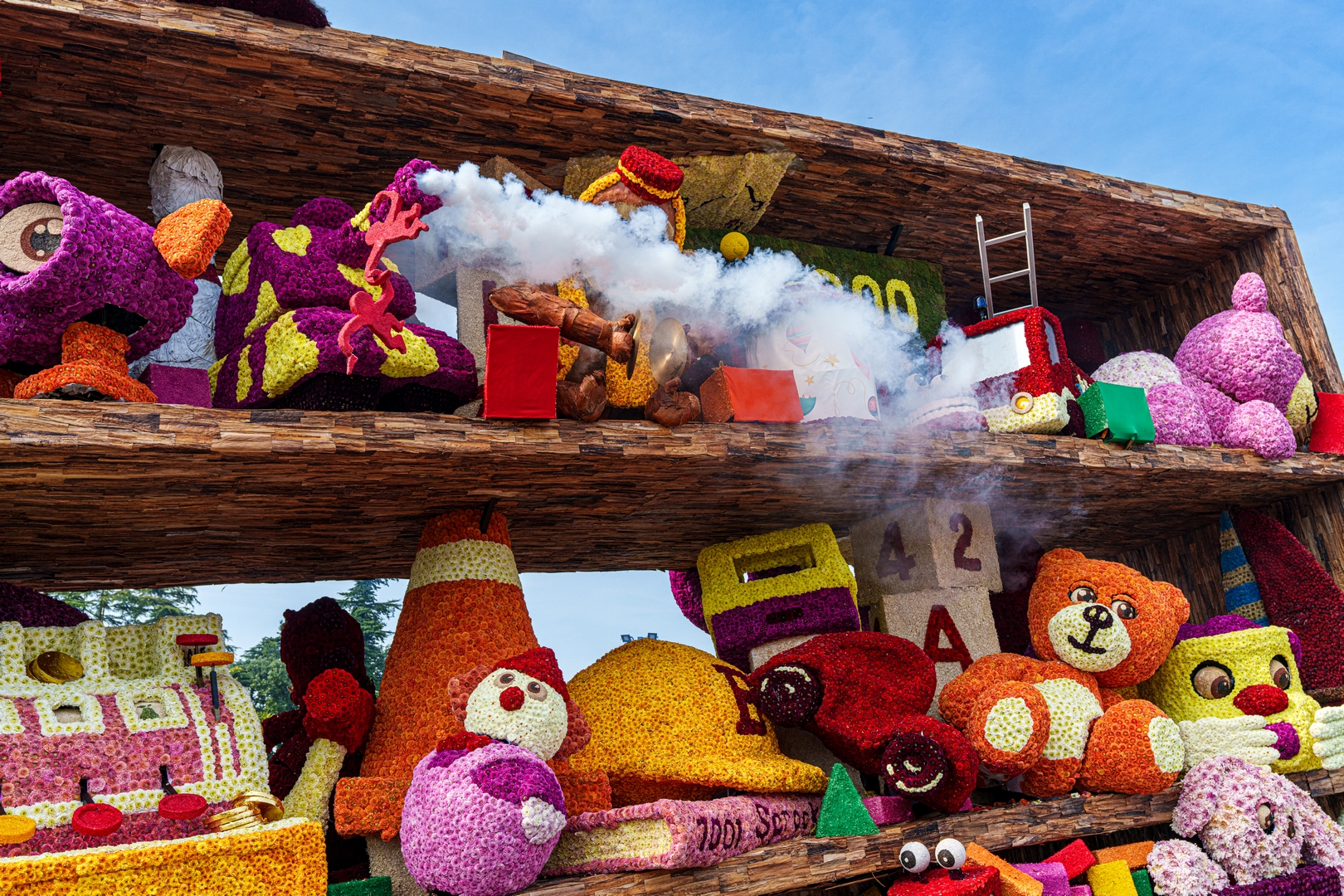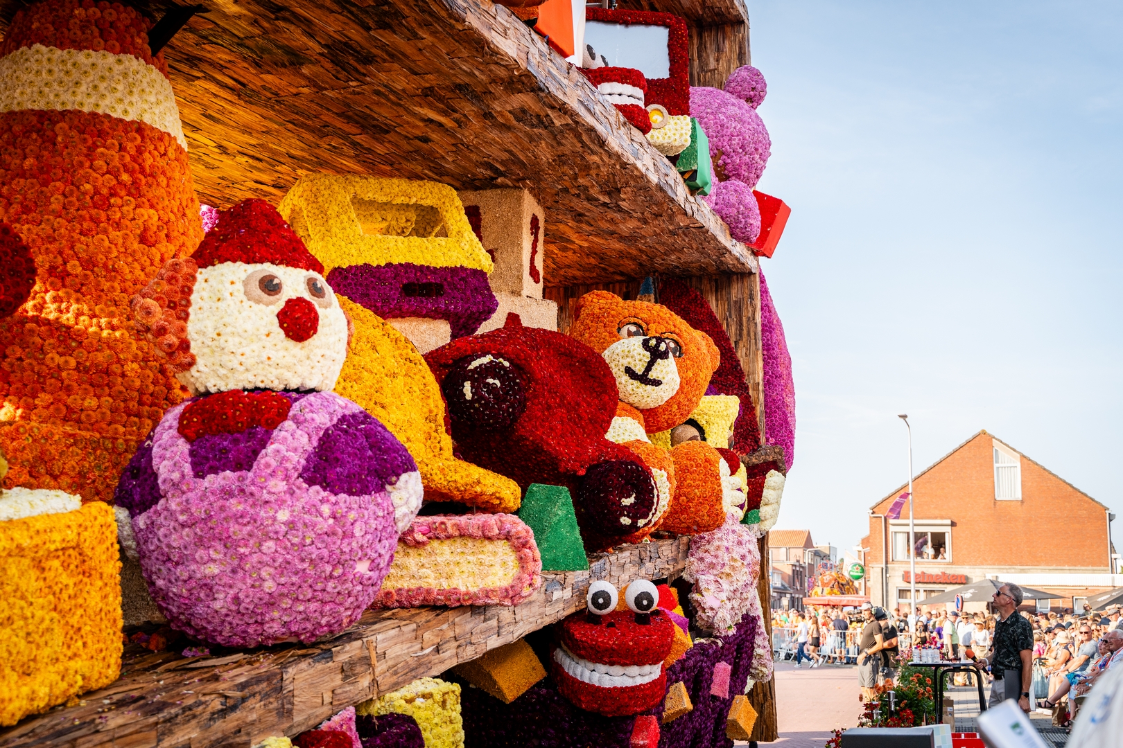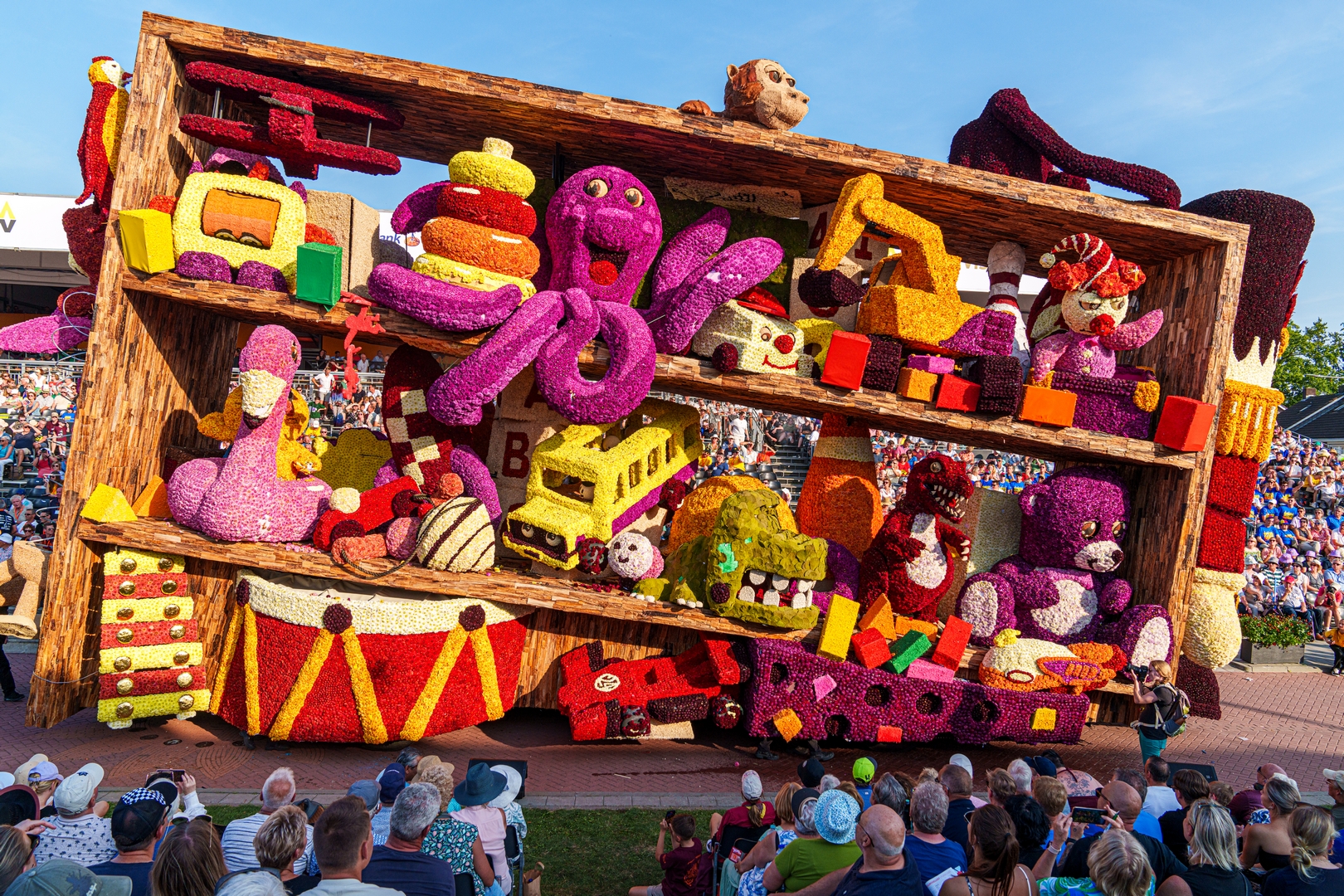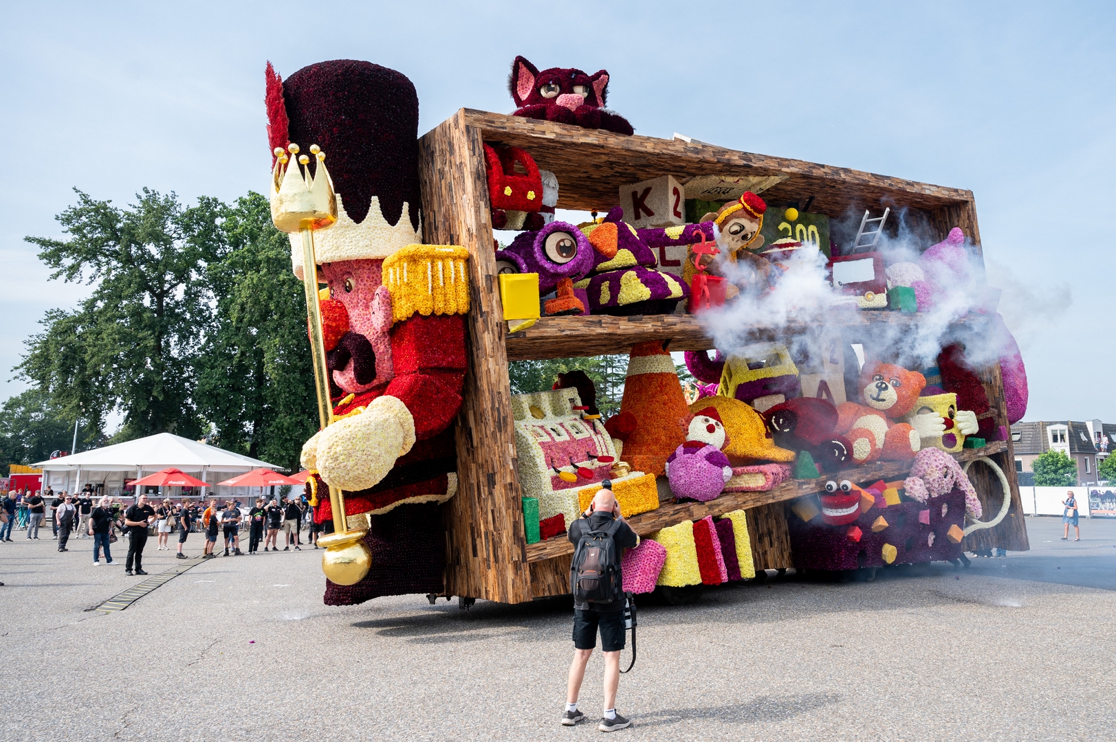 De kast is volledig volgepropt met mooie en grappig uitgewerkte stukken speelgoed. Alles is erg herkenbaar. De hoed van de paleiswacht, de passagiers van de bus, de waterkraan bij de brandweerauto, het waterpistool (met waterstraal), het klappergebit, de kassa. Ieder stuk speelgoed is leuk om te zien en alles beweegt.