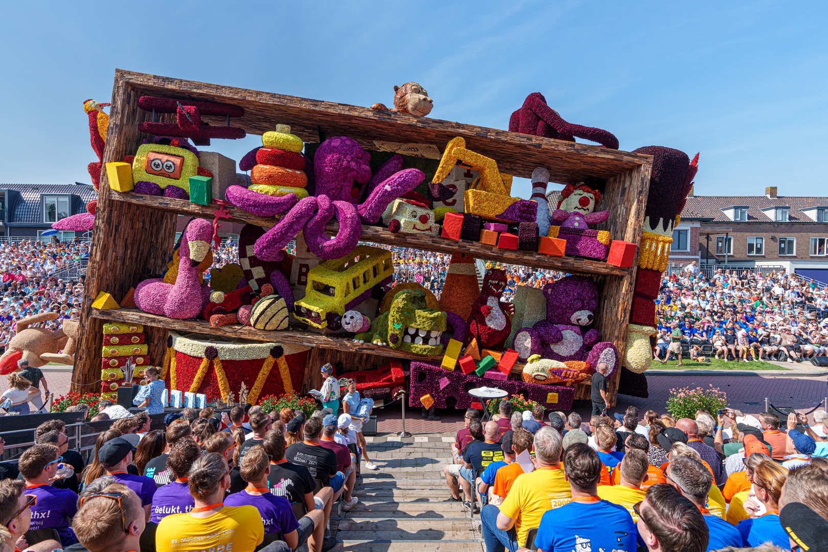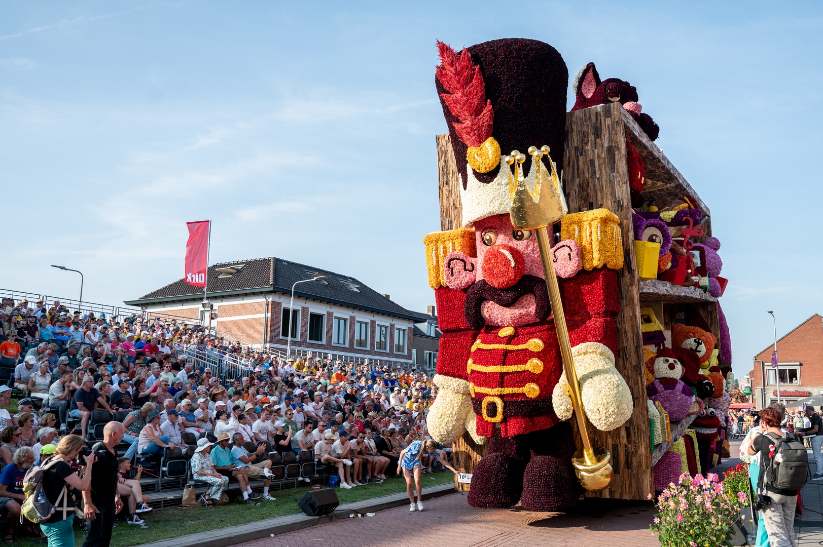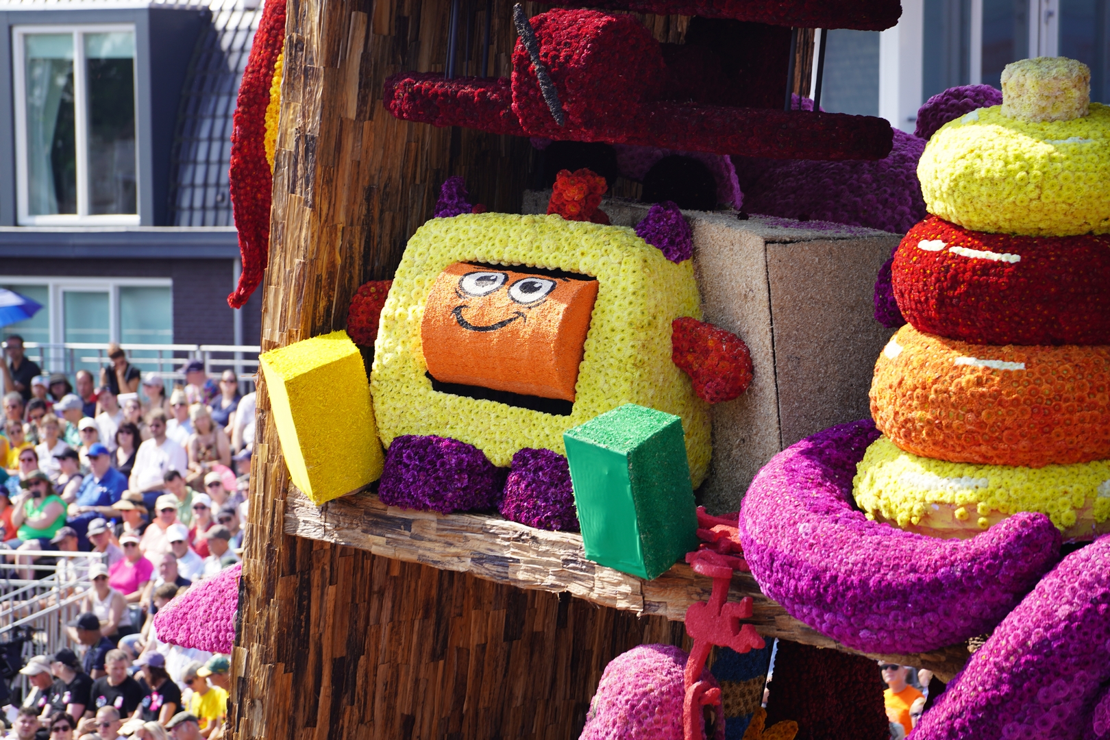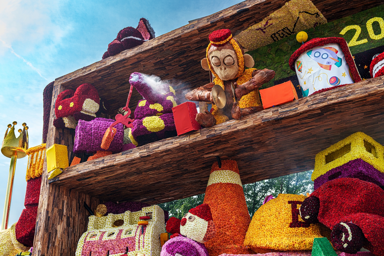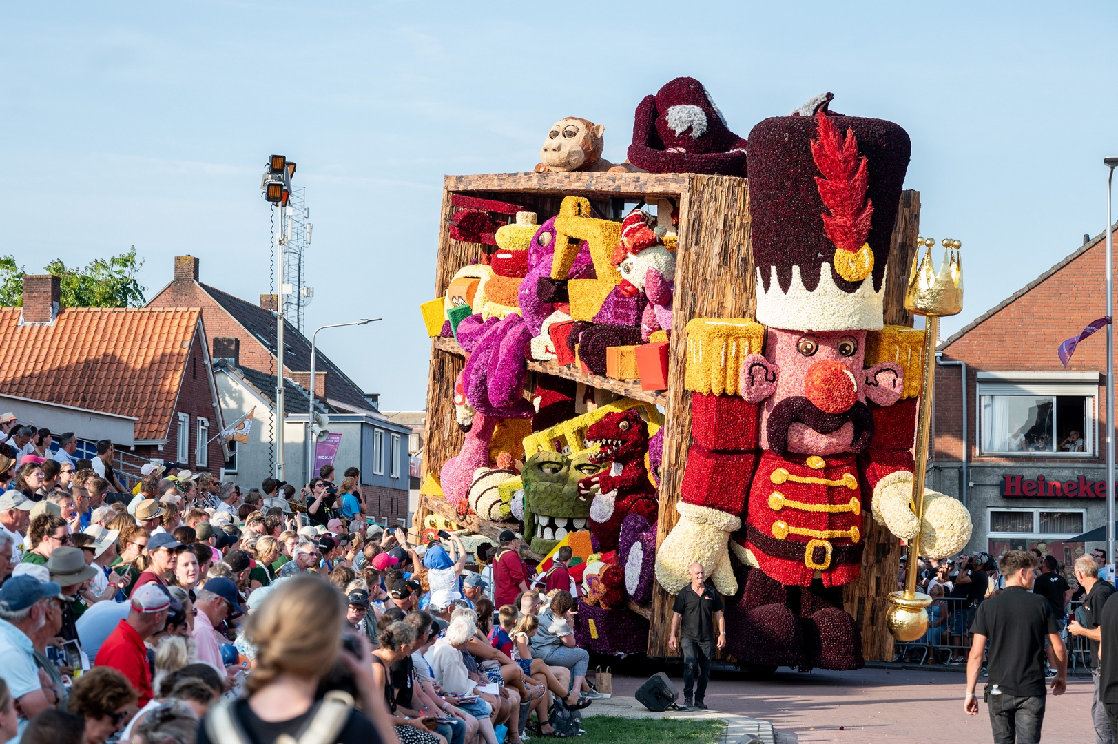 De kast is volledig volgepropt met mooie en grappig uitgewerkte stukken speelgoed. Alles is erg herkenbaar. De hoed van de paleiswacht, de passagiers van de bus, de waterkraan bij de brandweerauto, het waterpistool (met waterstraal), het klappergebit, de kassa. Ieder stuk speelgoed is leuk om te zien en alles beweegt.