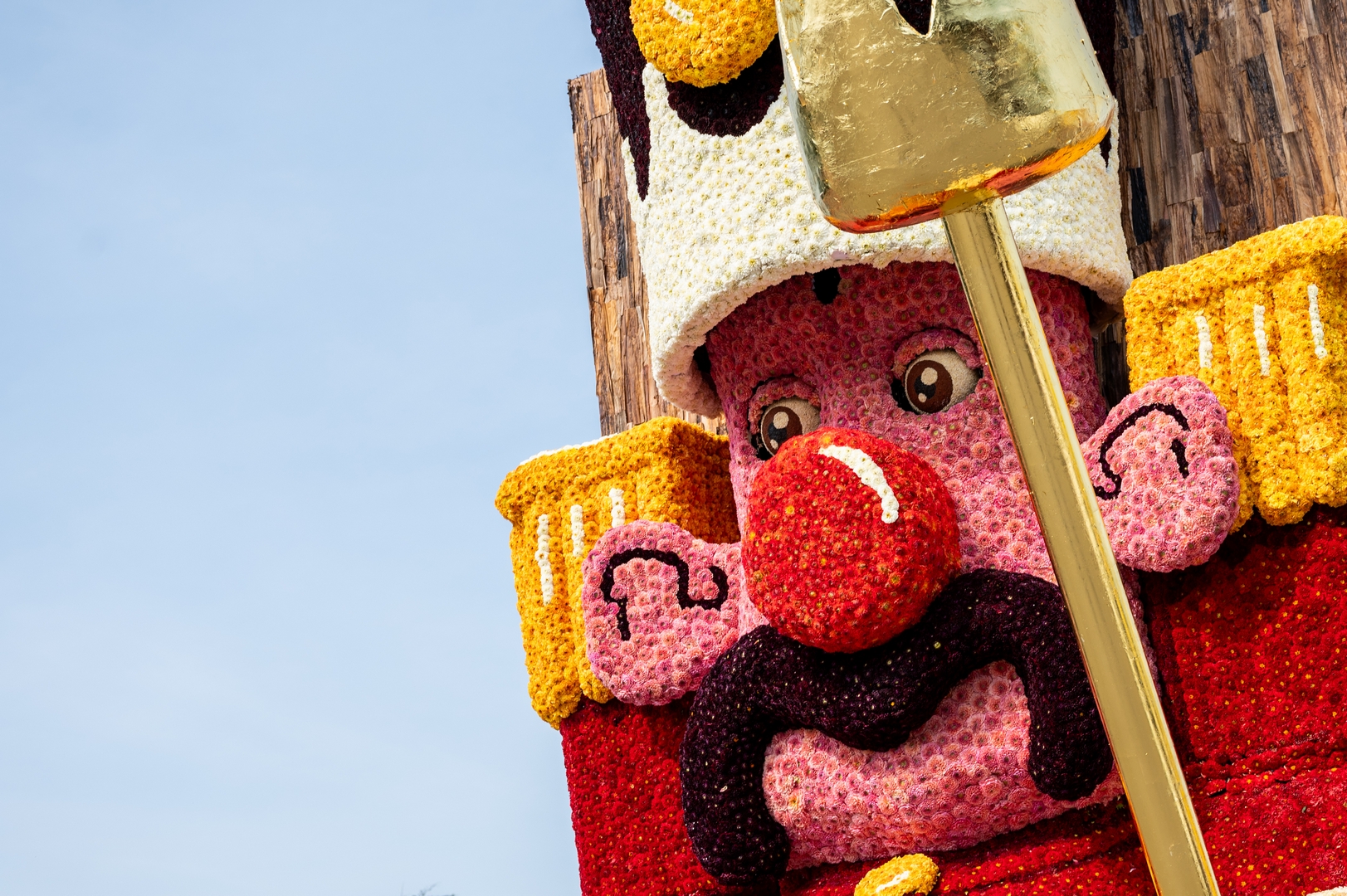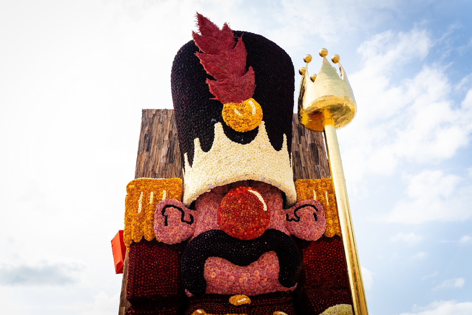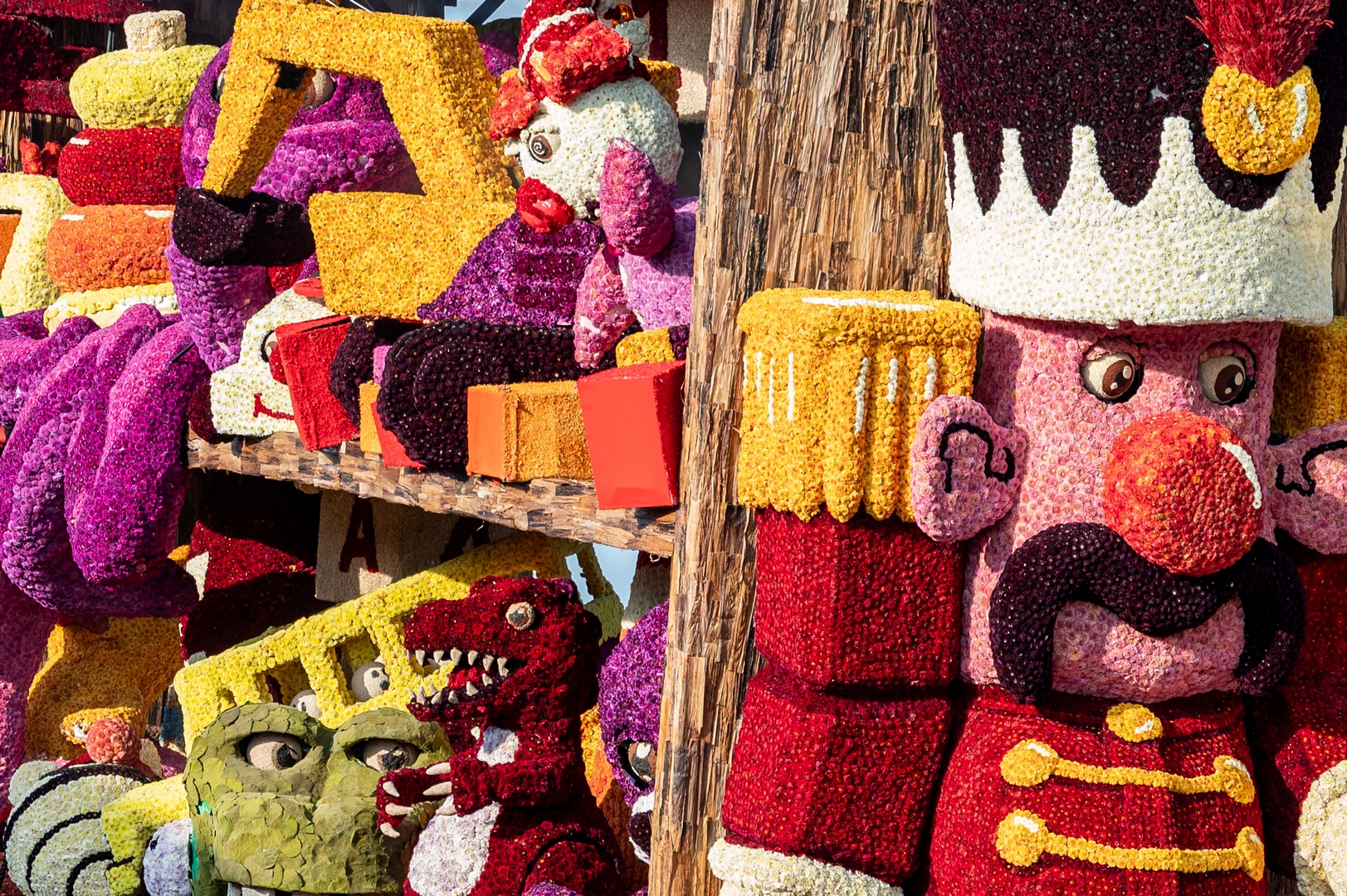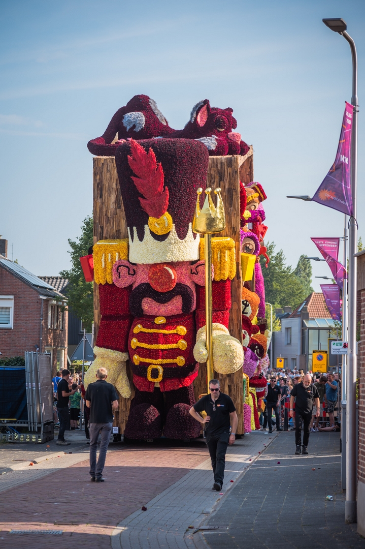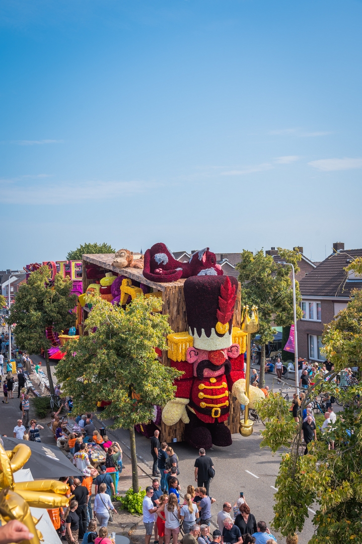 Aan de voorkant lijkt een soldaat te zijn weggelopen uit het ballet De Notenkraker op muziek van Tsjaikovski. In dat ballet komt het speelgoed ‘s nachts tot leven en het is de notenkraker die het speelgoed aanstuurt. In Speelgoedleven is de notenkraker ook de bepalende figuur, want als hij ontwaakt komt de rest met de muziek tot leven. Alleen is het hier geen klassiek stuk, maar een concert van speelgoedgeluiden met gepiep en geknor. De geluiden en de vormen gaan goed samen.