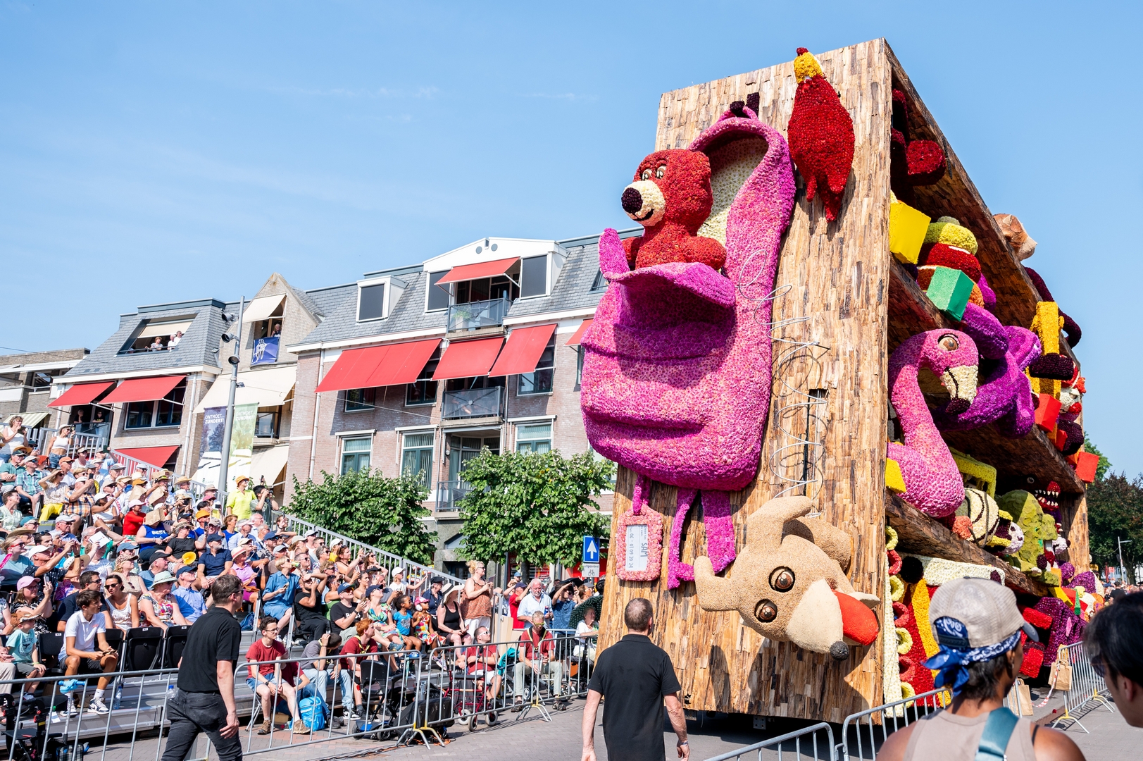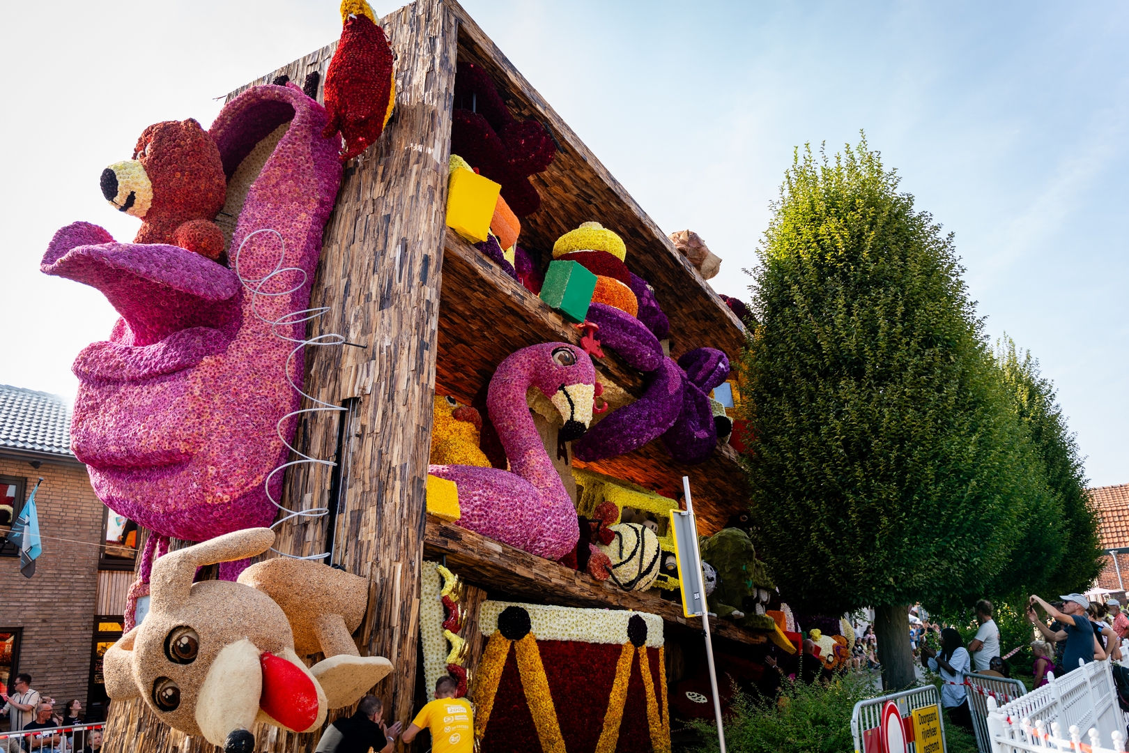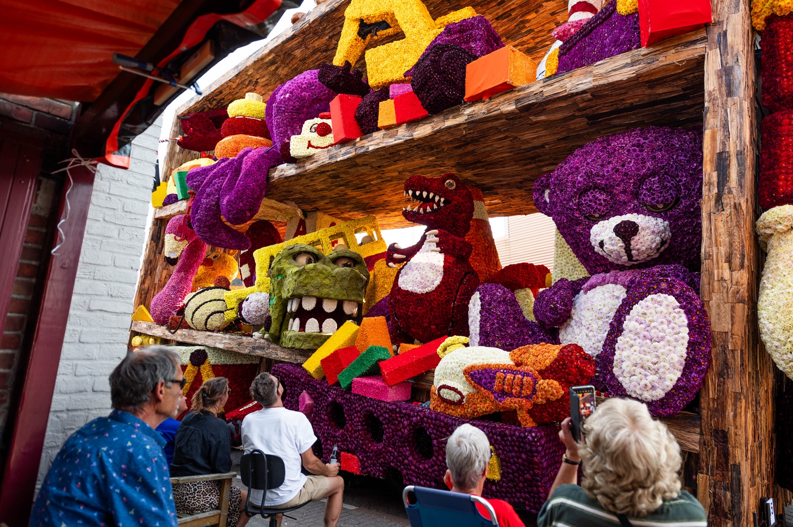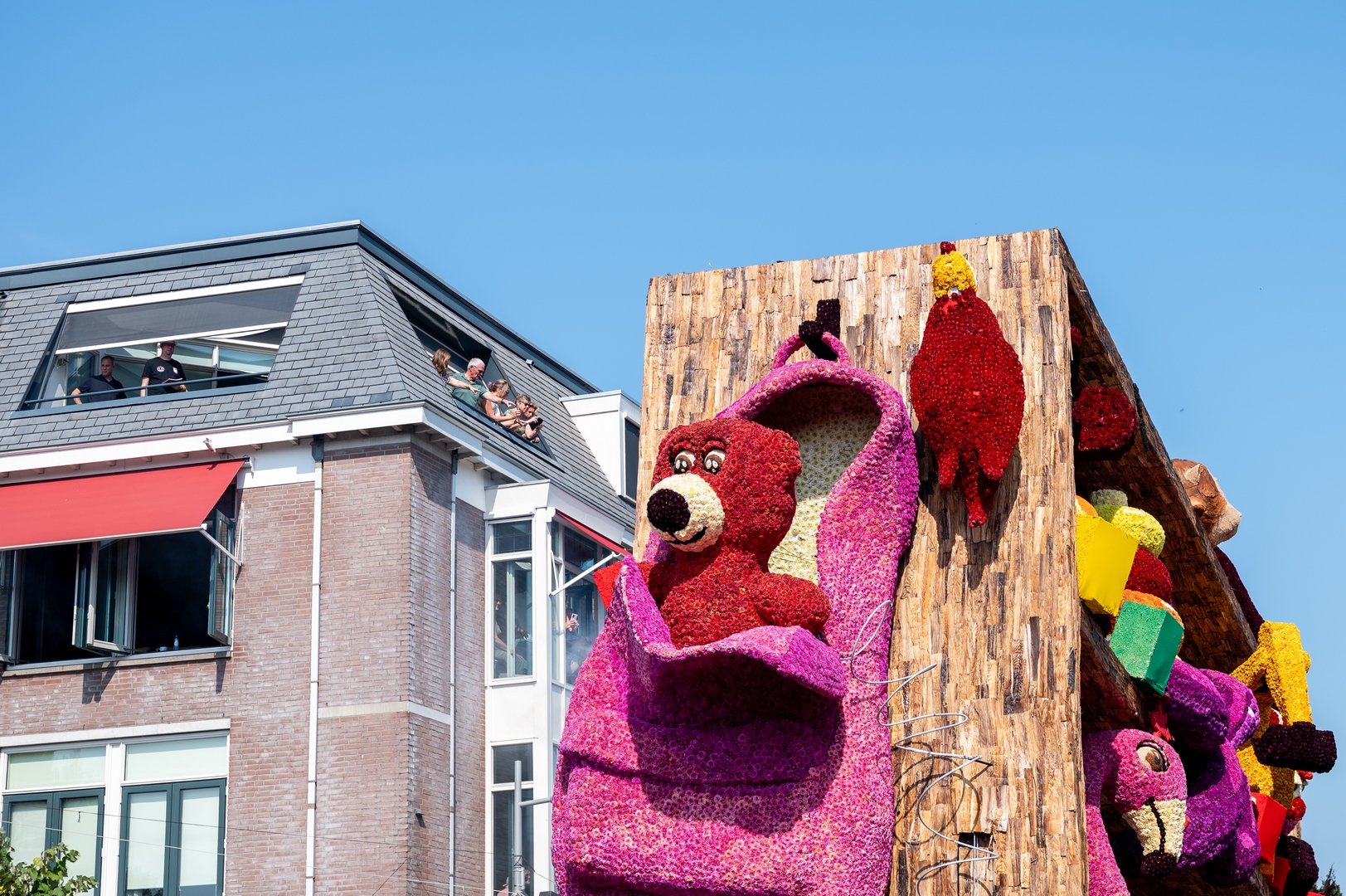 Het is knap hoe het publiek naar de kast wordt getrokken doordat de figuren het publiek aan lijken te kijken: de dino, beer, knuffelhond, aap en flamingo, zelfs de telescoop kijkt je aan.