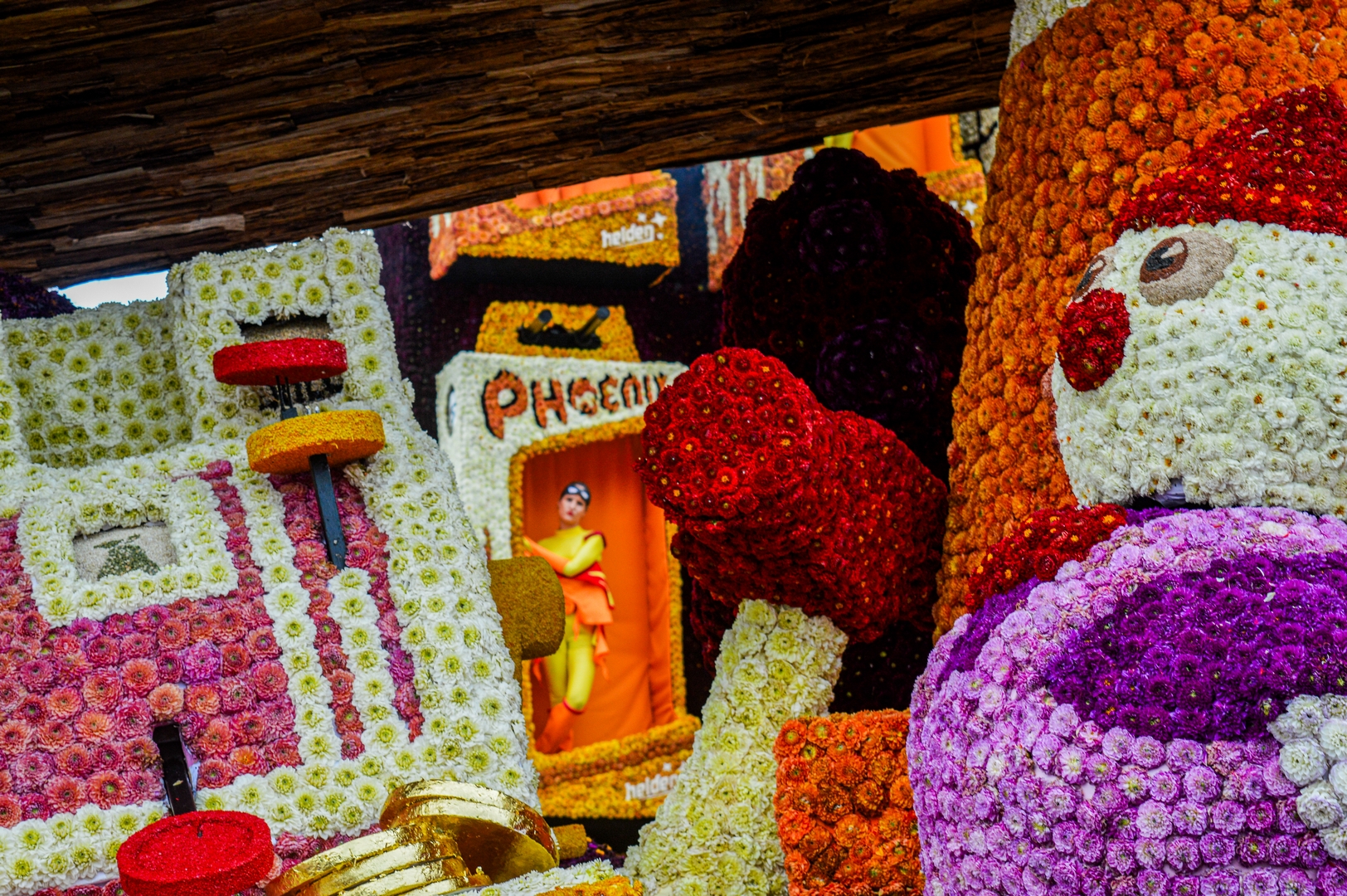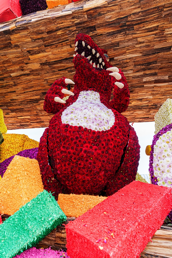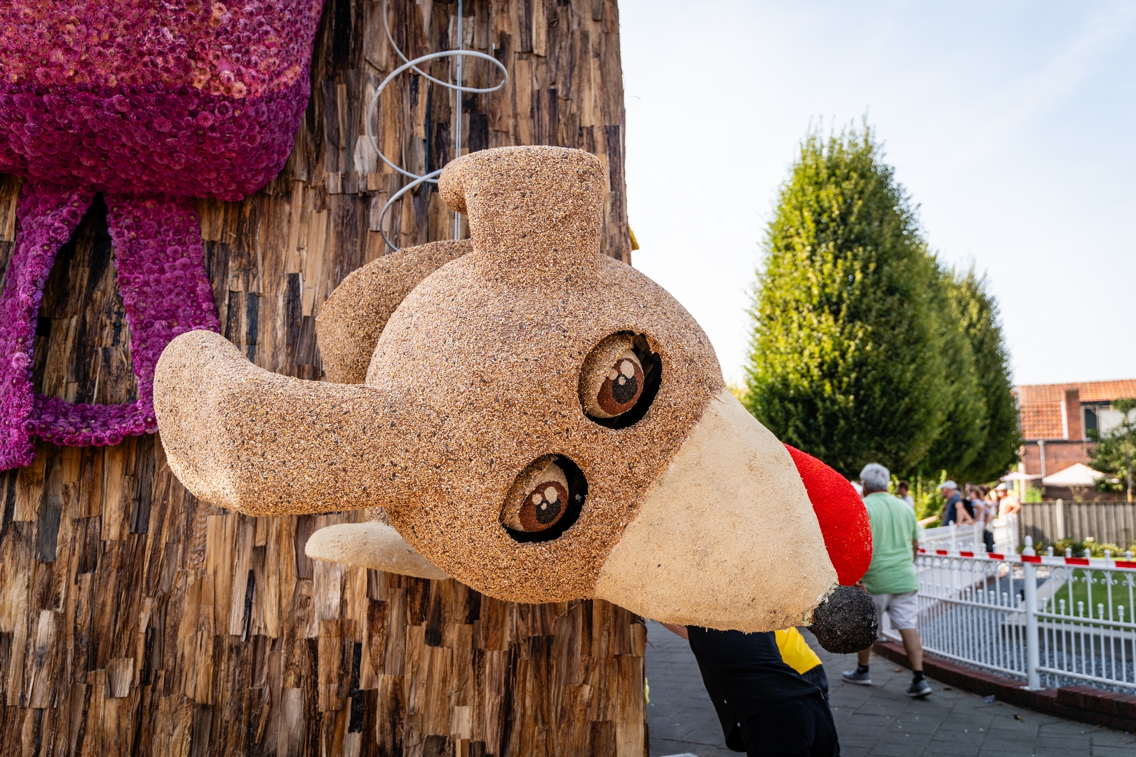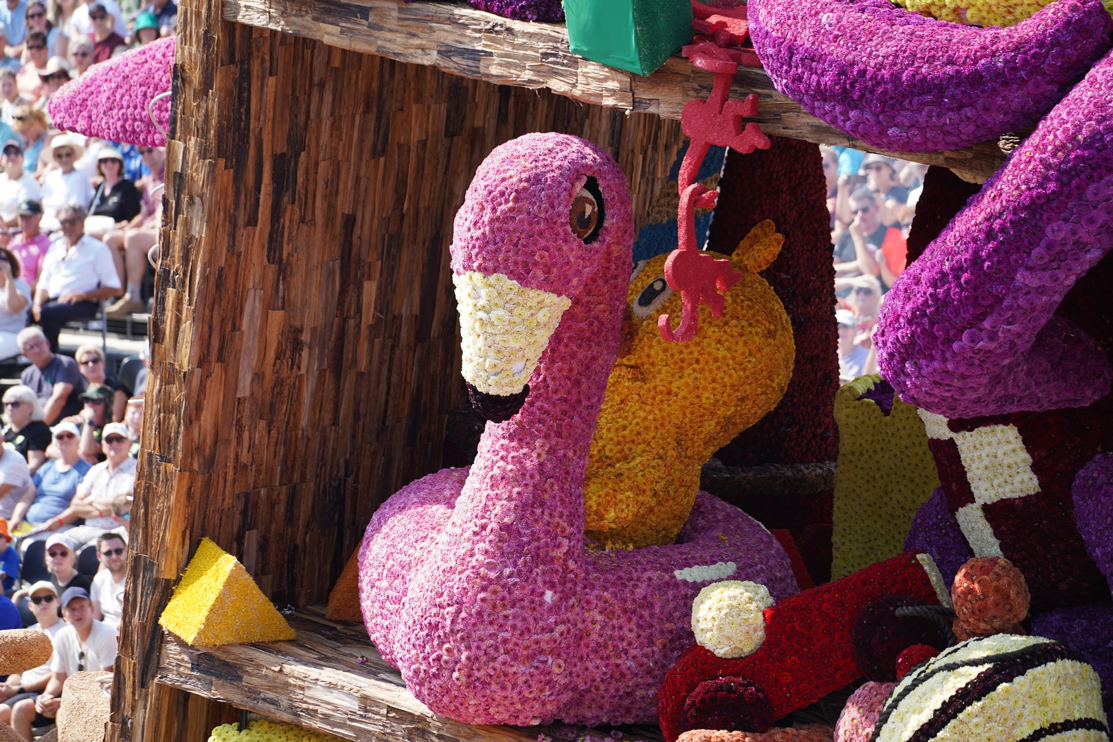 Het is knap hoe het publiek naar de kast wordt getrokken doordat de figuren het publiek aan lijken te kijken: de dino, beer, knuffelhond, aap en flamingo, zelfs de telescoop kijkt je aan.
