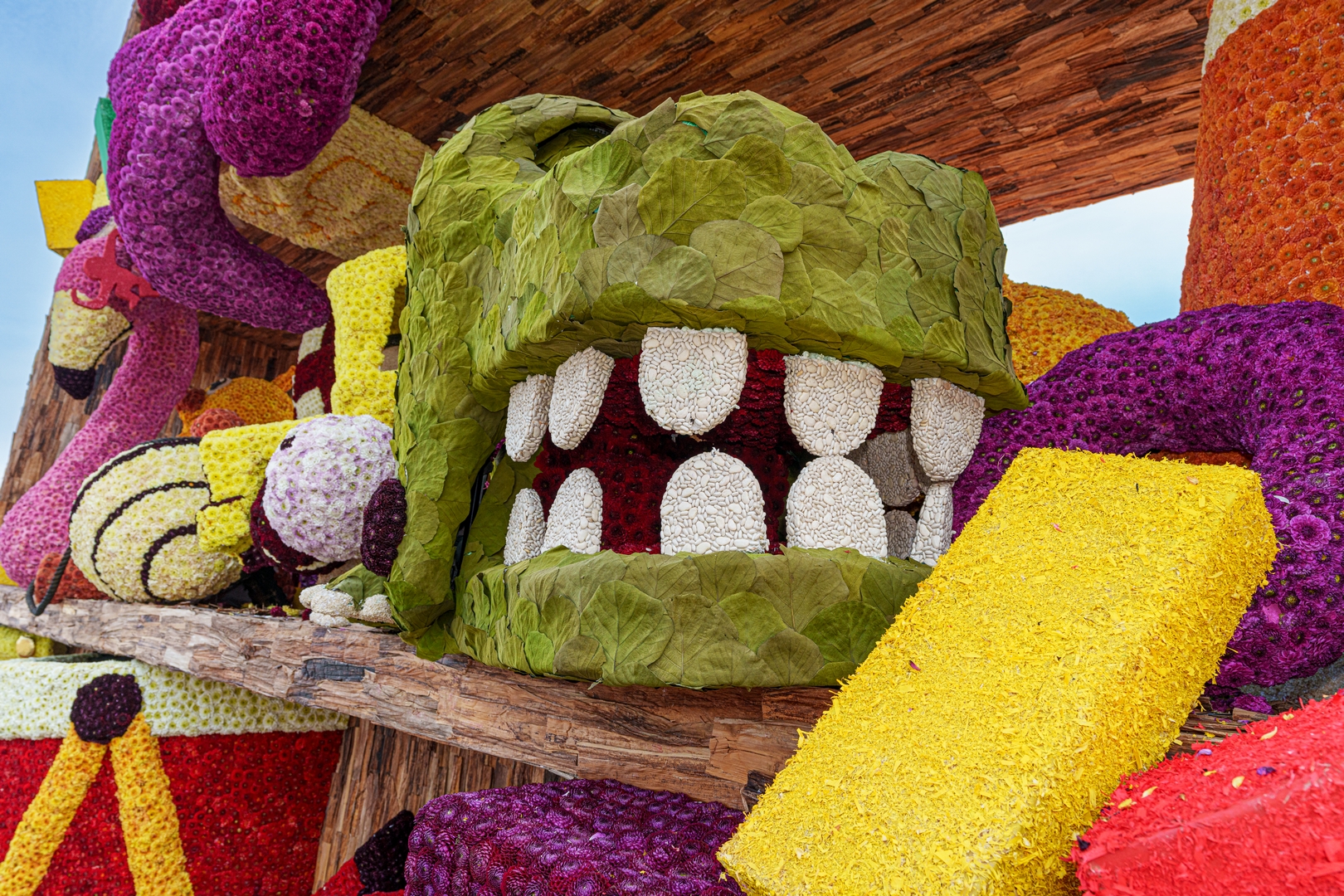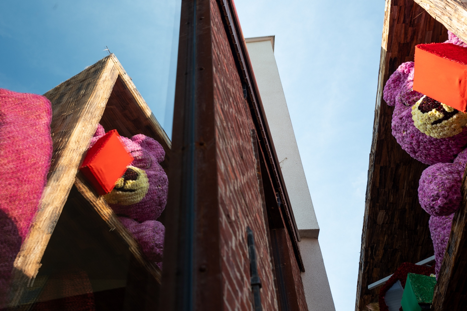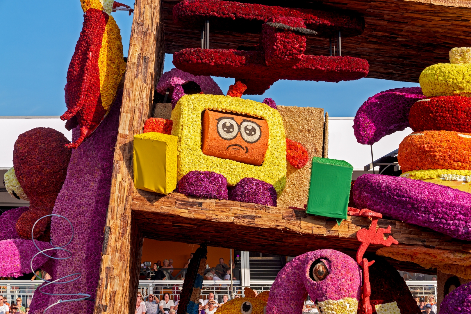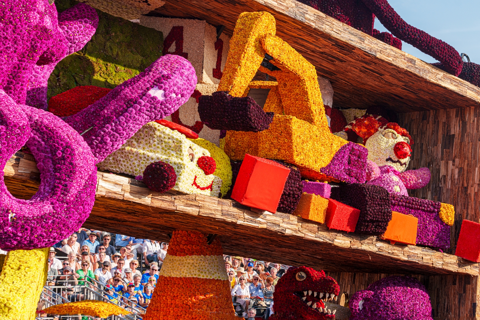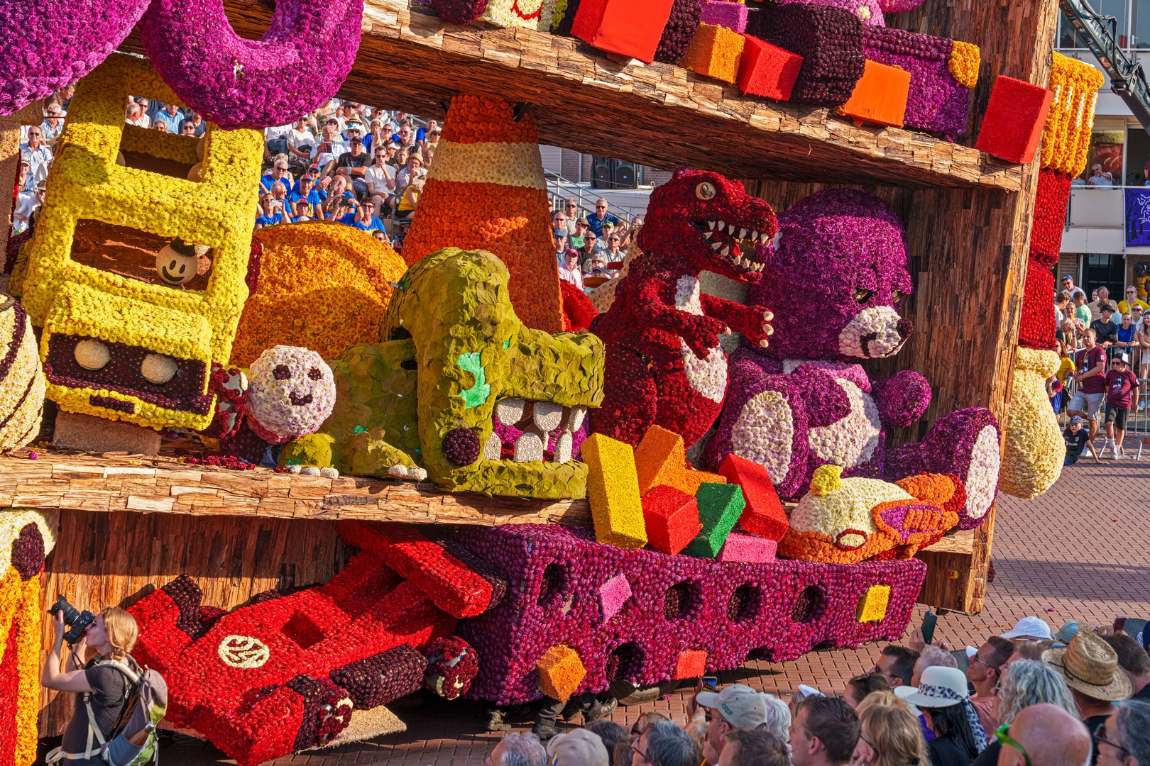 De kast staat schuin, wat de ongeordende chaos versterkt. Je ziet de schuinte niet erg in de kast terug. Het speelgoed schuift bijvoorbeeld niet naar het laagste punt om daar in de verdrukking te komen. Het is nu een groot blok van een wagen die massief aanvoelt.