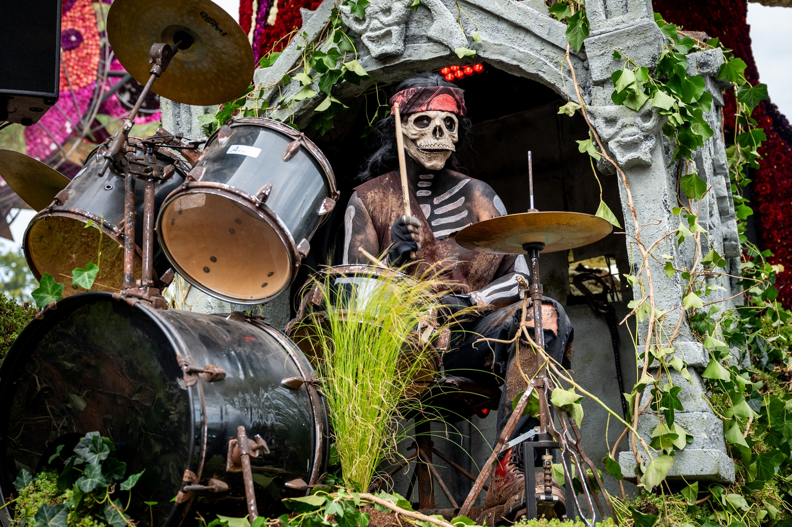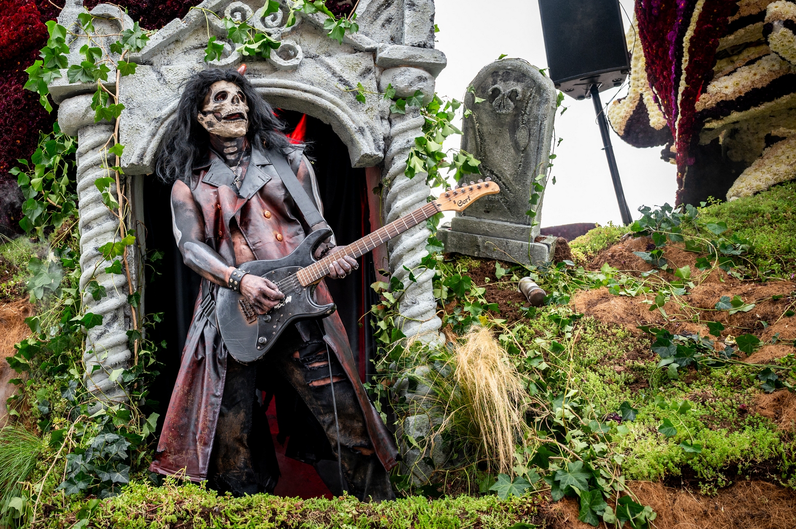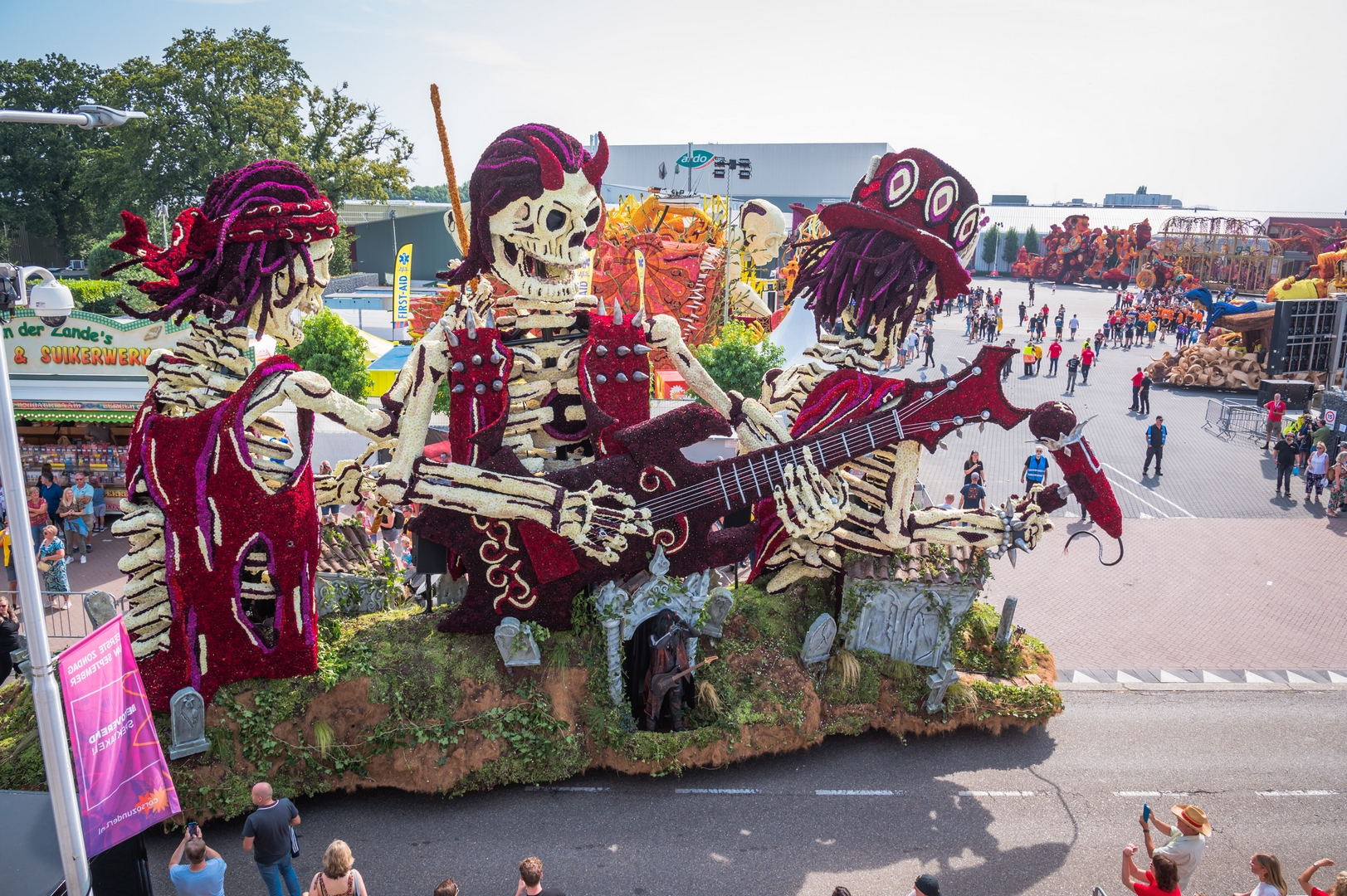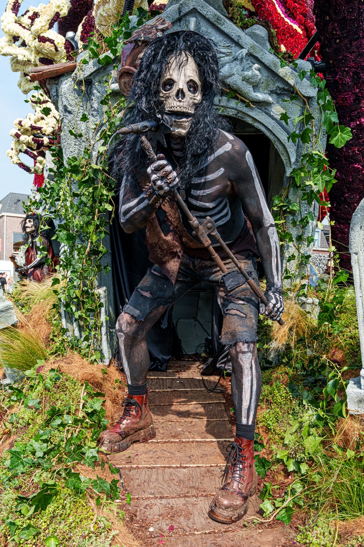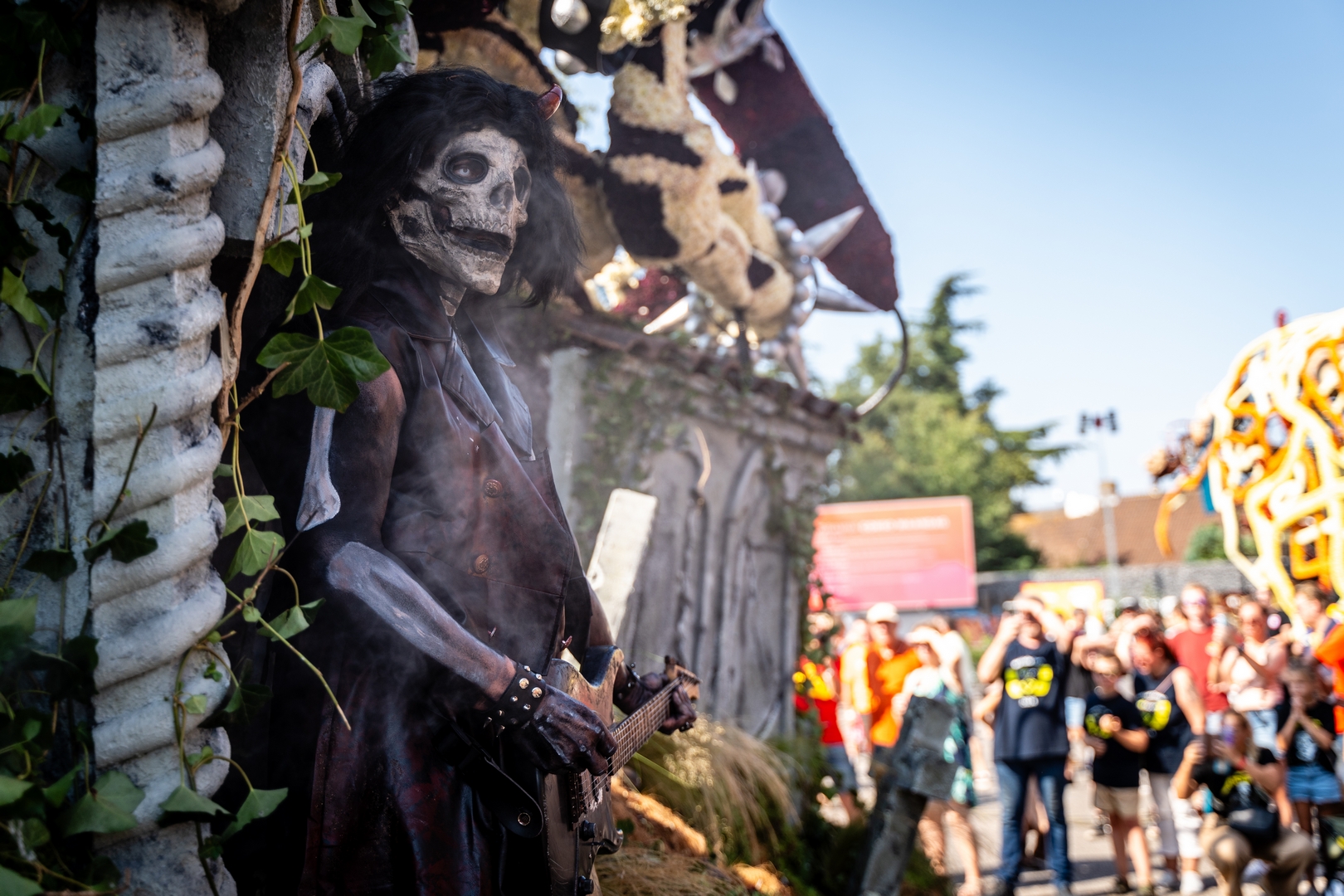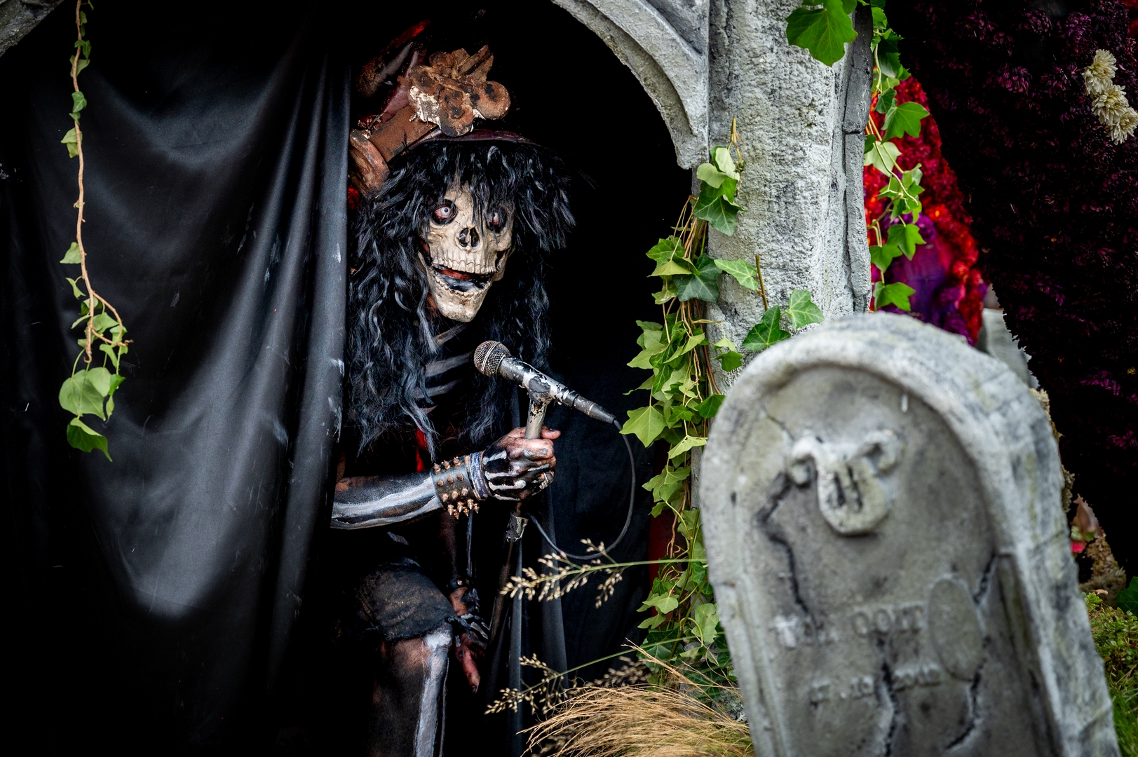 De wagen heeft een frisse en energieke uitstraling en er zit humor in. Het thema is horror. Als je voor horror kiest, doe het dan vet en dat is hier gelukt. De reusachtige geraamtes met hun heavy metal studs, lange haren, hoedjes, instrumenten en zelfs twee duivelse hoorntjes brengen meteen het rock gevoel over. Eigenlijk meer hardrock of zelfs heavy metal of deathmetal. Ook door de aanwezigheid van de grafstenen. De vraag komt op naar wiens geraamtes we kijken. Als dit een verwijzing is naar bepaalde artiesten, dan is dat niet duidelijk uit het beeld op te maken.