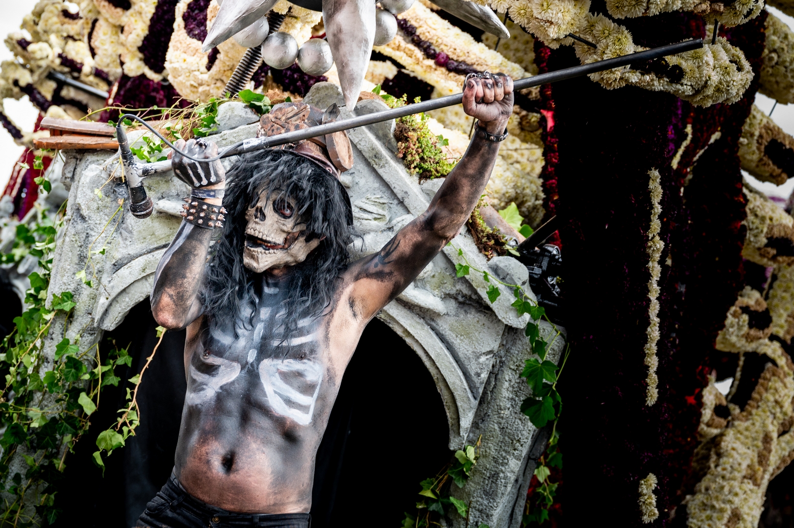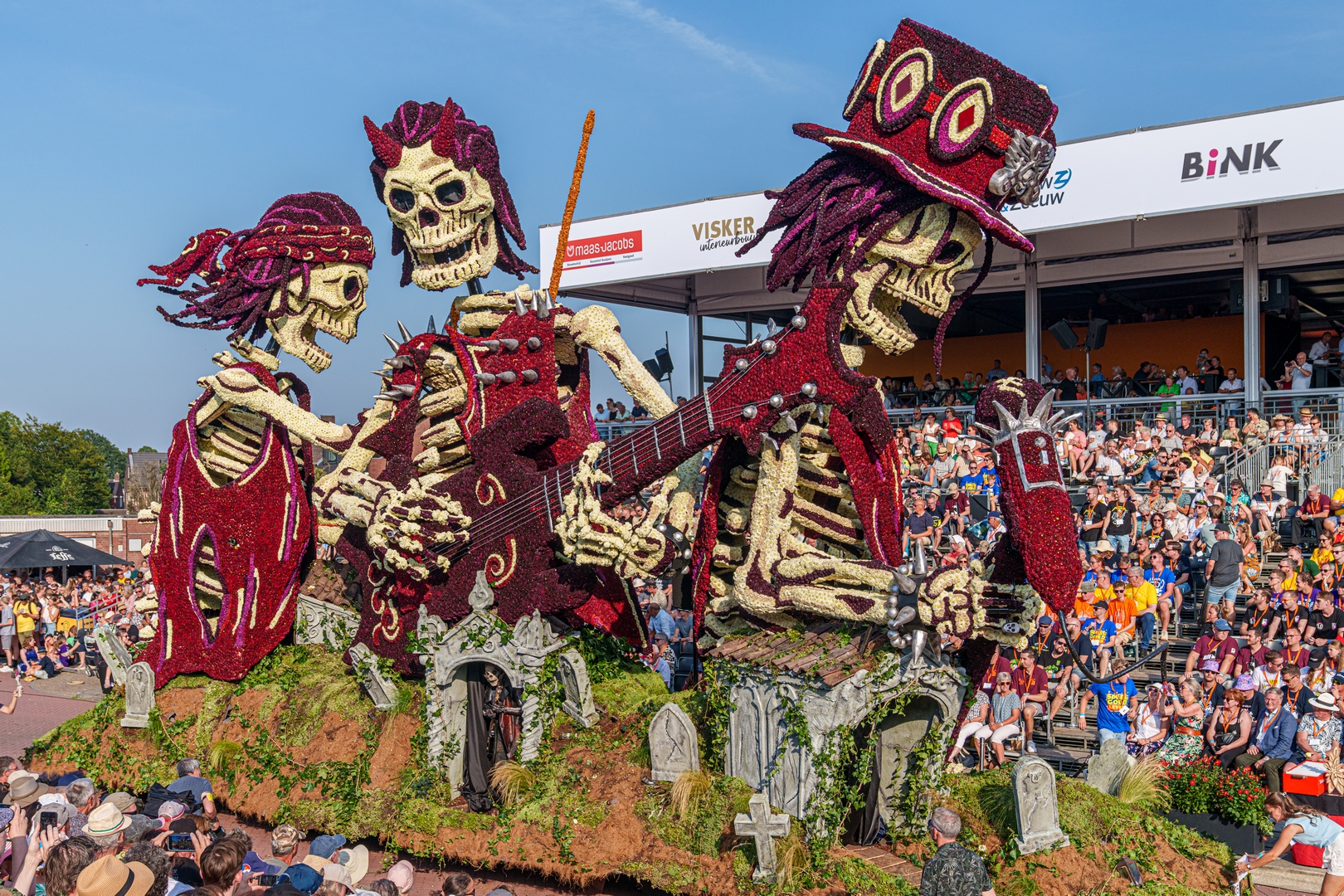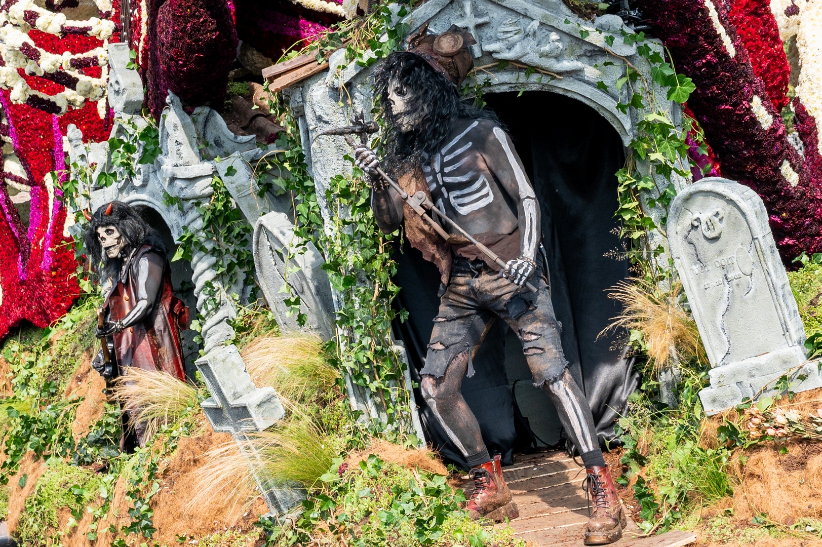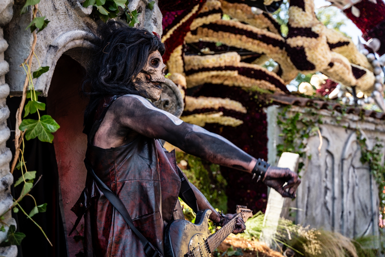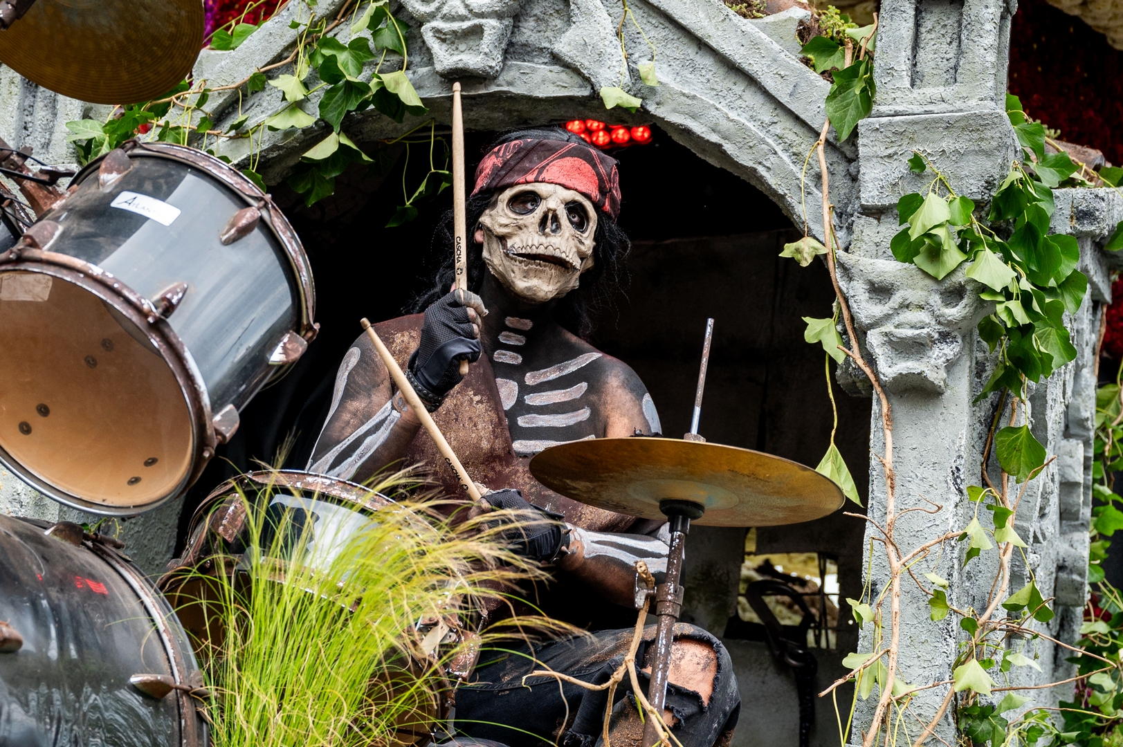 De wagen heeft een frisse en energieke uitstraling en er zit humor in. Het thema is horror. Als je voor horror kiest, doe het dan vet en dat is hier gelukt. De reusachtige geraamtes met hun heavy metal studs, lange haren, hoedjes, instrumenten en zelfs twee duivelse hoorntjes brengen meteen het rock gevoel over. Eigenlijk meer hardrock of zelfs heavy metal of deathmetal. Ook door de aanwezigheid van de grafstenen. De vraag komt op naar wiens geraamtes we kijken. Als dit een verwijzing is naar bepaalde artiesten, dan is dat niet duidelijk uit het beeld op te maken.