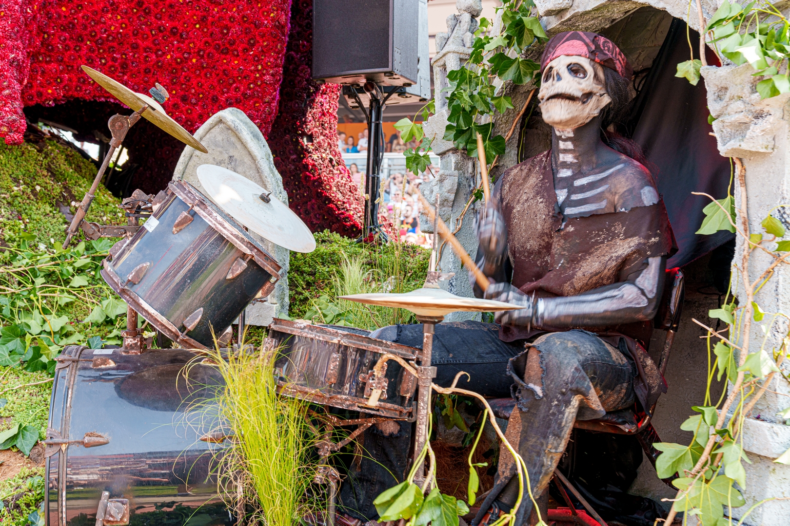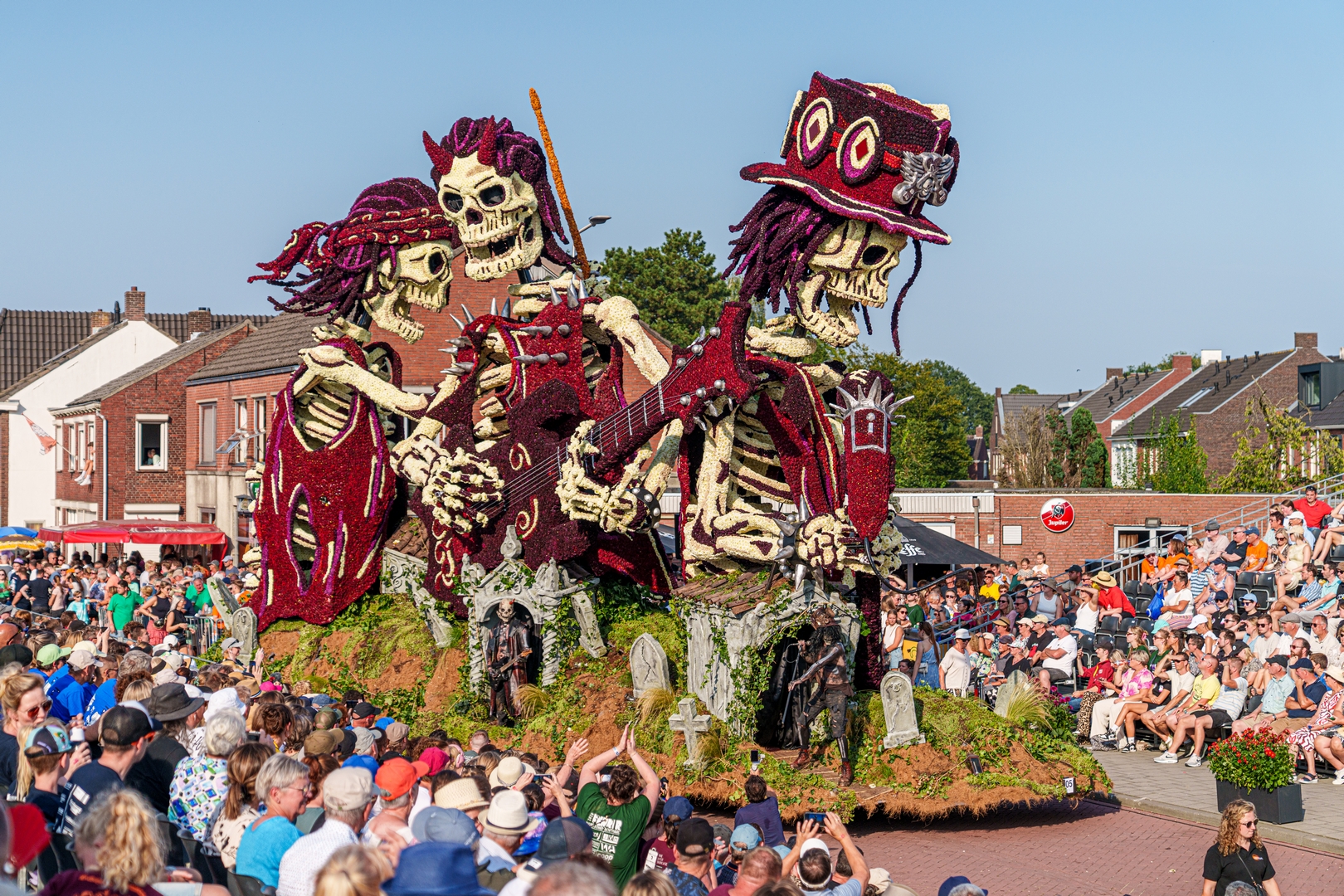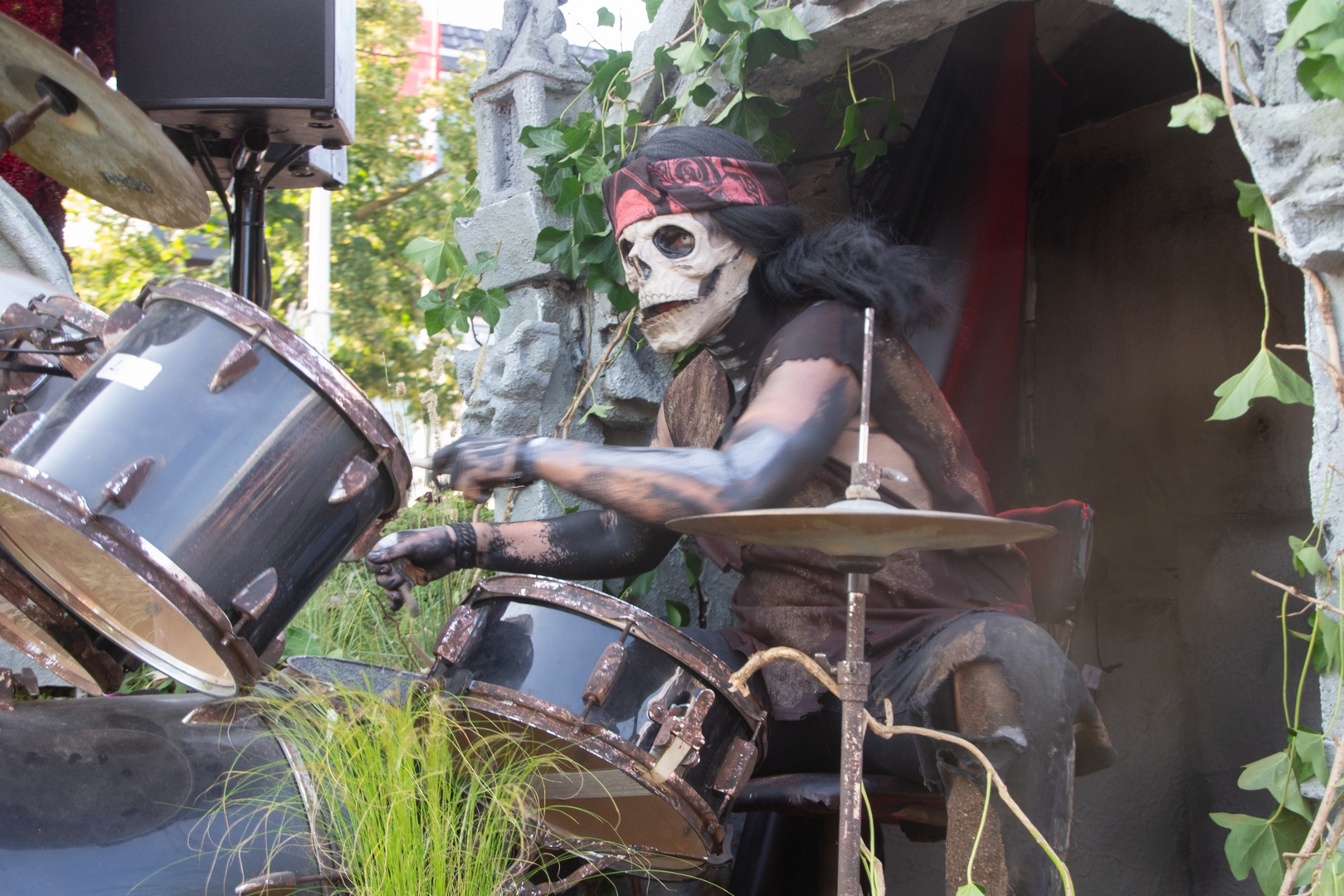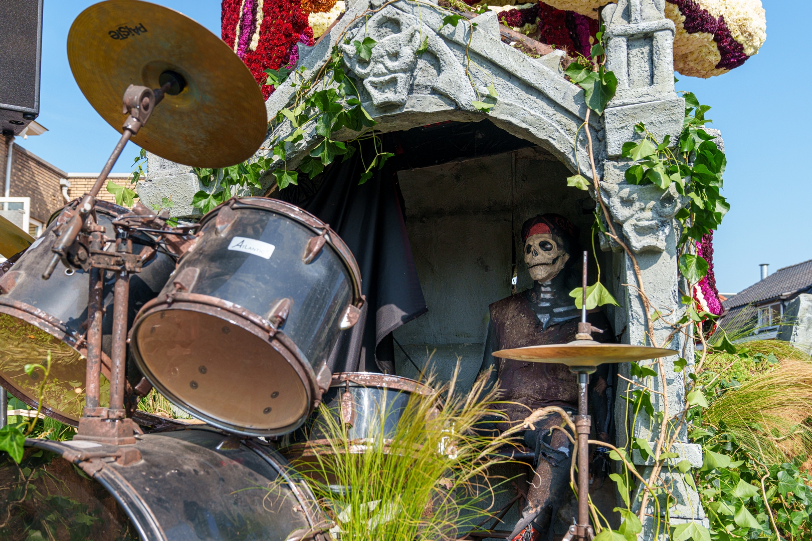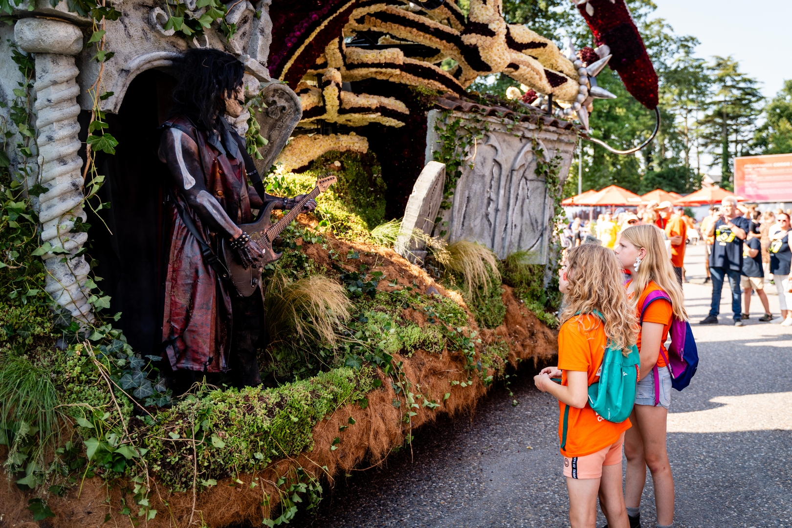 De wagen heeft een frisse en energieke uitstraling en er zit humor in. Het thema is horror. Als je voor horror kiest, doe het dan vet en dat is hier gelukt. De reusachtige geraamtes met hun heavy metal studs, lange haren, hoedjes, instrumenten en zelfs twee duivelse hoorntjes brengen meteen het rock gevoel over. Eigenlijk meer hardrock of zelfs heavy metal of deathmetal. Ook door de aanwezigheid van de grafstenen. De vraag komt op naar wiens geraamtes we kijken. Als dit een verwijzing is naar bepaalde artiesten, dan is dat niet duidelijk uit het beeld op te maken.