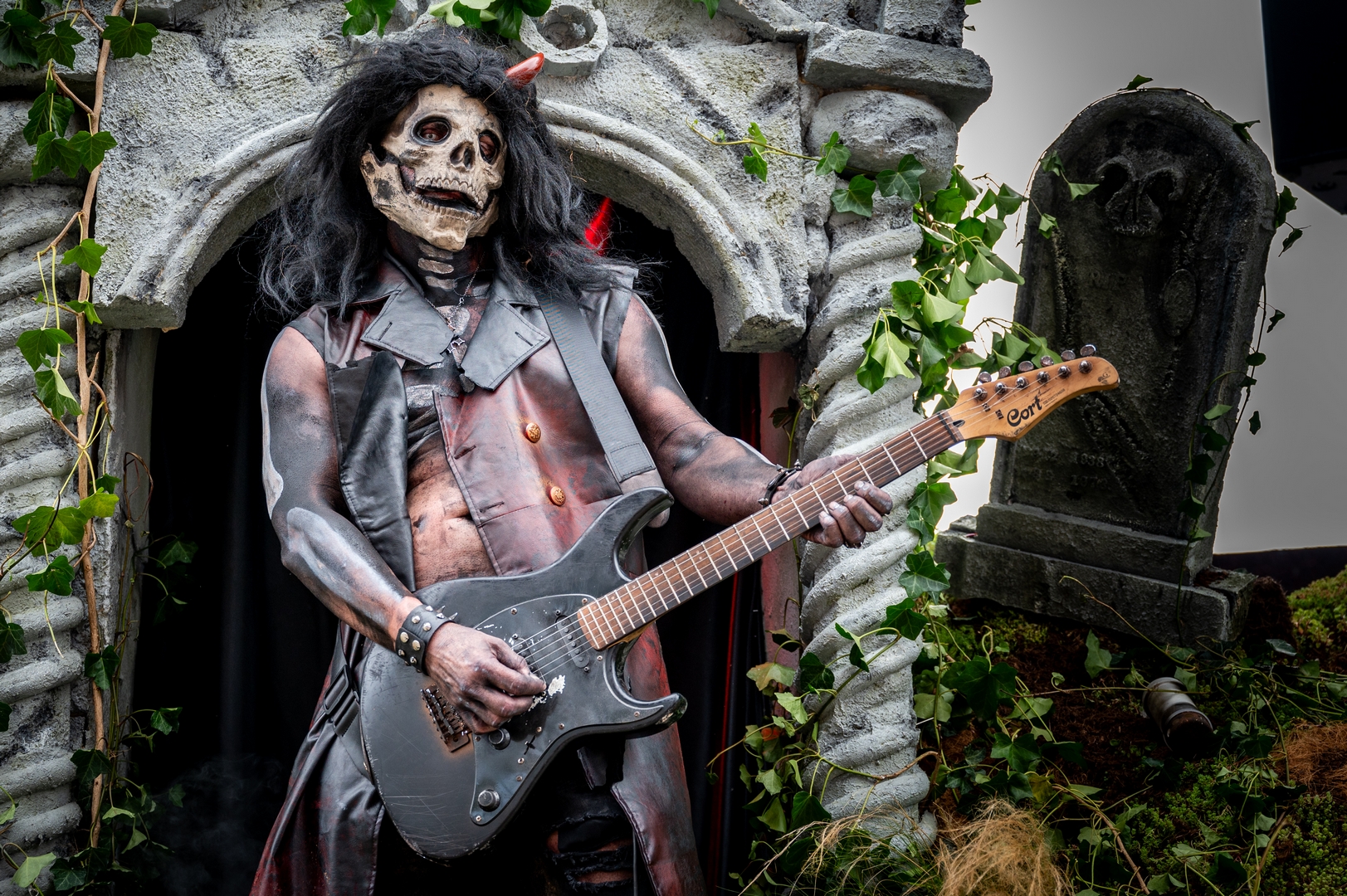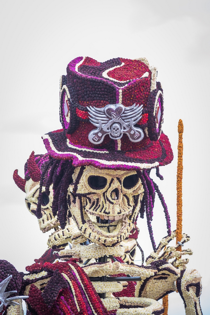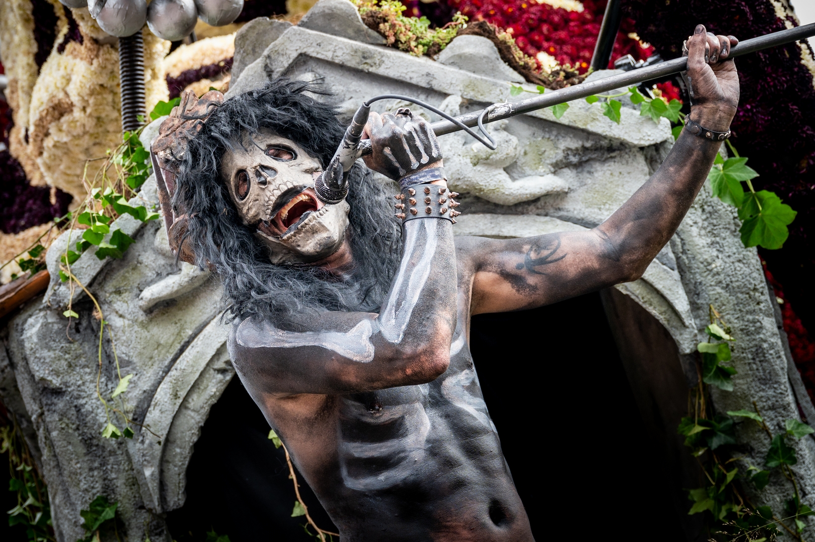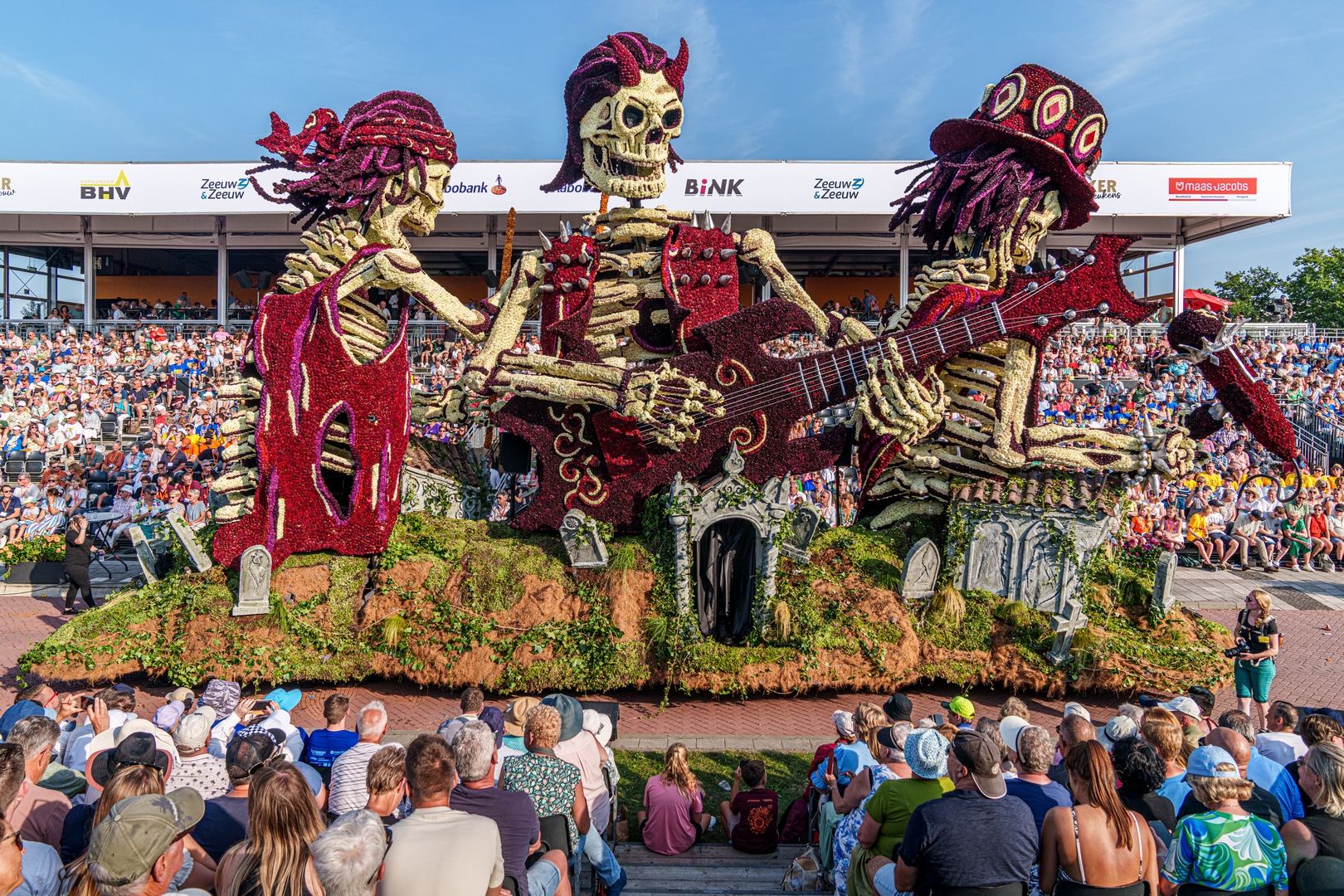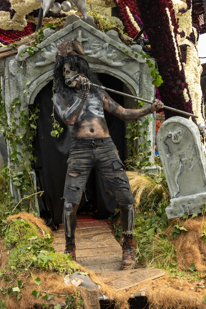 De wagen heeft een frisse en energieke uitstraling en er zit humor in. Het thema is horror. Als je voor horror kiest, doe het dan vet en dat is hier gelukt. De reusachtige geraamtes met hun heavy metal studs, lange haren, hoedjes, instrumenten en zelfs twee duivelse hoorntjes brengen meteen het rock gevoel over. Eigenlijk meer hardrock of zelfs heavy metal of deathmetal. Ook door de aanwezigheid van de grafstenen. De vraag komt op naar wiens geraamtes we kijken. Als dit een verwijzing is naar bepaalde artiesten, dan is dat niet duidelijk uit het beeld op te maken.