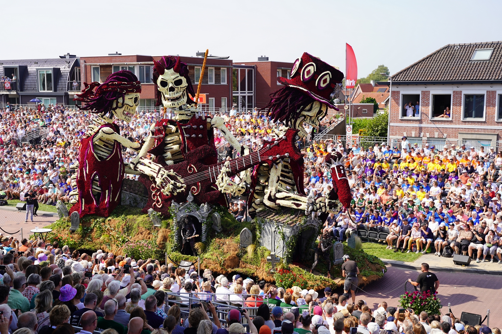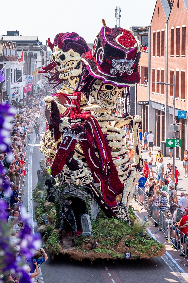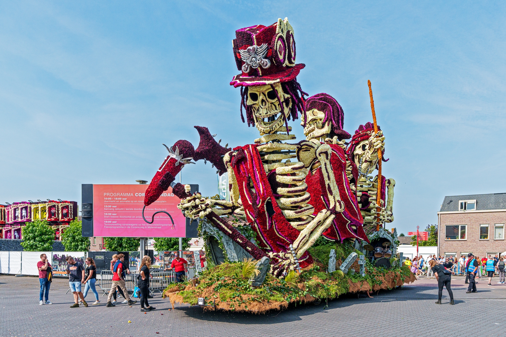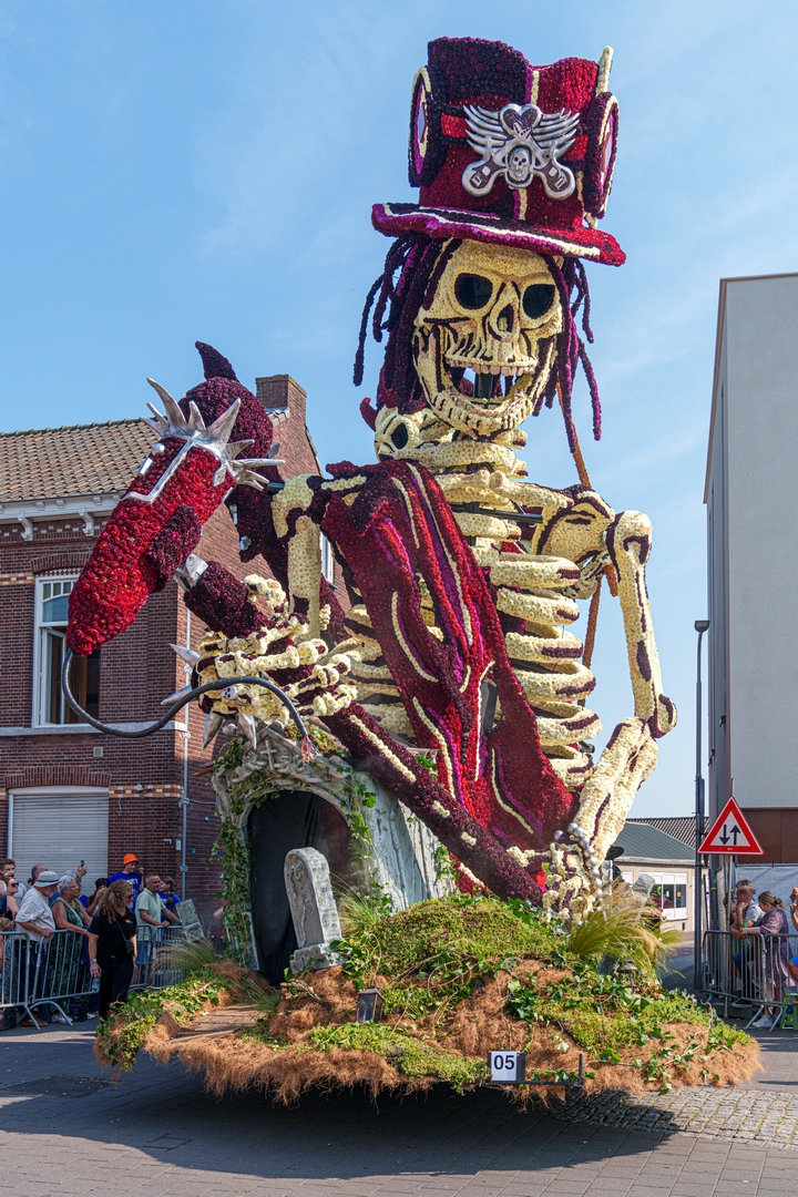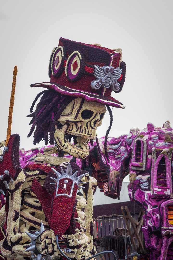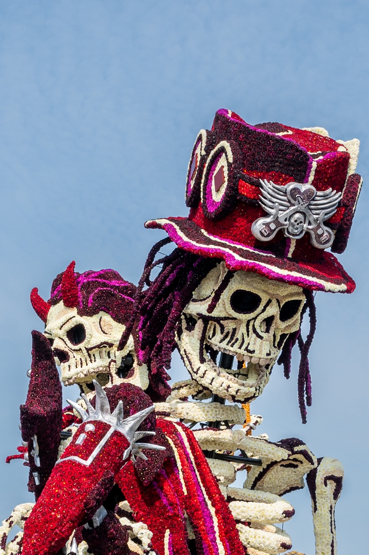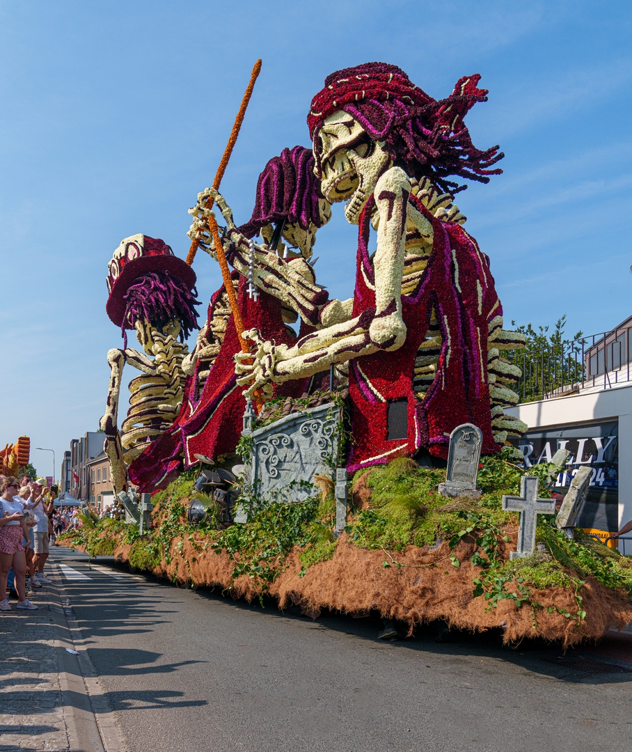 De wagen heeft een frisse en energieke uitstraling en er zit humor in. Het thema is horror. Als je voor horror kiest, doe het dan vet en dat is hier gelukt. De reusachtige geraamtes met hun heavy metal studs, lange haren, hoedjes, instrumenten en zelfs twee duivelse hoorntjes brengen meteen het rock gevoel over. Eigenlijk meer hardrock of zelfs heavy metal of deathmetal. Ook door de aanwezigheid van de grafstenen. De vraag komt op naar wiens geraamtes we kijken. Als dit een verwijzing is naar bepaalde artiesten, dan is dat niet duidelijk uit het beeld op te maken.
