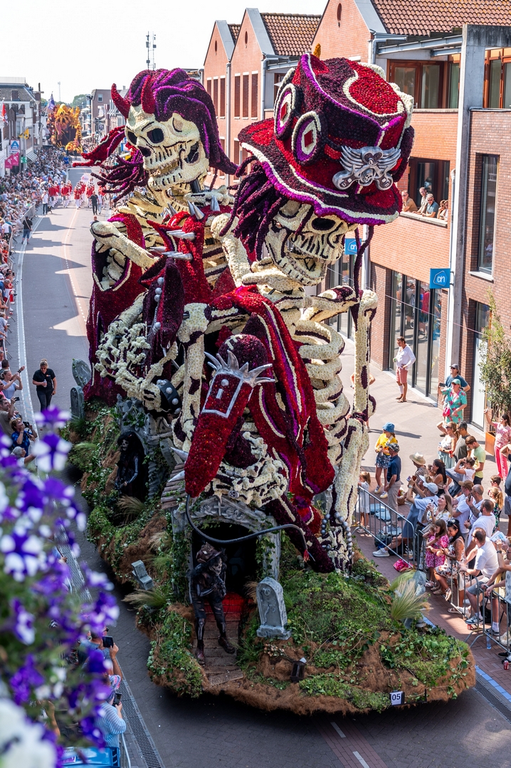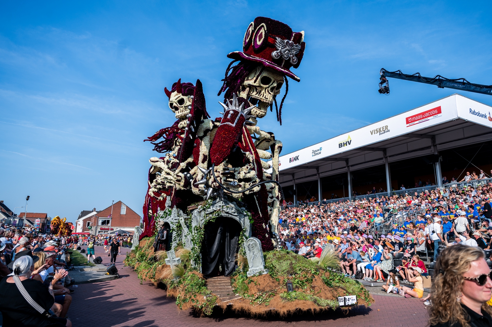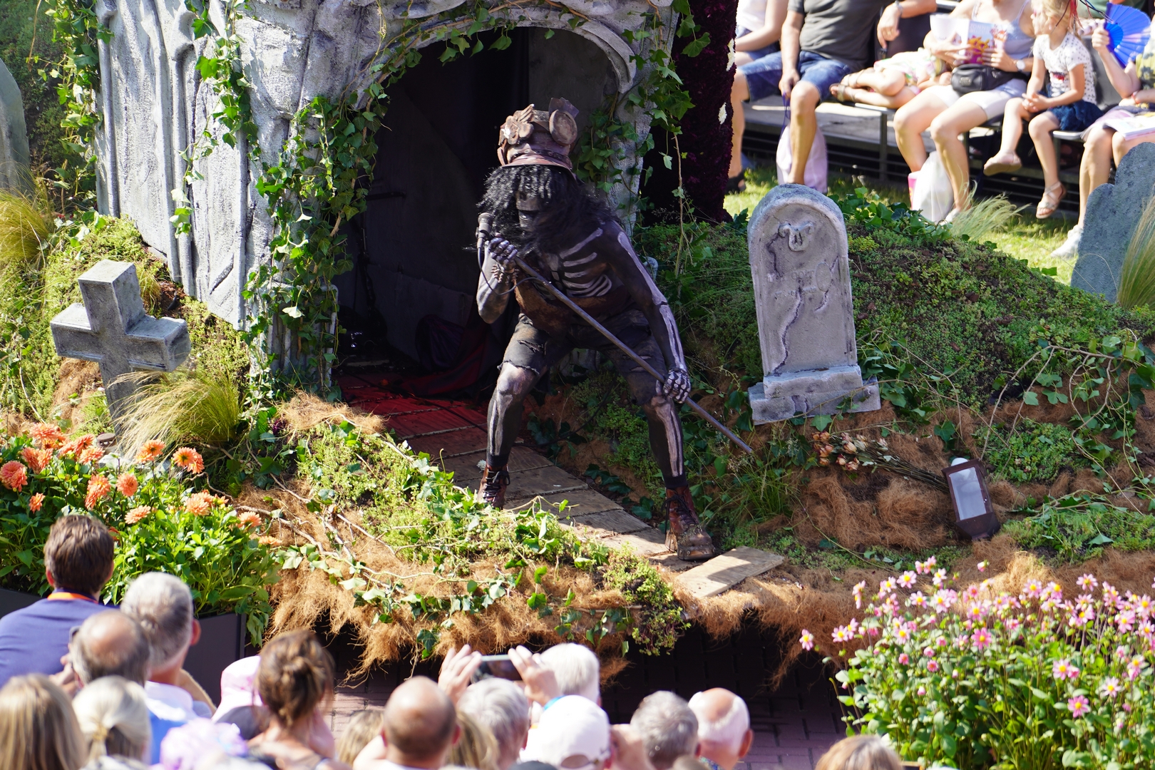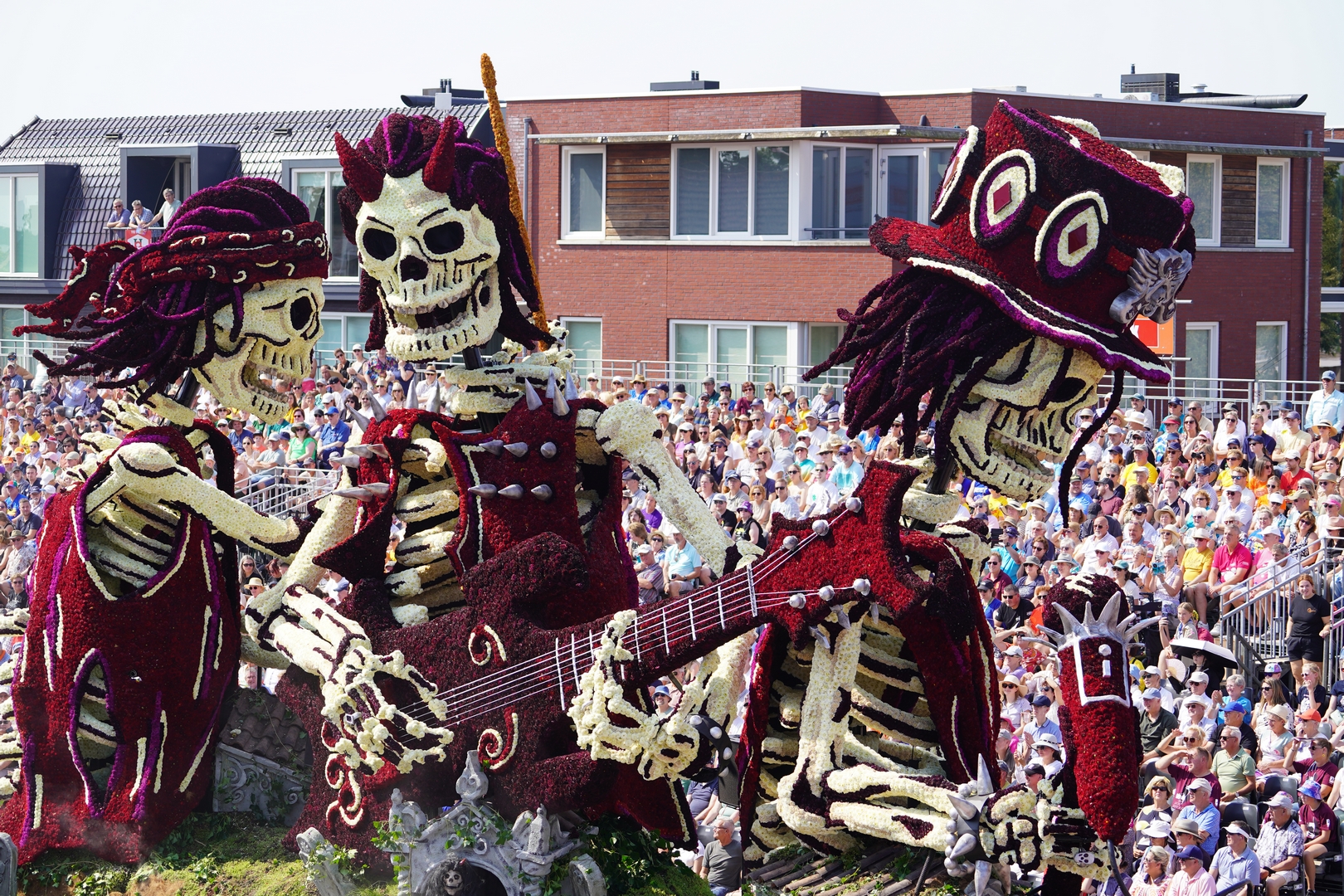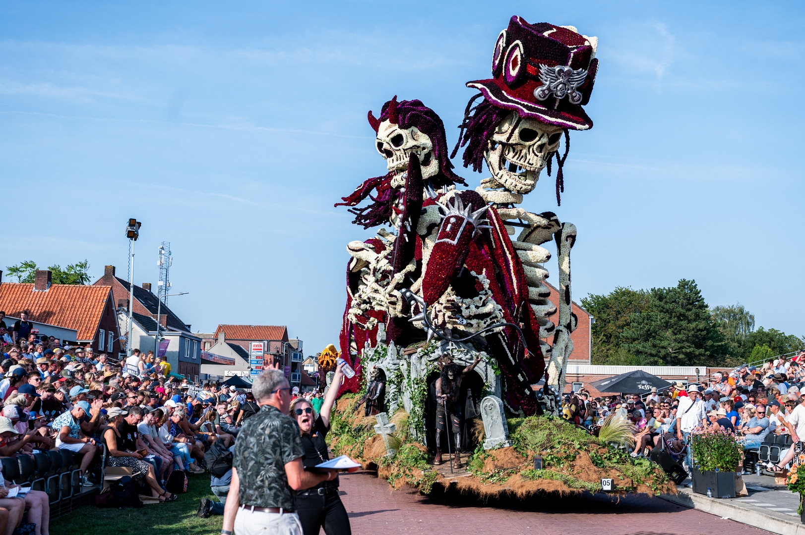 De wagen heeft een frisse en energieke uitstraling en er zit humor in. Het thema is horror. Als je voor horror kiest, doe het dan vet en dat is hier gelukt. De reusachtige geraamtes met hun heavy metal studs, lange haren, hoedjes, instrumenten en zelfs twee duivelse hoorntjes brengen meteen het rock gevoel over. Eigenlijk meer hardrock of zelfs heavy metal of deathmetal. Ook door de aanwezigheid van de grafstenen. De vraag komt op naar wiens geraamtes we kijken. Als dit een verwijzing is naar bepaalde artiesten, dan is dat niet duidelijk uit het beeld op te maken.