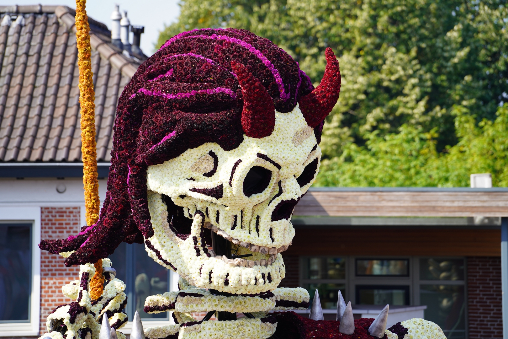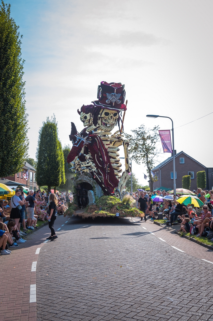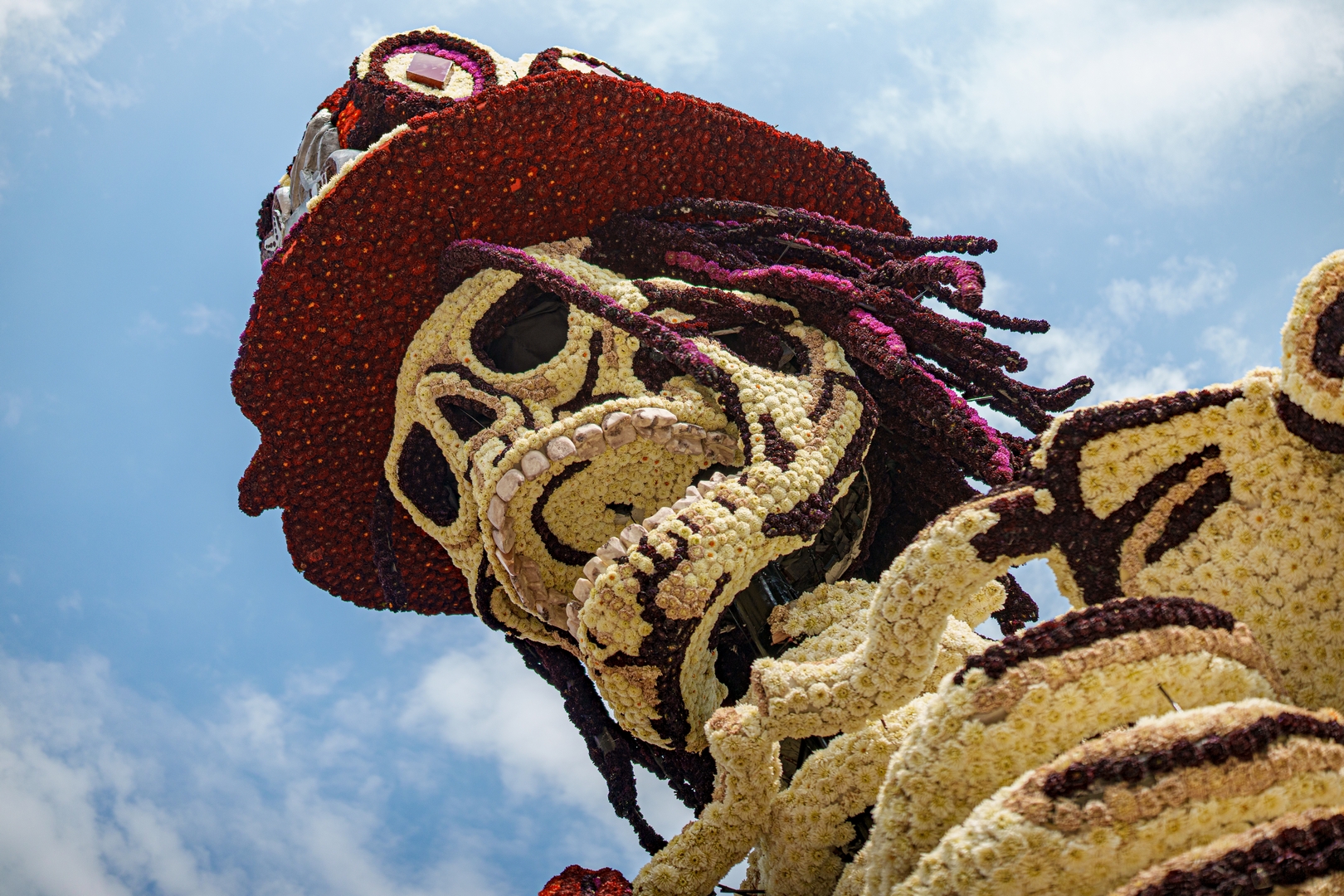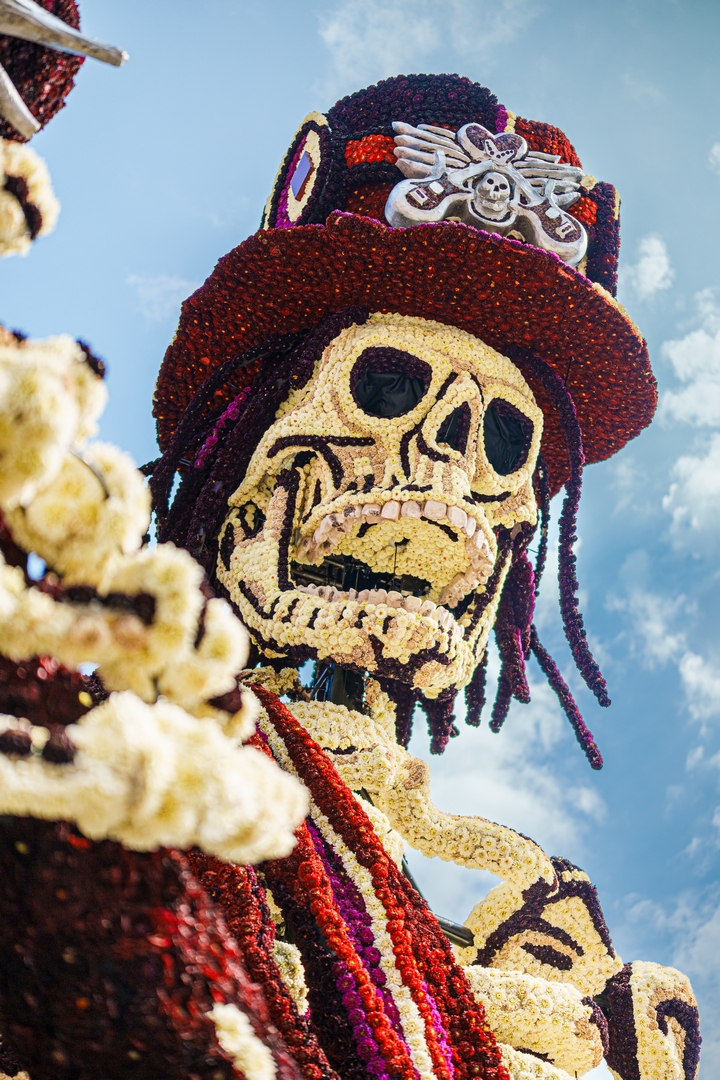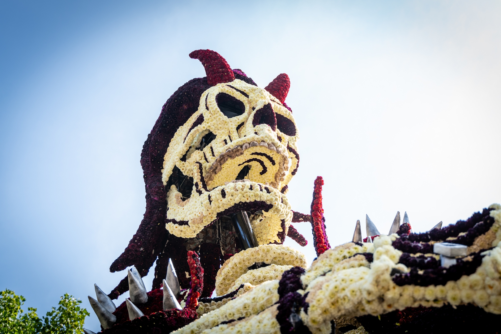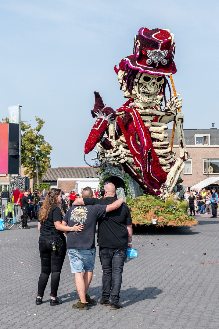De wagen heeft een frisse en energieke uitstraling en er zit humor in. Het thema is horror. Als je voor horror kiest, doe het dan vet en dat is hier gelukt. De reusachtige geraamtes met hun heavy metal studs, lange haren, hoedjes, instrumenten en zelfs twee duivelse hoorntjes brengen meteen het rock gevoel over. Eigenlijk meer hardrock of zelfs heavy metal of deathmetal. Ook door de aanwezigheid van de grafstenen. De vraag komt op naar wiens geraamtes we kijken. Als dit een verwijzing is naar bepaalde artiesten, dan is dat niet duidelijk uit het beeld op te maken.