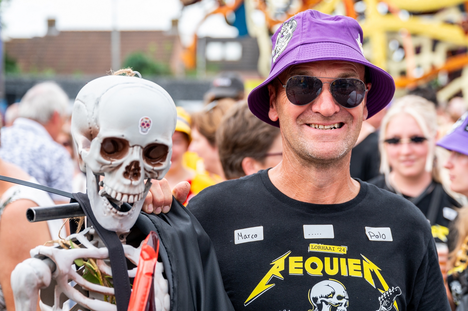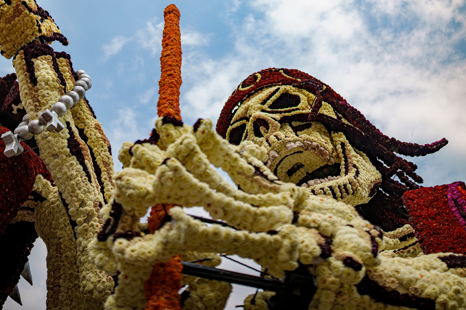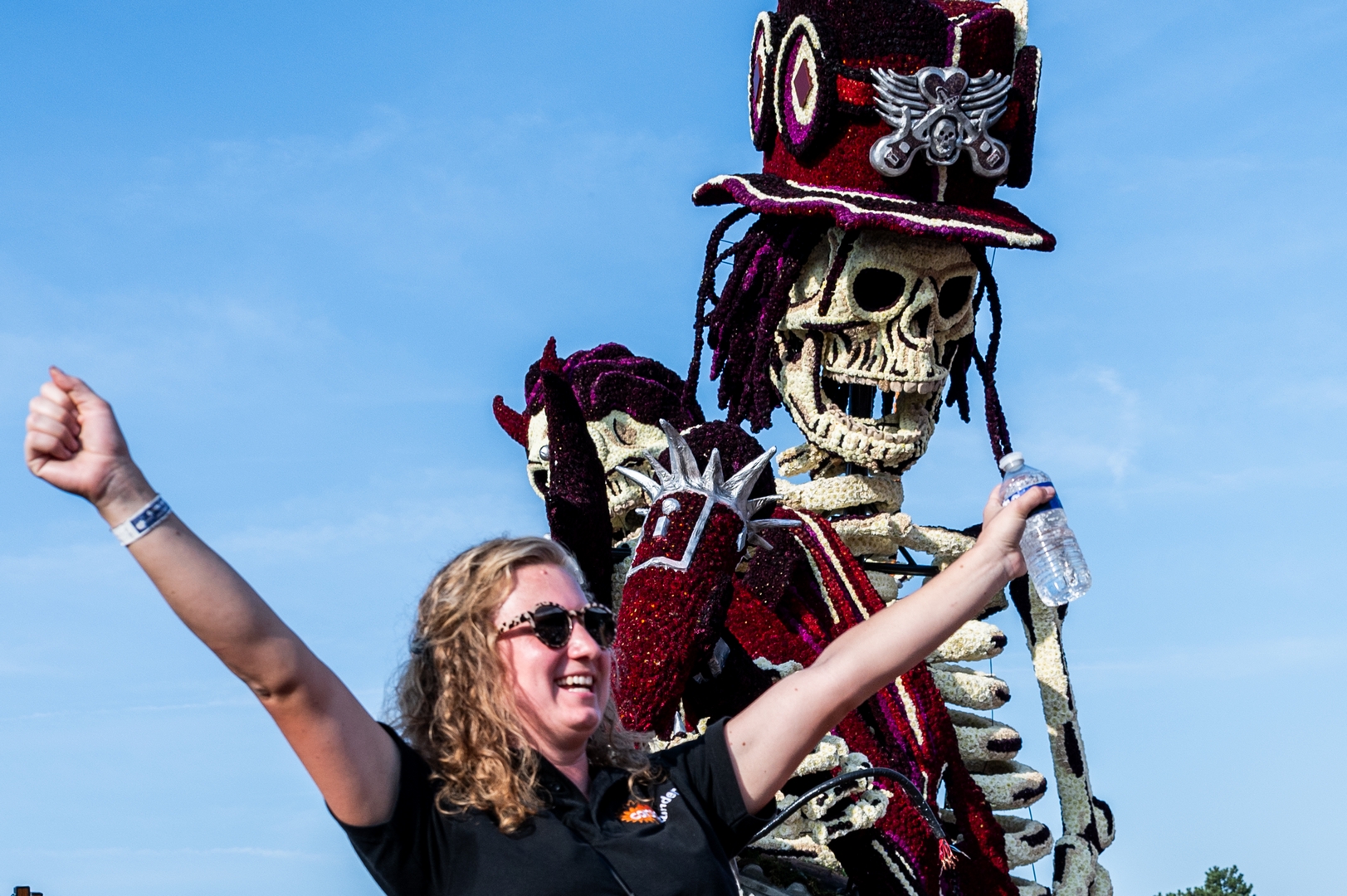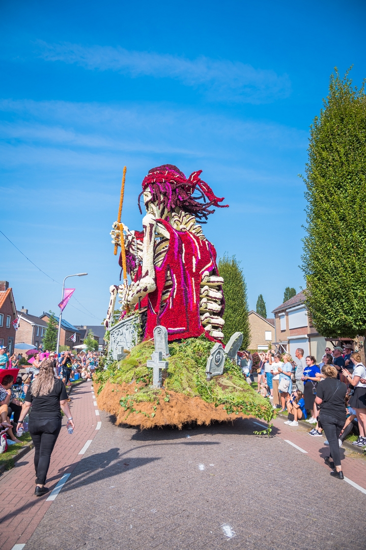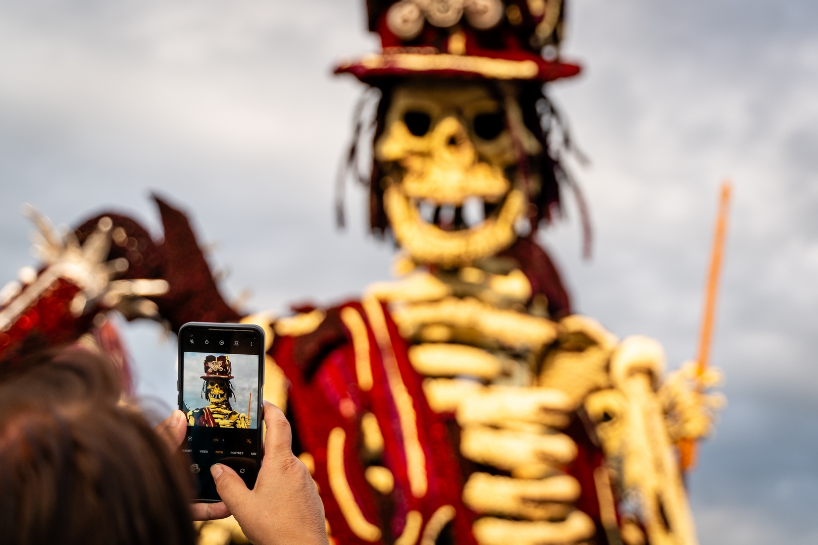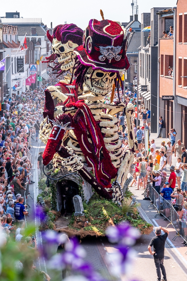 De wagen heeft een frisse en energieke uitstraling en er zit humor in. Het thema is horror. Als je voor horror kiest, doe het dan vet en dat is hier gelukt. De reusachtige geraamtes met hun heavy metal studs, lange haren, hoedjes, instrumenten en zelfs twee duivelse hoorntjes brengen meteen het rock gevoel over. Eigenlijk meer hardrock of zelfs heavy metal of deathmetal. Ook door de aanwezigheid van de grafstenen. De vraag komt op naar wiens geraamtes we kijken. Als dit een verwijzing is naar bepaalde artiesten, dan is dat niet duidelijk uit het beeld op te maken.