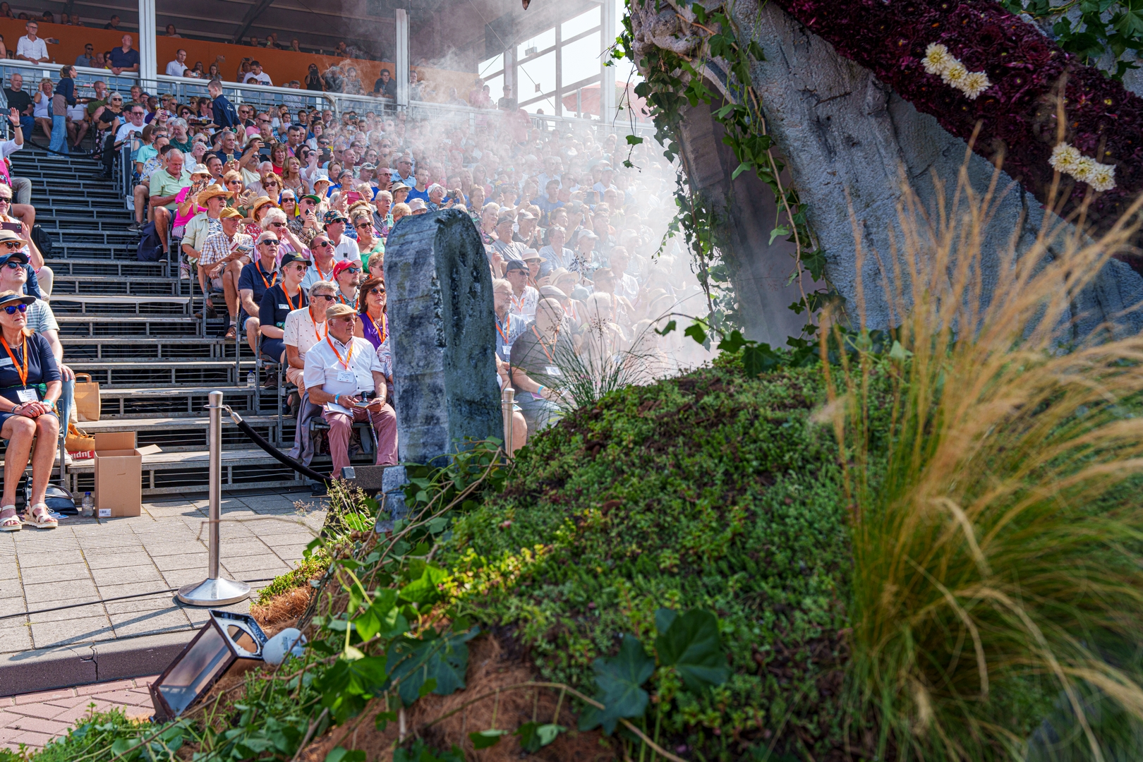 In de doeken om de geraamtes is geprobeerd met kleurgebruik vouwen weer te geven. Daarbij trekken de witte strepen iets te veel aandacht, dat mag subtieler. Een compliment voor de verschillende kijkrichtingen van de skeletten, waardoor je het publiek langs alle kanten dezelfde beleving biedt.