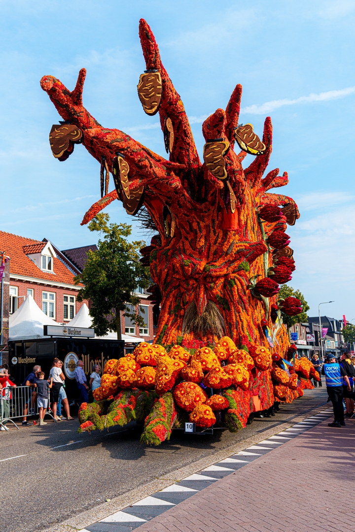 Het is lieflijk en grappig wat we allemaal zien. De boom biedt onderdak aan een heel ecosysteem van levende dieren en planten. Het roept een fijne en gezellige sfeer op. De figuranten die onderdeel zijn van de paddenstoelen doen het erg goed, ze spelen lekker ‘paddenstoelig’ toneel. Vlinders slaan hun vleugels uit, roze bloemen openen zich. Ook zien we grappige vliegen met mooie vleugels van cellofaan en bovenin zit een nest wezens, waarvan we pas laat ontdekken dat het vogels zijn. Het roept bij de meeste juryleden een positief Efteling-gevoel op. Een enkeling vindt het te braaf en zelfs saai. Ook wordt er getwijfeld aan de thematiek van de boom en de natuur die ouderwets en kinderlijk overkomt. Een opmerking wordt gemaakt dat het concept gebaat zou zijn bij een update naar het heden, zodat het beter aansluit bij de huidige trends en thema’s. Ook wordt context gemist, waardoor het moeilijk is om een boodschap of het verhaal achter de wagen volledig te begrijpen.