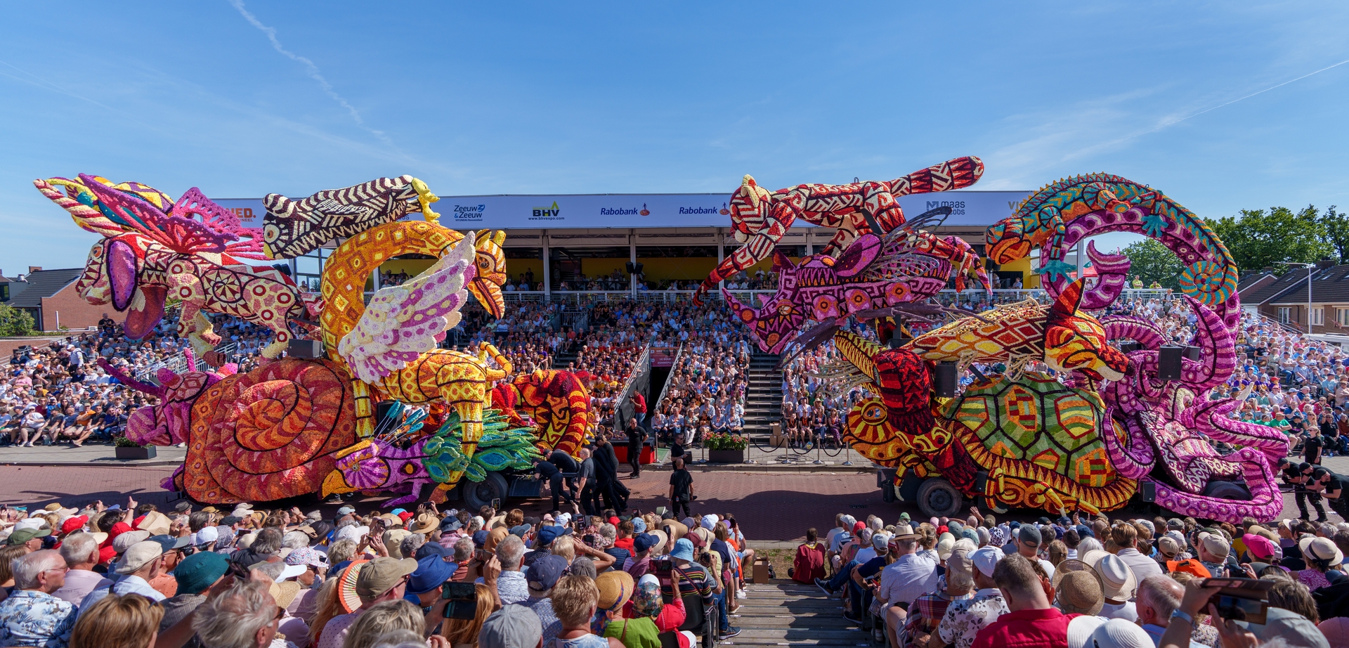 gevonden waarmee het geheel wordt omgebogen in een explosie van kleur en fantasie.