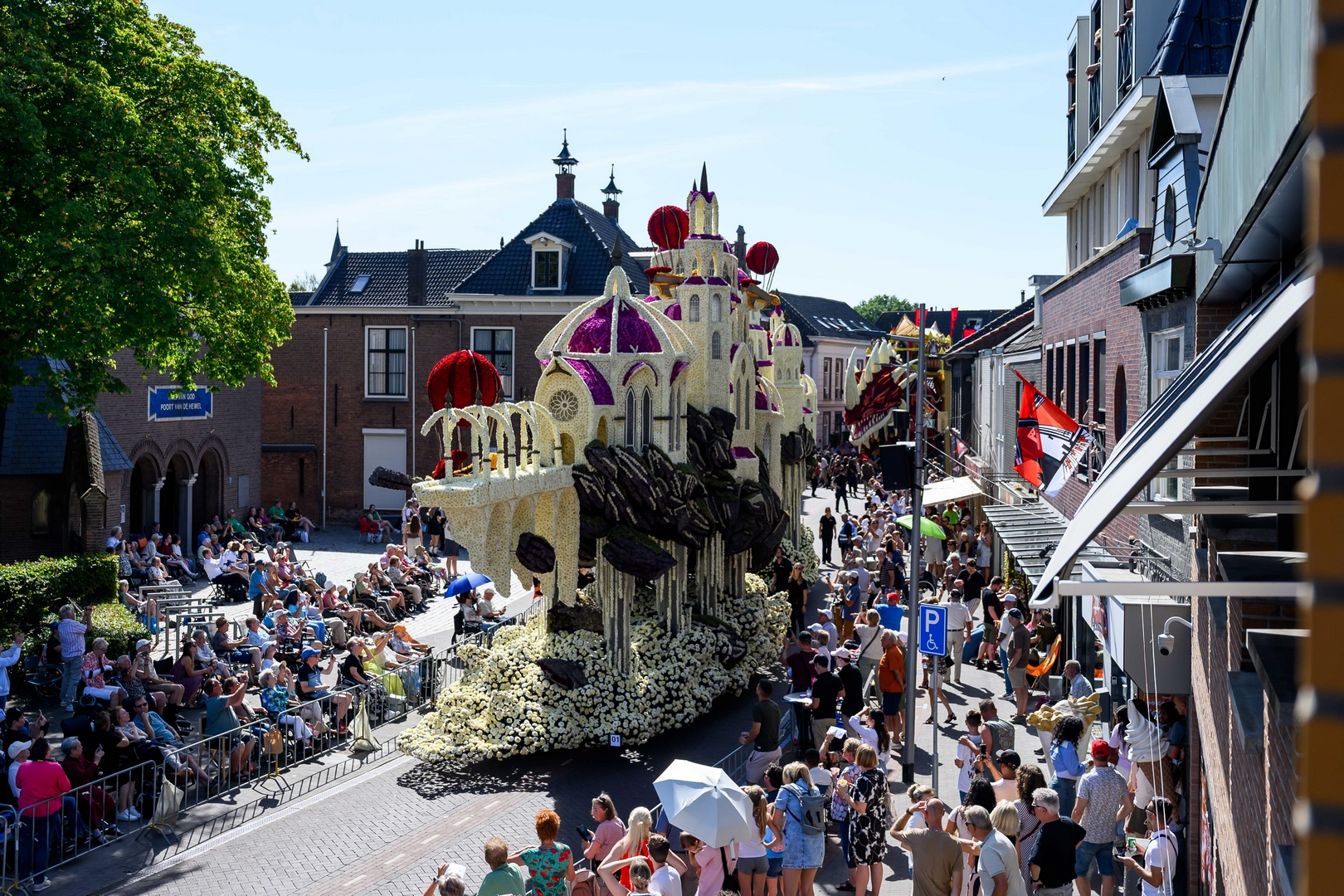 het geheel. De beeldende vorm met gebouwen in de gotische stijl is consequent neergezet.