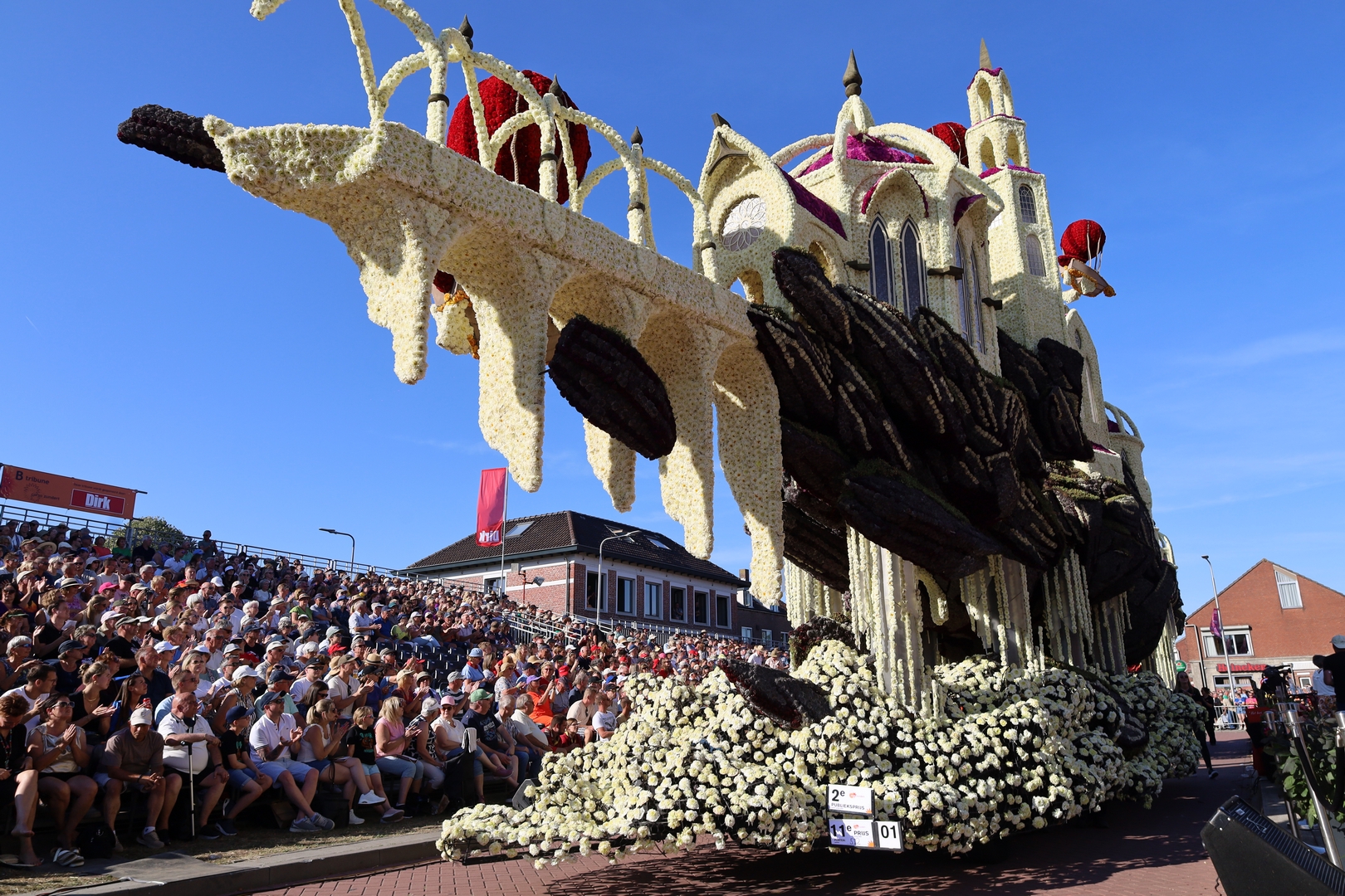 fraai over het plaveisel. Alle lof daarvoor. Een jurylid merkt op dat door de gelijke kleurkeuze van de onderkant en de bovenkant van de voorstelling, die gebouwen nooit echt