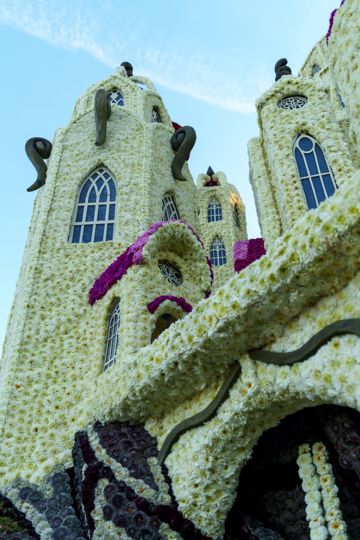 De hoeveelheid aan sierlijke architectonische vormen houden het concept overeind. Hoewel