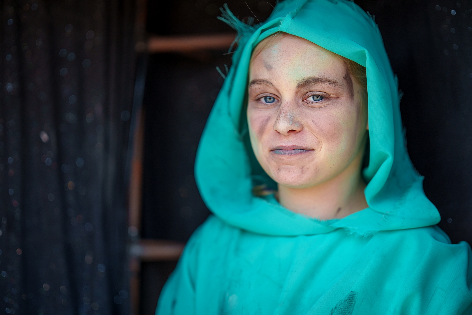 vooraanzicht in beeld is. Hebben de tanden al een onnatuurlijke uitstraling, de groene ogen doen er op dat vlak een