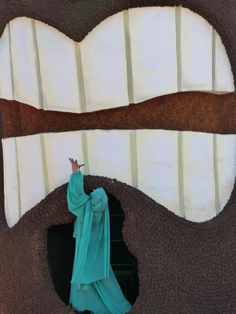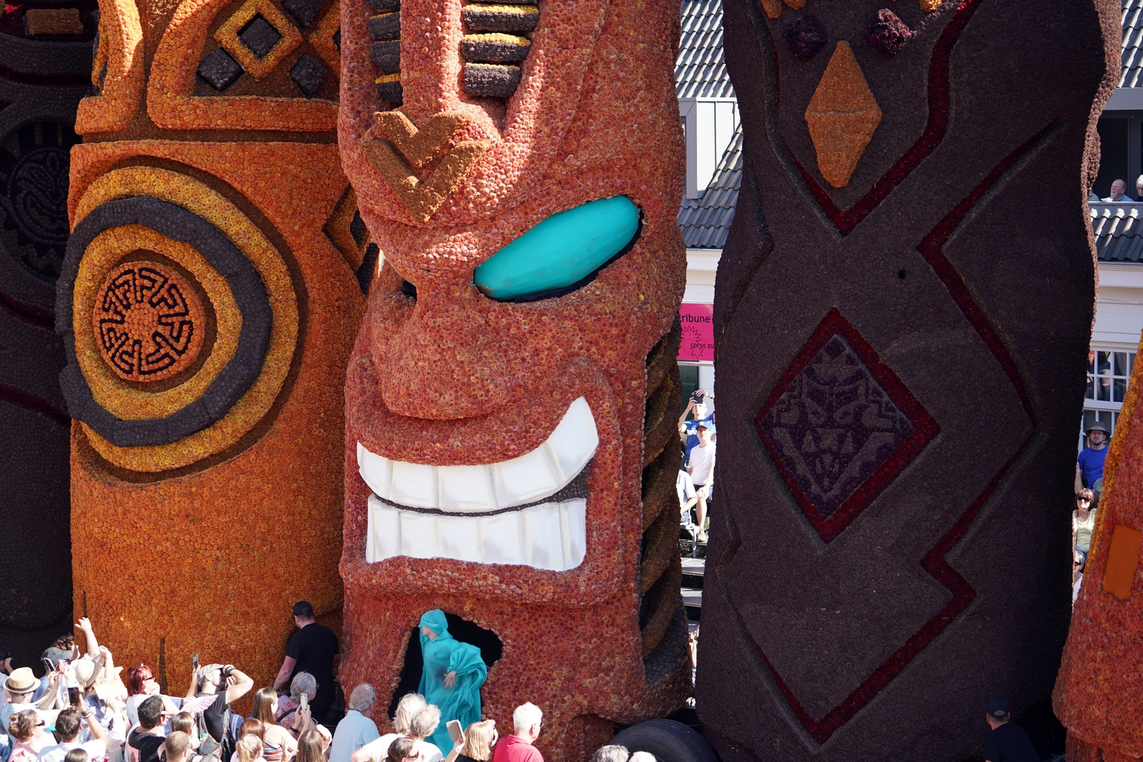 tanden zijn spierwit geverfd en dat komt onnatuurlijk over. Bij traditionele Tiki-beelden