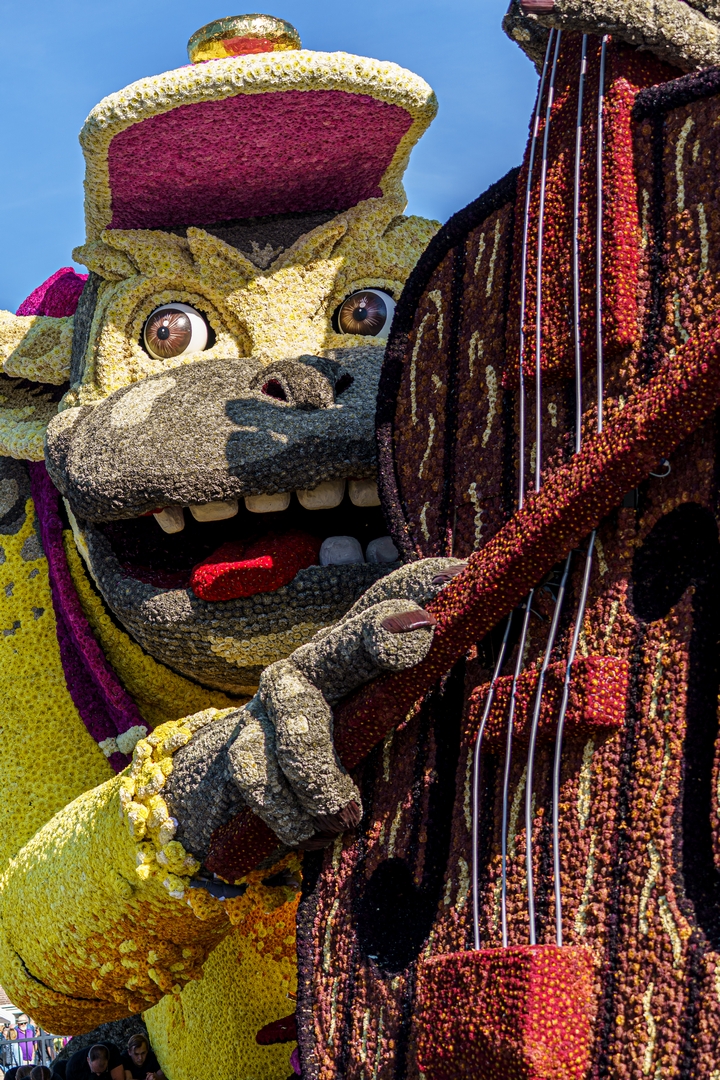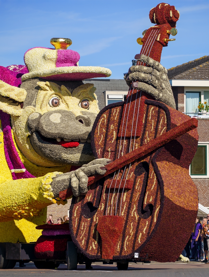 aap, de tong uit de mond, de vingers die de snaren bespelen en de voet die dat met de
